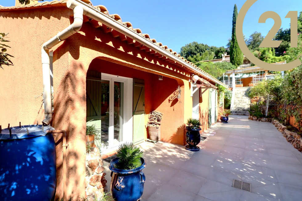 VENTE - FREJUS - TOUR DE MARE - Dans le quartier très prisé de la Tour de Mare, découvrez cette jolie villa individuelle de 92m² édifiée sur une parcelle de 780m². En fond d'impasse, au calme et sans vis-à-vis elle se compose de plain pied : d'une entrée, d'un beau séjour, d'une cuisine séparée aménagée donnant accès à une grande terrasse, de trois chambres, d'une salle d'eau, d'un WC séparé avec lave main, d'un coin buanderie avec dressing et d'un atelier. La maison dispose d'un bel espace extérieur avec terrasse, jacuzzi, jardin paysager et possibilité de stationner plusieurs véhicules. Belle qualité d'environnement.