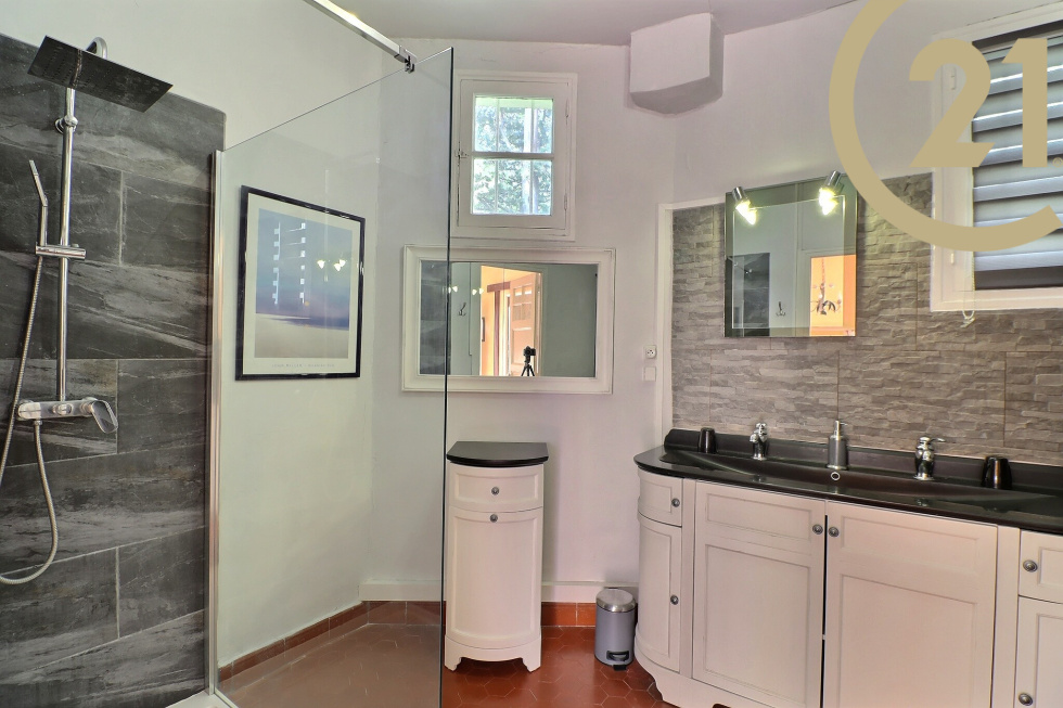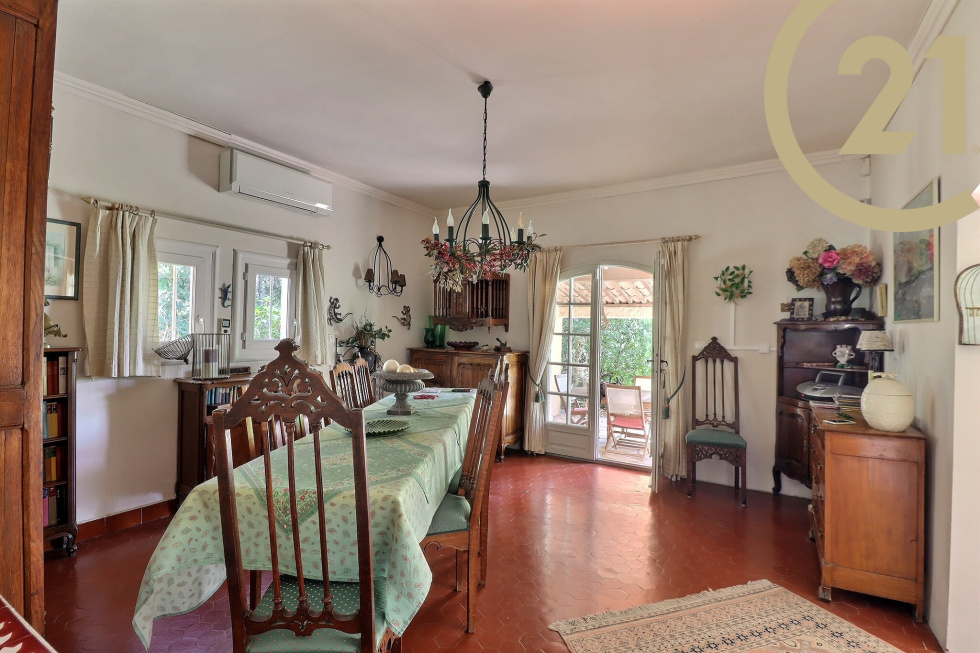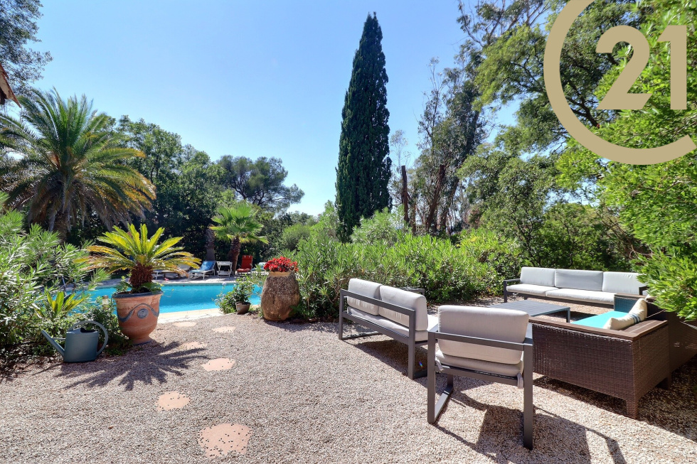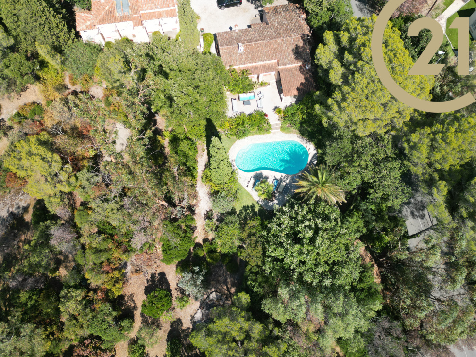 VENTE - FREJUS - Idéalement située, au calme tout en étant à proximité des commodités et des plages, venez découvrir cet écrin de verdure de 4022m² au charme inégalable. Cette propriété composée de deux mas d'habitation, vous séduira par ses volumes et ses possibilités incalculables. Le mas principal vous offre : une entrée, un séjour et une salle à manger donnant sur une vaste terrasse exposée SUD et la piscine Diffazur parfaitement entretenue, une cuisine indépendante aménagée et équipée, une belle chambre, une salle de bains et un WC. Le mas secondaire est composé de quatre chambres, dont deux suites parentales avec salle d'eau et WC ainsi qu'un grand garage. Terrain entièrement arboré avec piscine (source d'eau sur le terrain permettant de remplir la piscine facilement), boulodrome et possibilités d'agrandissement avec un droit à construire de 10%. A visiter rapidement