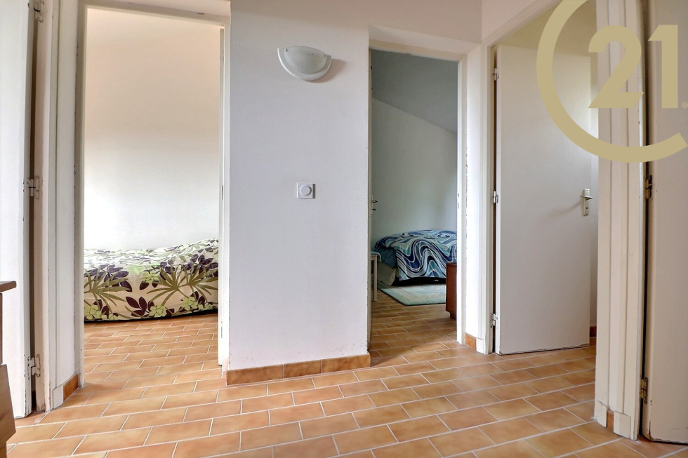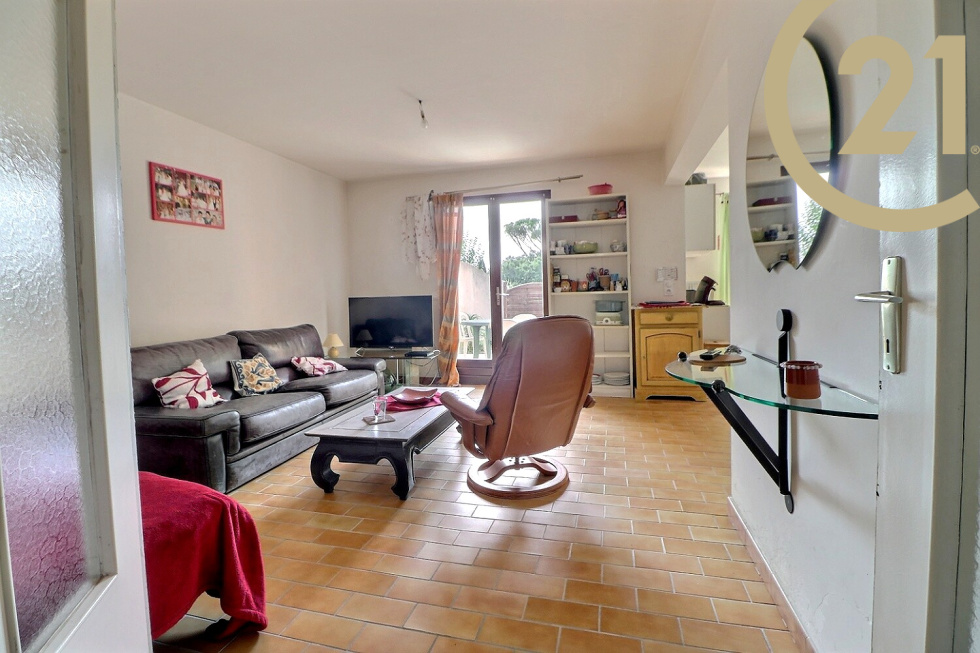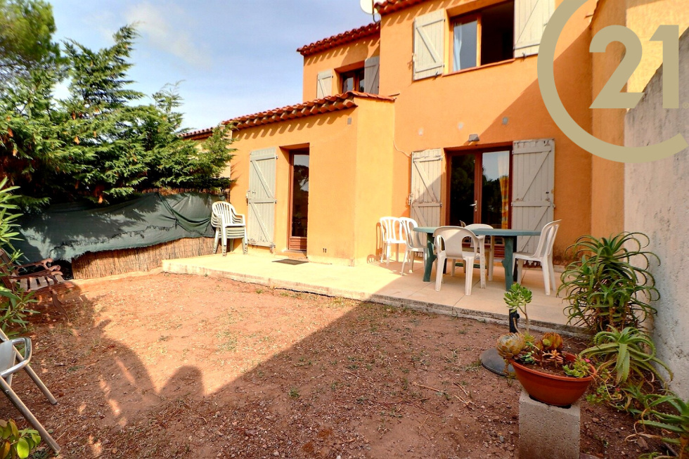 VENTE EN EXCLUSIVITE - FREJUS - TOUR DE MARE - A découvrir dans le quartier prisé de la Tour de Mare, située au calme et sans vis à vis, maison mitoyenne des deux côtés, d'une superficie habitable de 81m² avec garage attenant de 14m², édifiée sur une parcelle d'environ 310m². Elle comprend de plain-pied une entrée avec accès au garage, un wc avec lavabo, un placard d'entrée, une pièce de vie comprenant un espace salon et un espace cuisine et salle à manger donnant sur une terrasse et le jardin. A l'étage un palier dessert trois chambres avec placard (9.43, 10 et 13.15m²) dont deux bénéficient d'un aperçu mer, une salle de bain, un wc séparé. Travaux à prévoir. Sationnements : un garage et deux places extérieurs sur la parcelle. (Nombreuses places invités dans le lotissement) Copropriété horizontale de 2 lots sans charges. Frais d'ASL: 215€/an