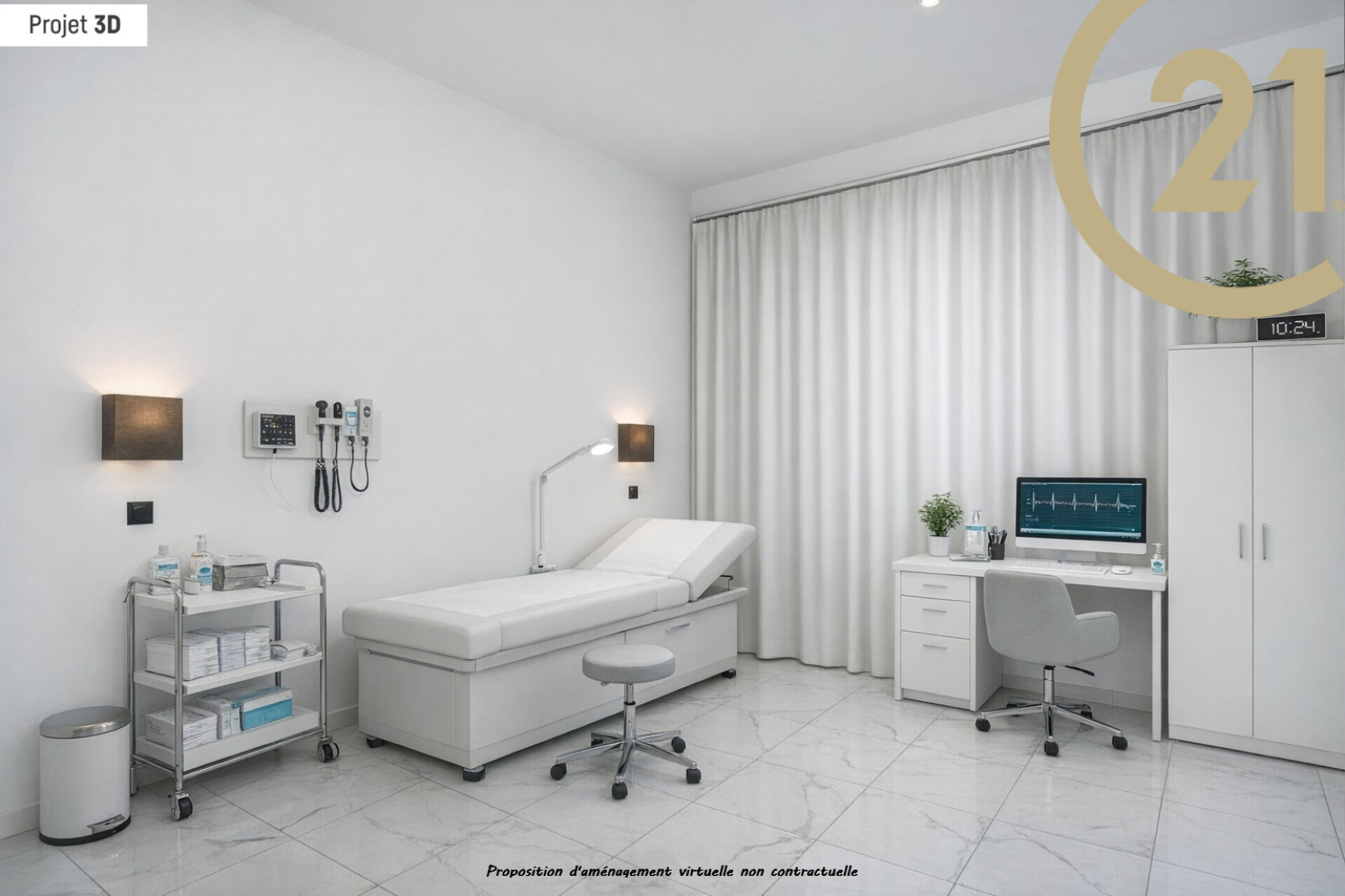 Il se compose : d’une salle d’accueil permettant de recevoir la clientèle dans de bonnes condition et de deux bureaux (ou cabinets), chacun disposant de sa propre pièce d’eau avec WC, garantissant confort et indépendance.