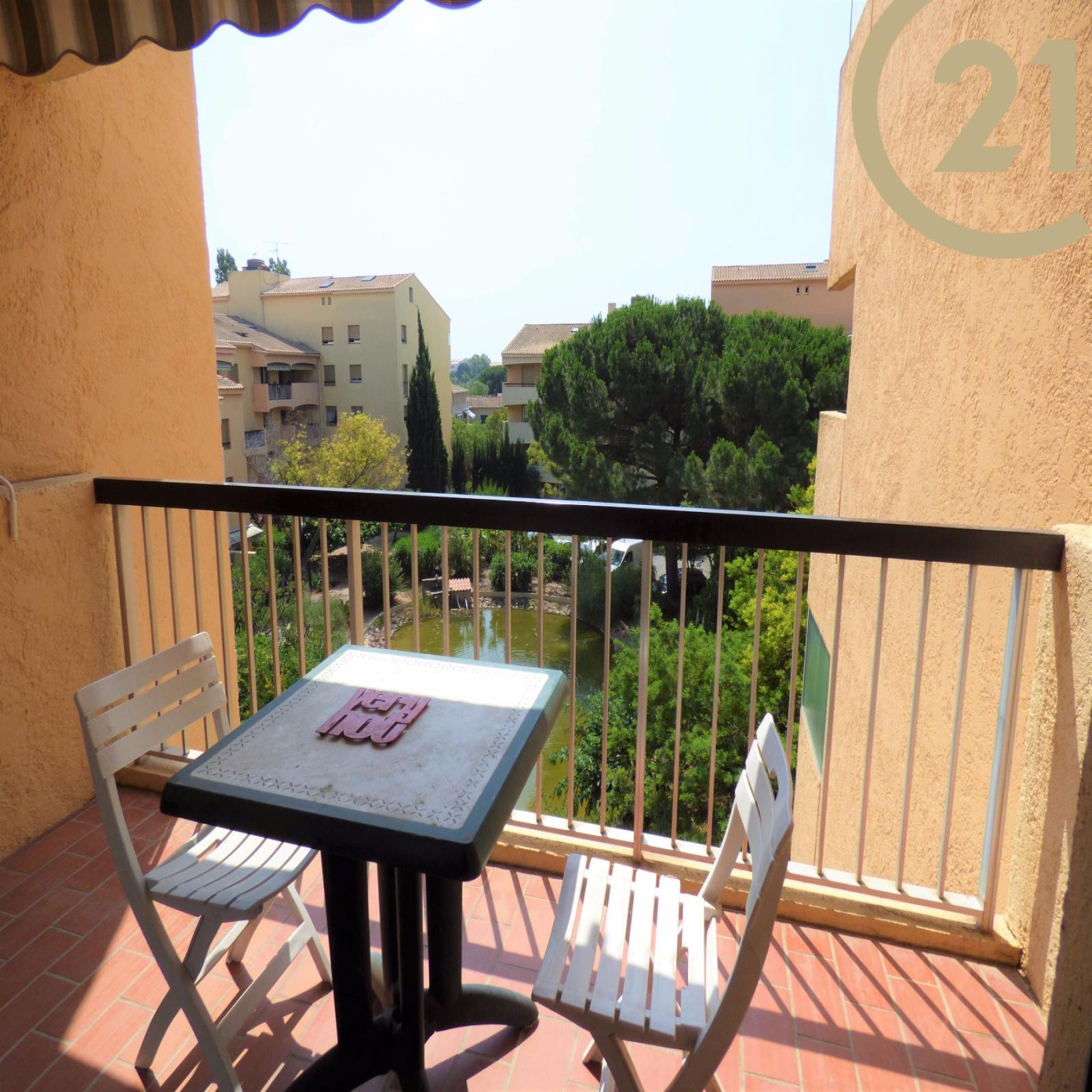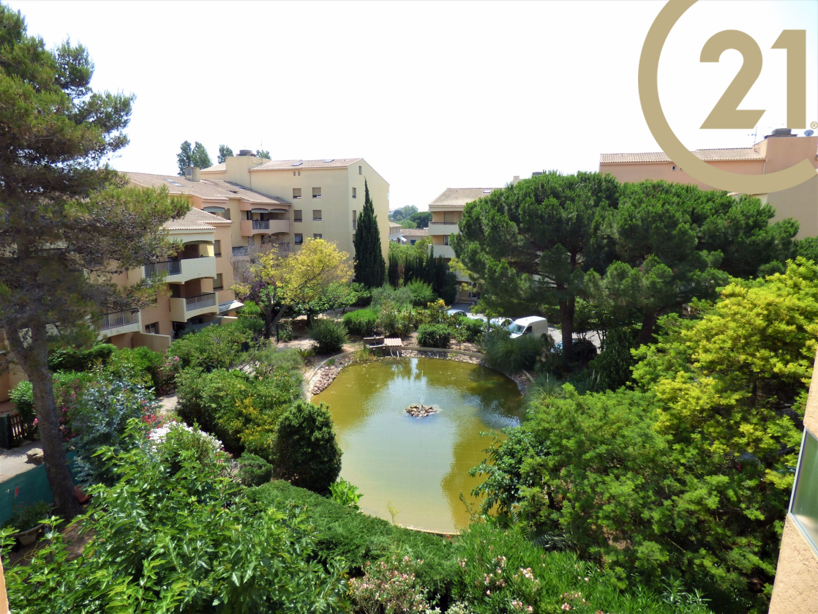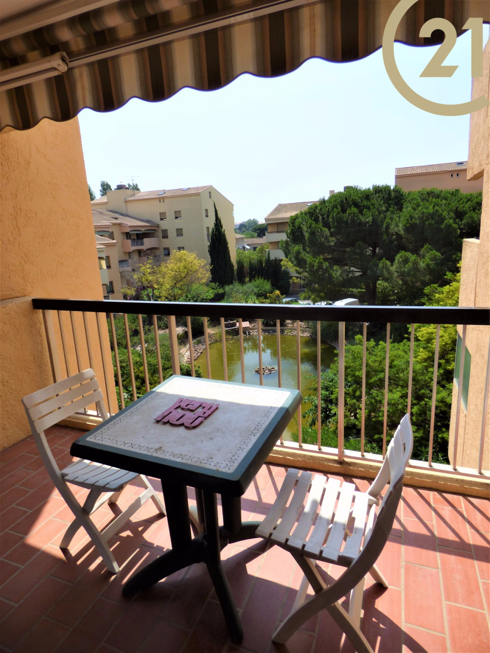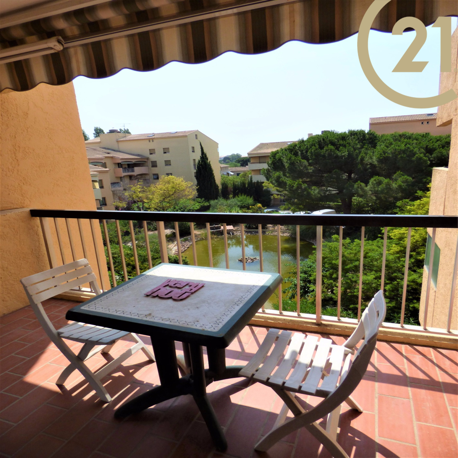PORT-FREJUS/BASE NATURE - EXCLUSIVITE - Emplacement idéal pour cet appartement situé dans une résidence gardiennée et sécurisée à deux pas de la base nature et du Port de Fréjus. Ce 2 pièces traversant de 37 m² en étage élevé et bien agencé offre un lumineux séjour avec cuisine américaine récente et entièrement équipée ouvert sur une terrasse exposée Sud, une chambre avec placard aménagé donnant sur une seconde terrasse avec vue dégagée sur l'Estérel et une salle d'eau avec WC. L'appartement sans aucun vis-à-vis bénéficie d'une jolie vue sur la verdure et sur un bassin d'ornement. Une place de parking privée est vendue avec l'appartement. Port-Fréjus, base nature, plages/mer et commerces accessibles à pied. Calme absolu. Copropriété de 307 lots. Charges annuelles : 1036 €.
