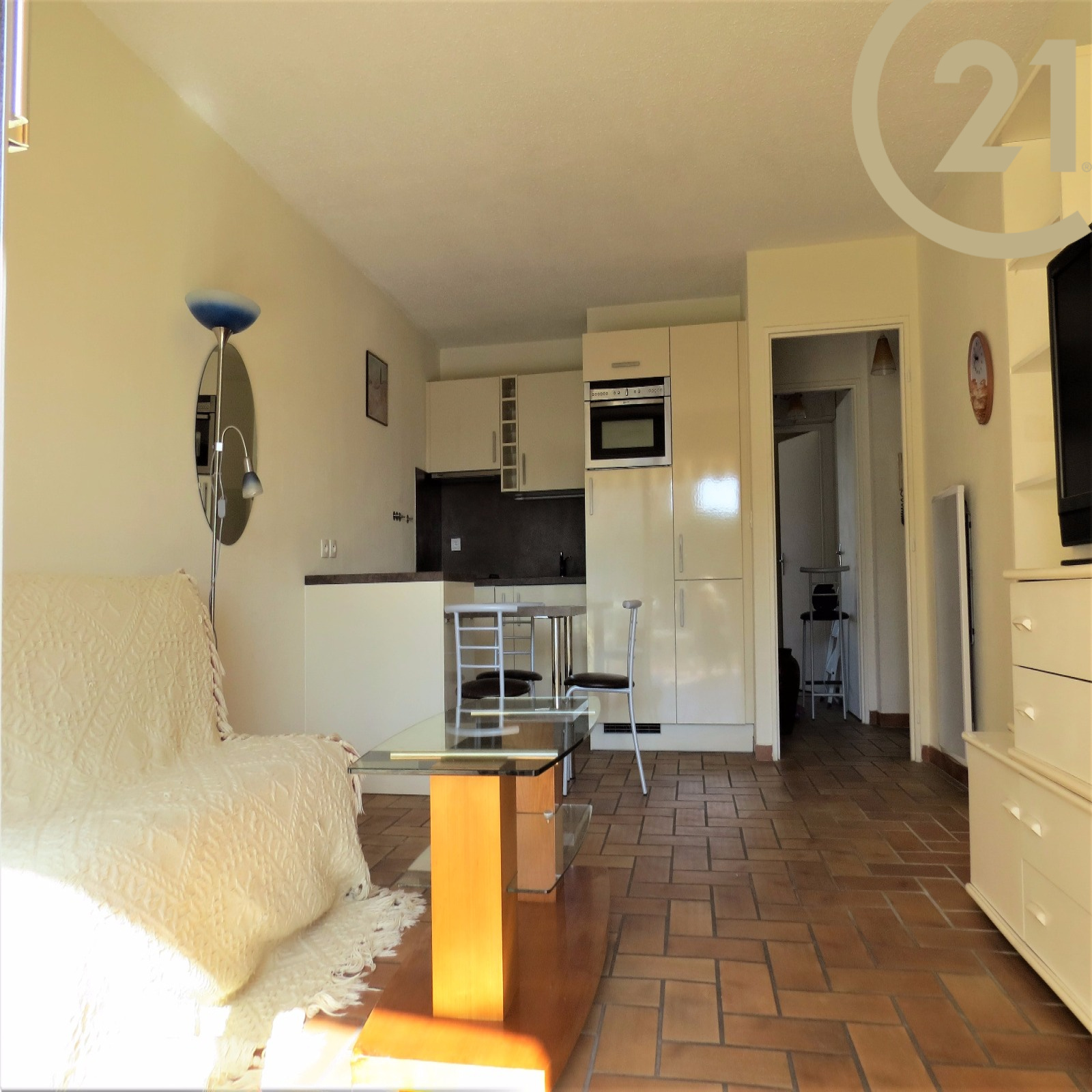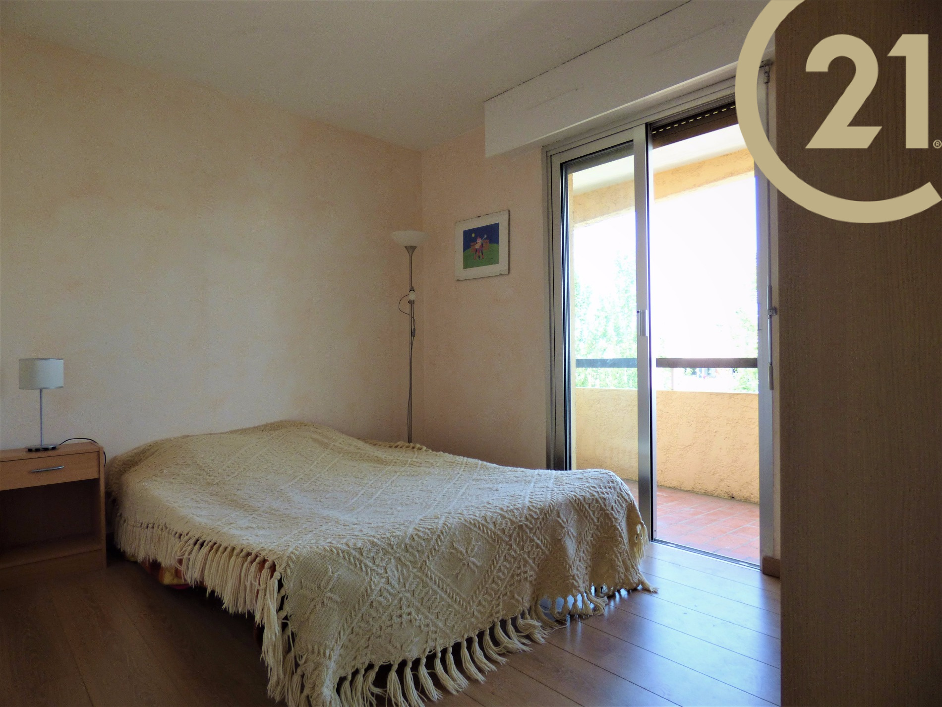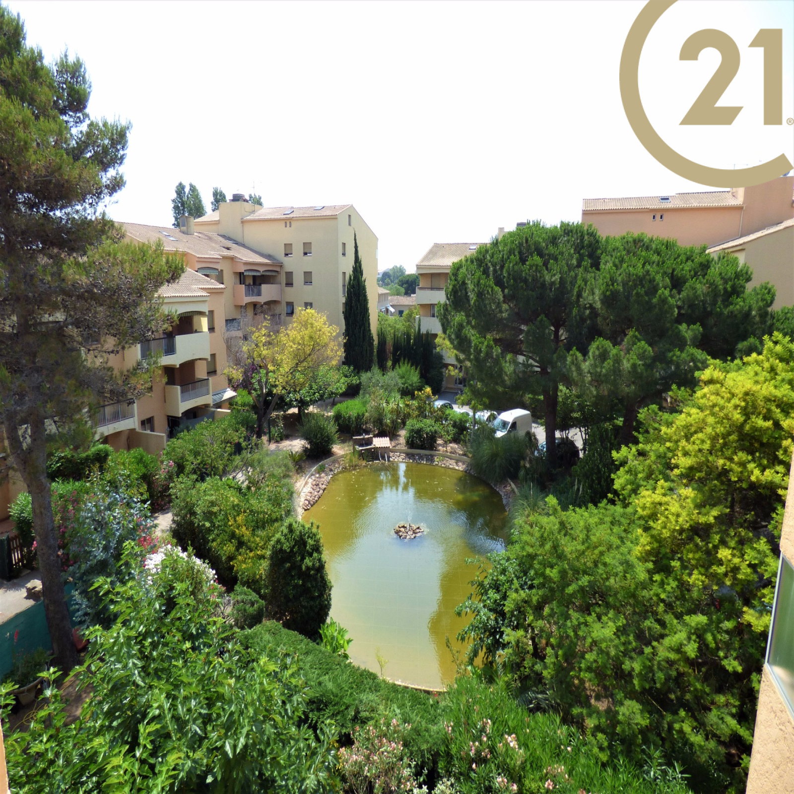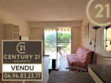 PORT-FREJUS/BASE NATURE - EXCLUSIVITE - Emplacement idéal pour cet appartement situé dans une résidence gardiennée et sécurisée à deux pas de la base nature et du Port de Fréjus. Ce 2 pièces traversant de 37 m² en étage élevé et bien agencé offre un lumineux séjour avec cuisine américaine récente et entièrement équipée ouvert sur une terrasse exposée Sud, une chambre avec placard aménagé donnant sur une seconde terrasse avec vue dégagée sur l'Estérel et une salle d'eau avec WC. L'appartement sans aucun vis-à-vis bénéficie d'une jolie vue sur la verdure et sur un bassin d'ornement. Une place de parking privée est vendue avec l'appartement. Port-Fréjus, base nature, plages/mer et commerces accessibles à pied. Calme absolu. Copropriété de 307 lots. Charges annuelles : 1036 €.