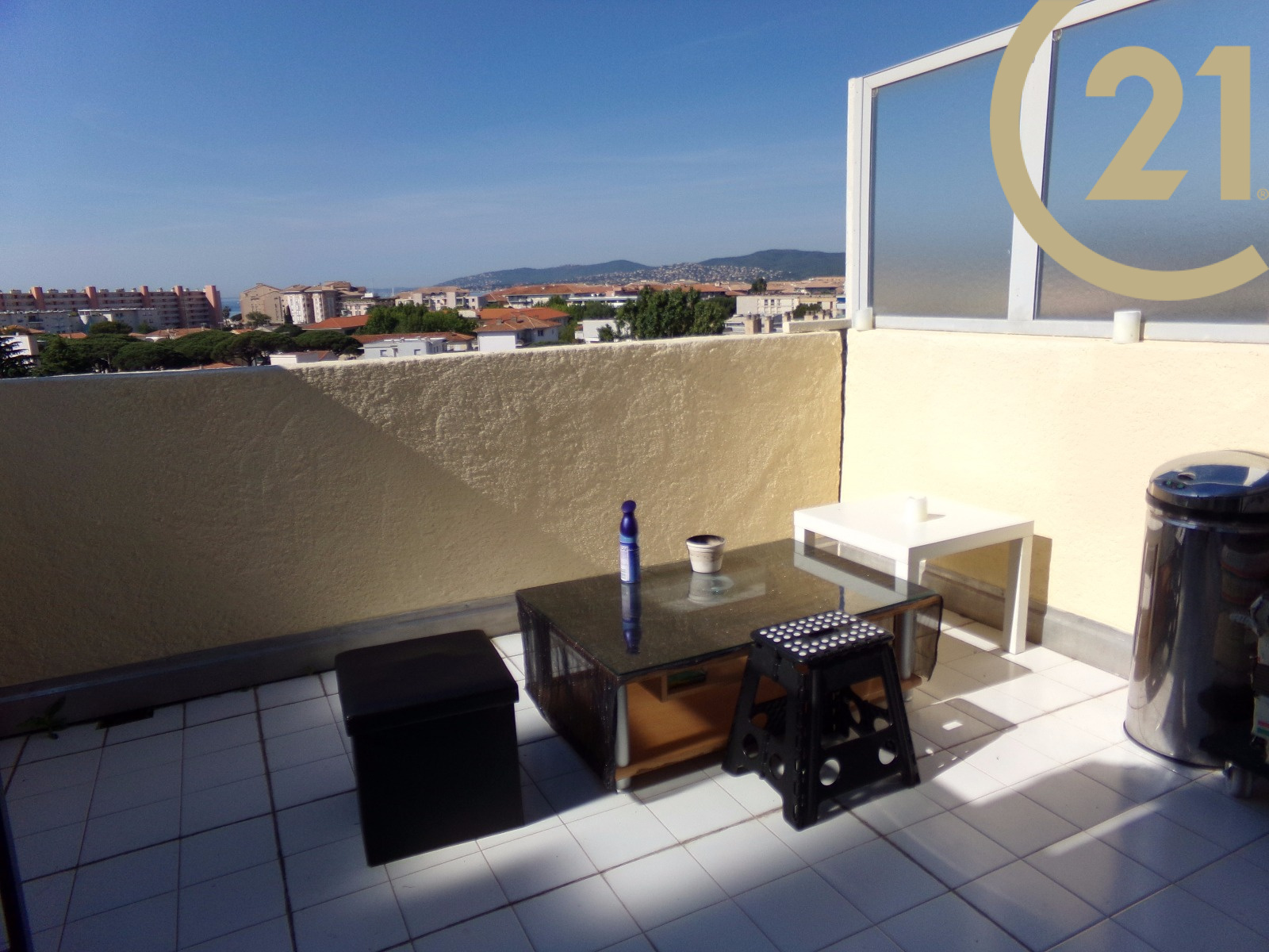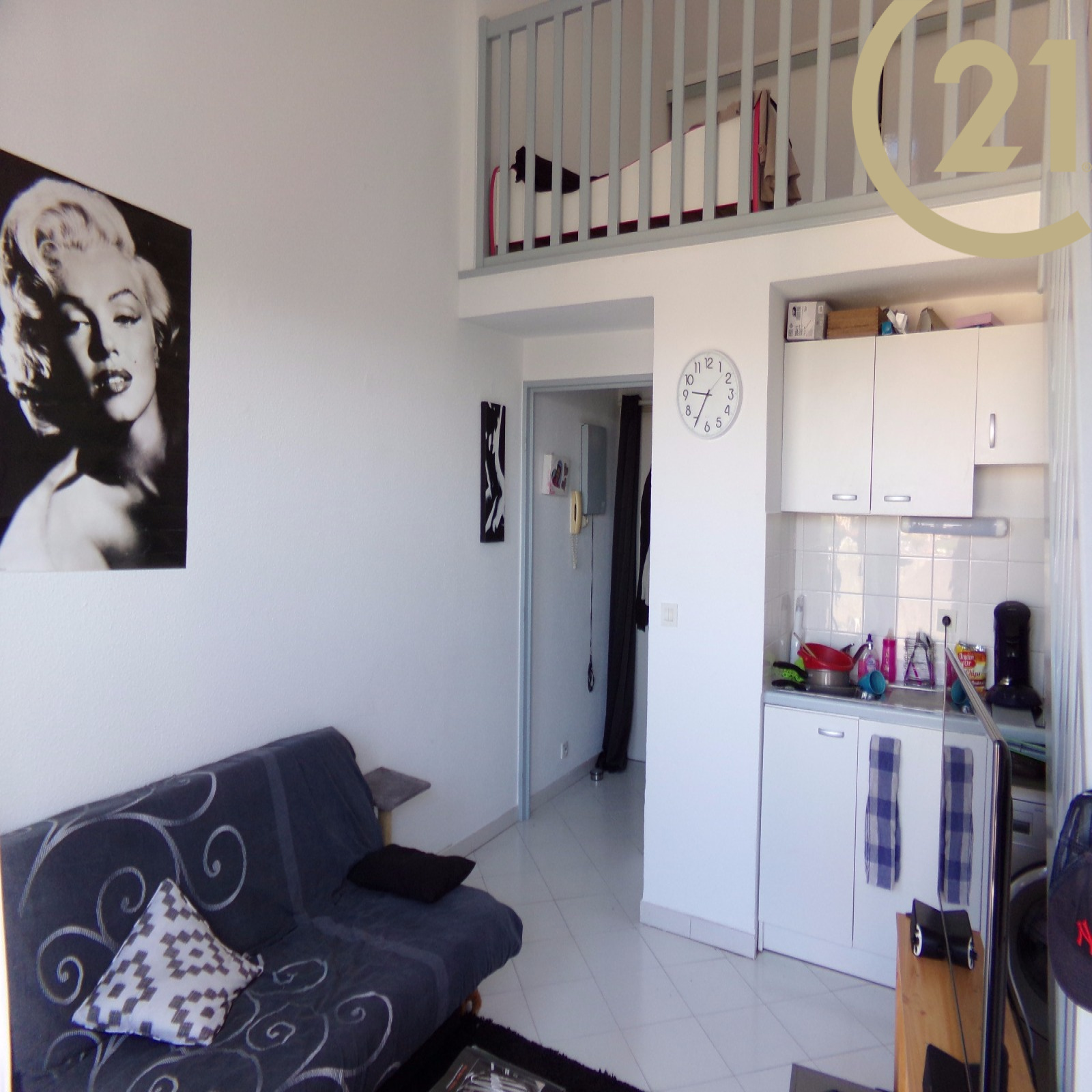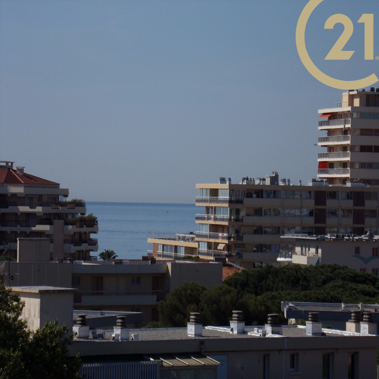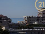 FREJUS PLAGE, à 400 mètres de la mer, au calme, beau studio lumineux de 27 m² situé au dernier étage avec un bel aperçu mer. Résidence sécurisée avec ascenseur. Cet appartement comprend un hall d'entrée avec placard, un wc, une salle de douche, un salon avec cuisine ouverte donnant accès à une terrasse exposée SUD. Cave, Parking libre dans résidence fermée. Charges de copropriété annuelle de 1200 € et nombre de lots de la copropriété de 173 lots.