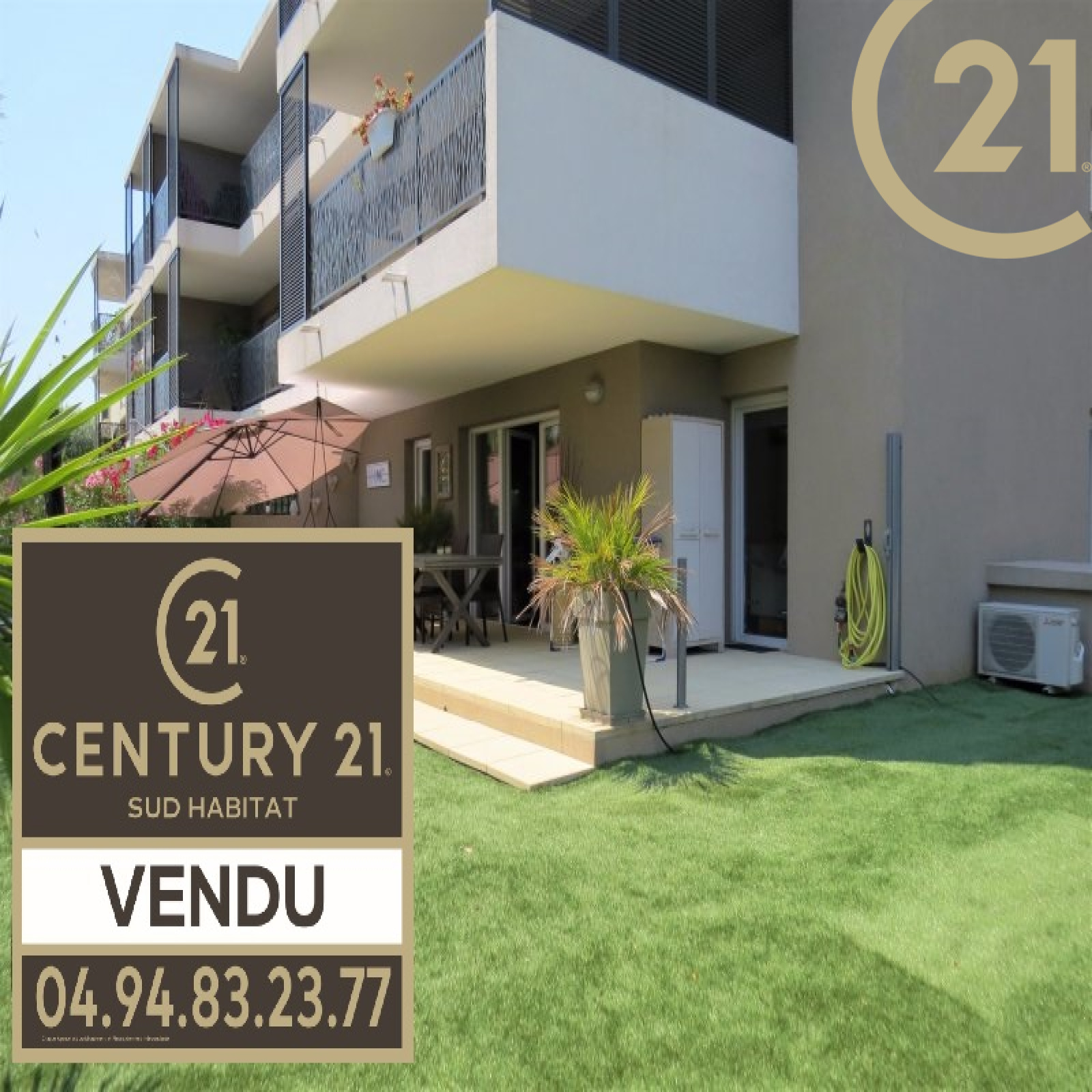 FREJUS - Dans une résidence très récente située à proximité immédiate des commerces, bel appartement 3 pièces en rez-de-jardin d'une surface de 75 m². Cet appartement contemporain offre un séjour avec cuisine ouverte entièrement meublée et équipée ouvert sur une large terrasse de 25 m² et un jardin privatif de 158 m², 2 chambres avec placards, une salle d'eau et des toilettes indépendantes avec lave-mains. Prestations de qualité : double vitrage, volets roulants électriques et centralisés, climatisation réversible, visiophone, vigik. L'appartement est vendu avec un garage en sous-sol. Possibilité d'acheter un garage supplémentaire. Charges annuelles : 1400 €