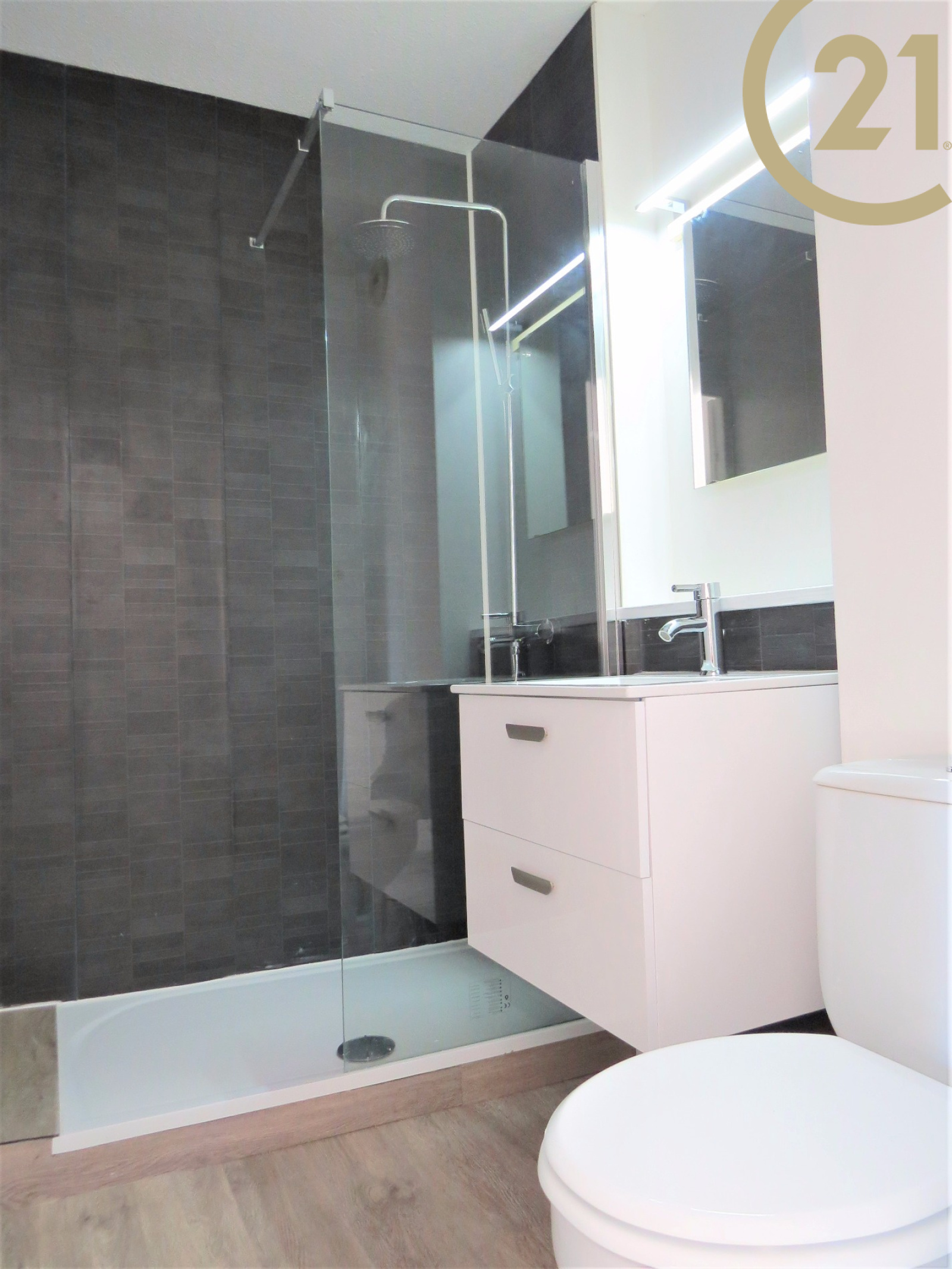 FREJUS - EXCLUSIVITE - Appartement 1/2 pièce de 36 m² entièrement rénové situé dans une jolie résidence arborée avec piscine et gardien. Cet appartement en dernier étage et bien agencé offre un hall d'entrée avec placard aménagé, un séjour lumineux offrant la possibilité de créer un coin nuit indépendant (chambre) ouvert sur une large loggia vitrée de 10 m², une cuisine indépendante entièrement équipée, et une salle d'eau contemporaine avec toilettes. Cet appartement au calme et sans vis-à-vis bénéficie d'une belle vue sur le massif de l'Estérel. Une place de parking privative située devant le bâtiment est vendue avec l'appartement. Tous commerces accessibles à pied. Copropriété de 133 lots. Charges annuelles : 1176 €.
