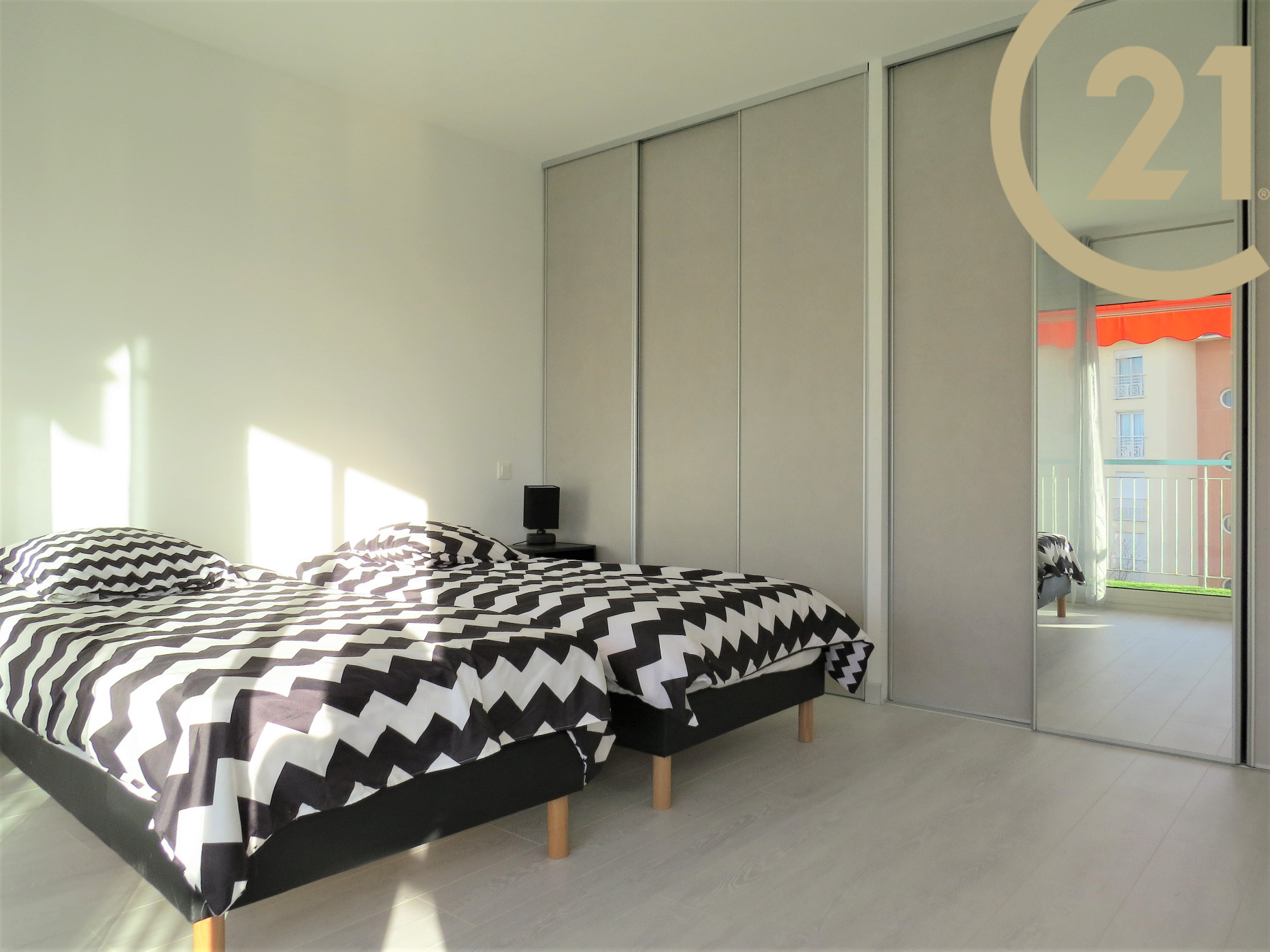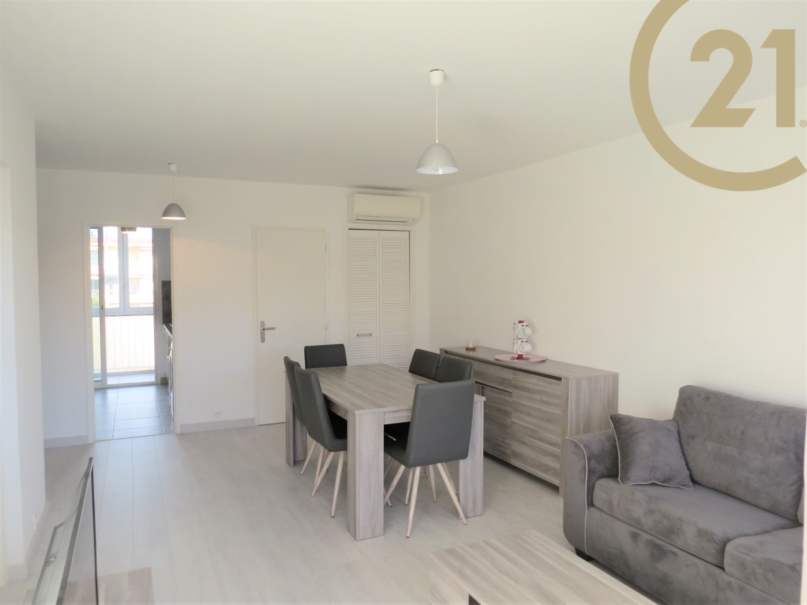 FREJUS PLAGE - Magnifique appartement 2 pièces de 47 m² entièrement rénové au goût du jour idéalement situé à deux pas des plages et du centre-ville de Saint-Raphaël. Cet appartement en étage élevé offre une entrée, un beau séjour de 23 m² ouvert sur une terrasse bénéficiant d'une exposition plein sud, une cuisine indépendante ouverte sur une loggia, une spacieuse chambre de 13 m² avec grand dressing aménagé et une belle salle d'eau avec grande douche et WC. Appartement clés en mains offrant de belles prestations. Cave et parking libre dans la résidence. Tous commerces, plages et centre-ville accessibles à pied.
