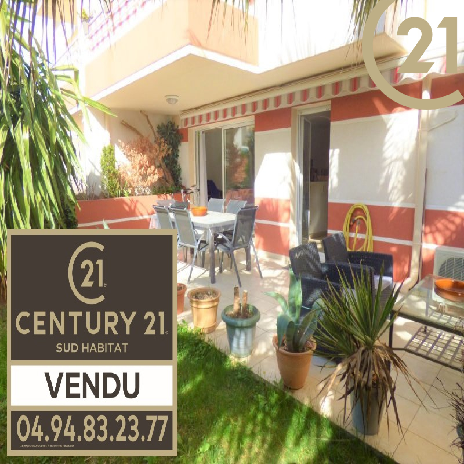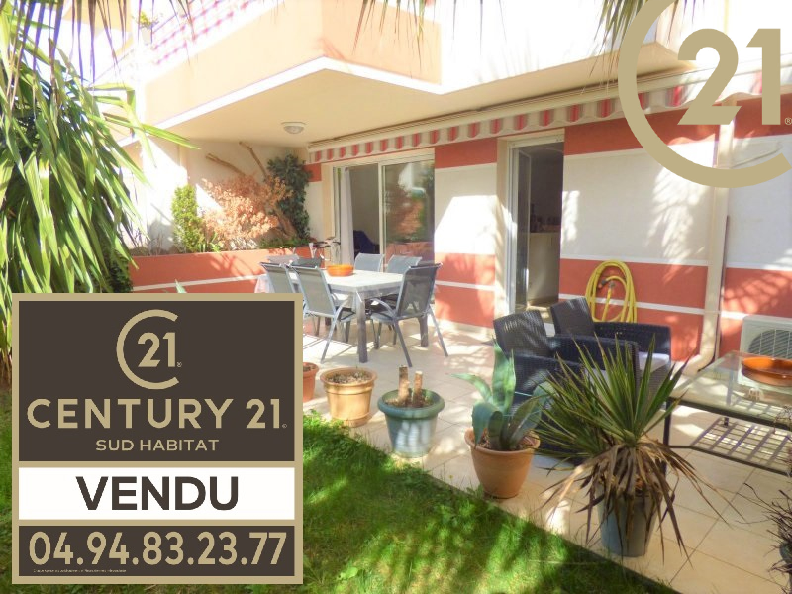 FREJUS, dans une résidence sécurisée à 15 minutes à pieds des plages, lumineux 2 pièces de 51.30 m² comprenant une entrée, une cuisine semi-ouverte et équipée, une chambre, une salle d'eau, des toilettes séparées avec lave-mains, un séjour donnant sur une terrasse de 23m² et un jardin de 30m² bénéficiant d'une exposition sud-ouest. Parking extérieur (Garage / box en sus).