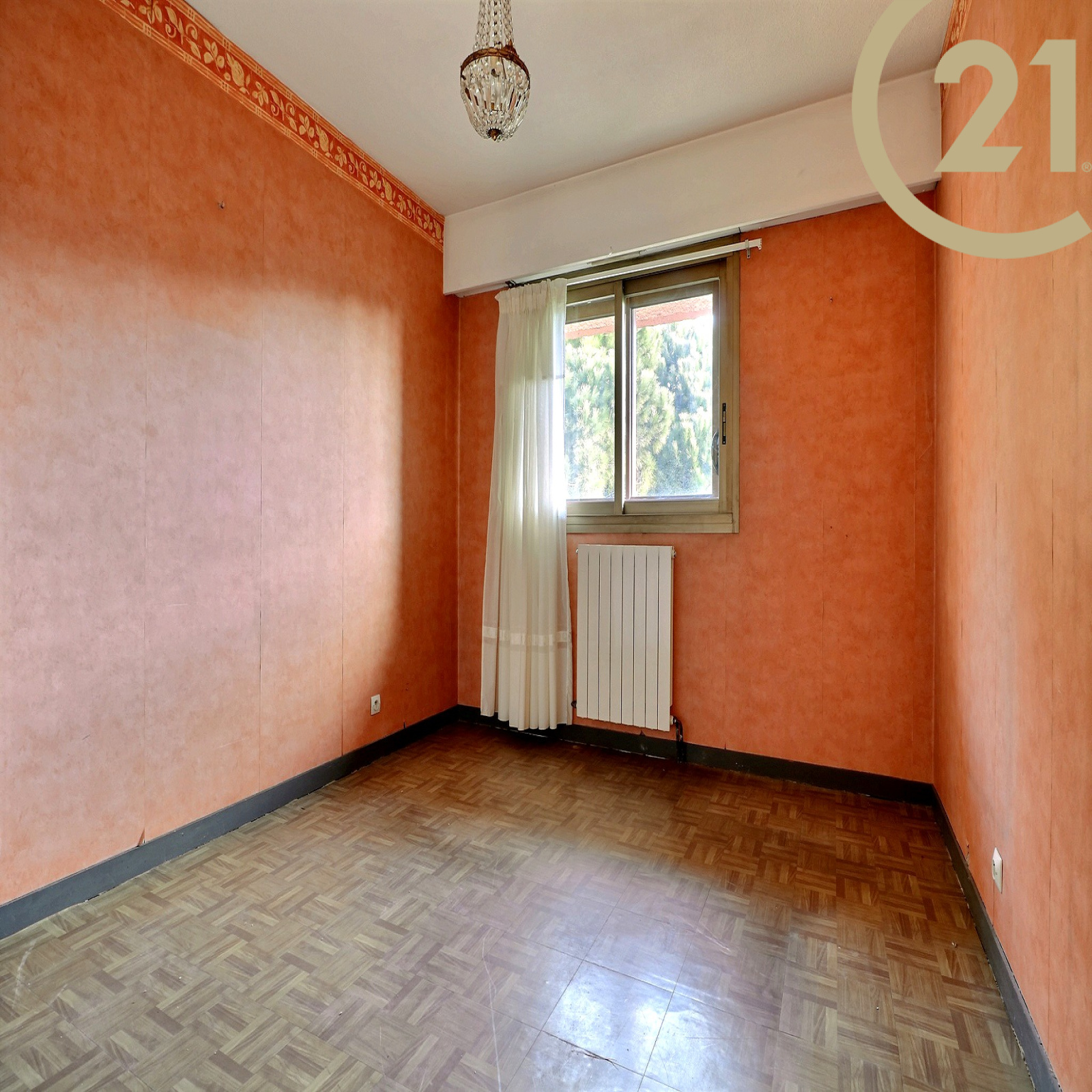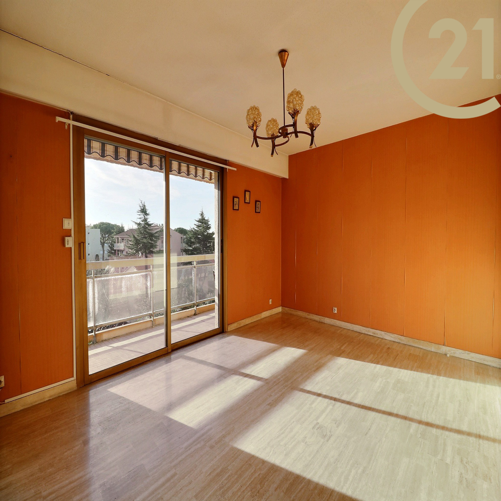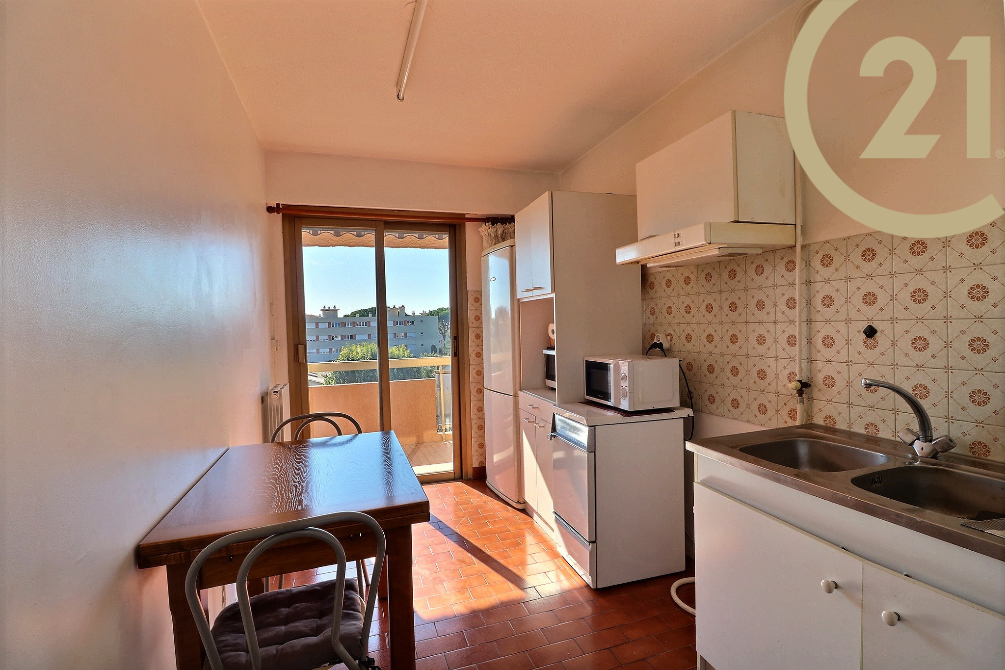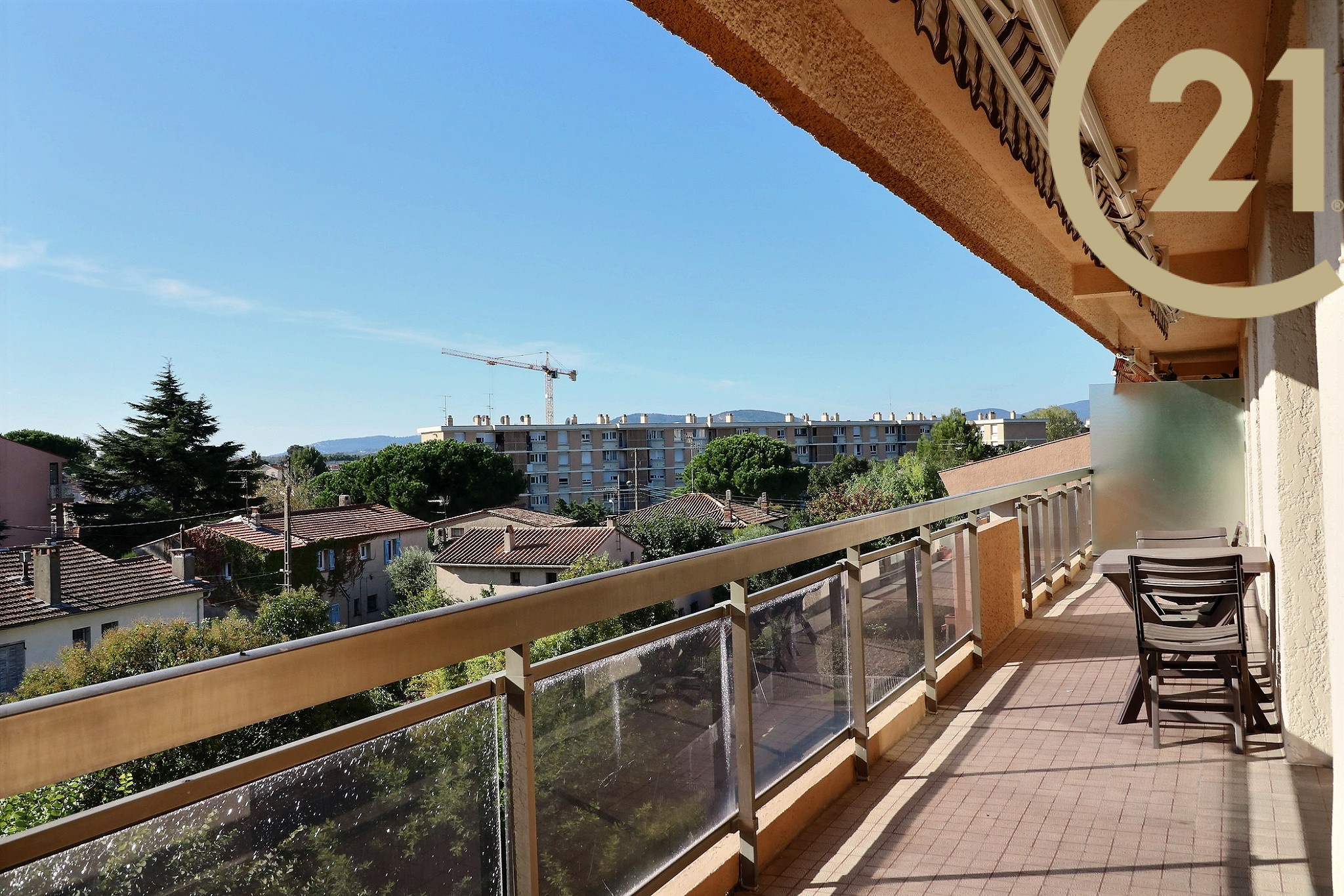 EXCLUSIVITE - FREJUS PROCHE MER ET COMMERCES - Spacieux et lumineux 3 pièces situé au dernier étage d'une résidence sécurisée avec ascenseur et piscine à proximité du centre-ville, des commerces et de la mer. Cet appartement bien exposé se compose d'une entrée, d'un cellier, d'un lumineux séjour exposé Sud/Est, d'une cuisine séparée, de deux chambres avec rangements, d'une salle de bains et de WC séparés. Les pièces principales donnent sur une vaste terrasse de plus de 20 m² orientée Sud et offrant une belle vue dégagée sur la verdure. Absence de vis-à-vis. Grande cave et possibilité de stationnement à proximité immédiate. Ravalement de facade réalisé récemment. Copropriété de 126 lots. Charges annuelles : 1809 €.
