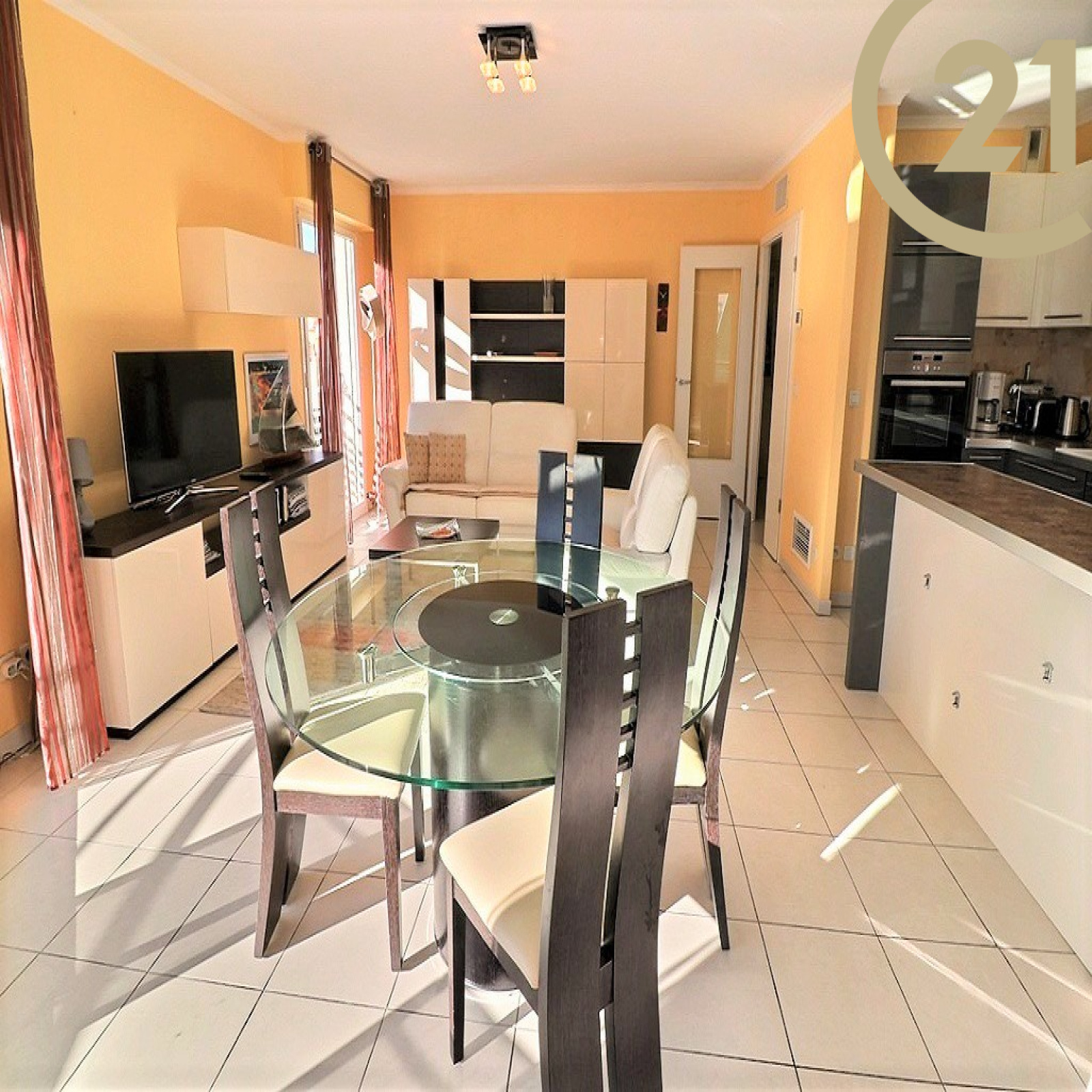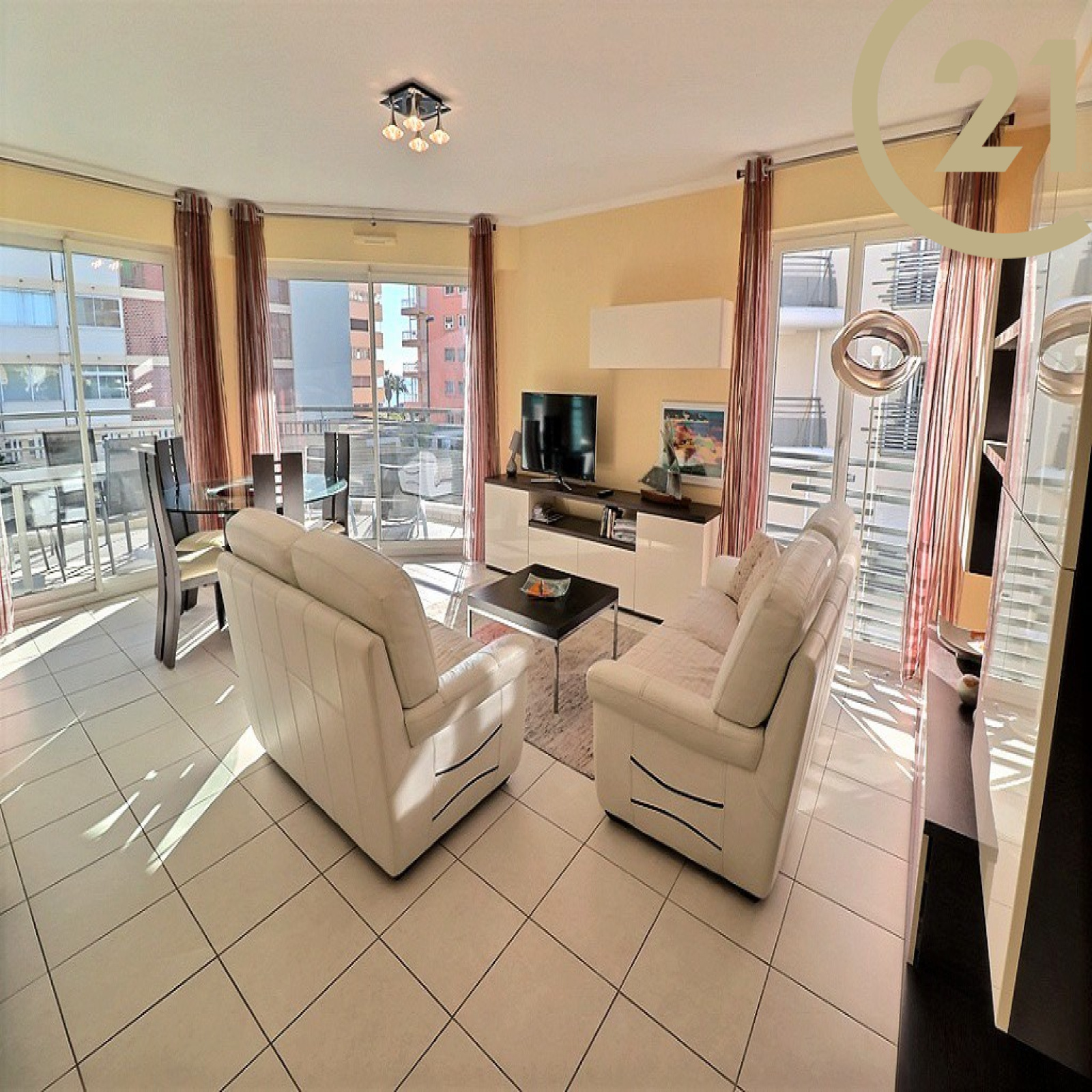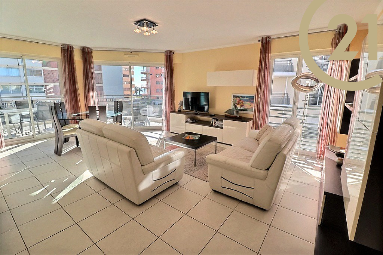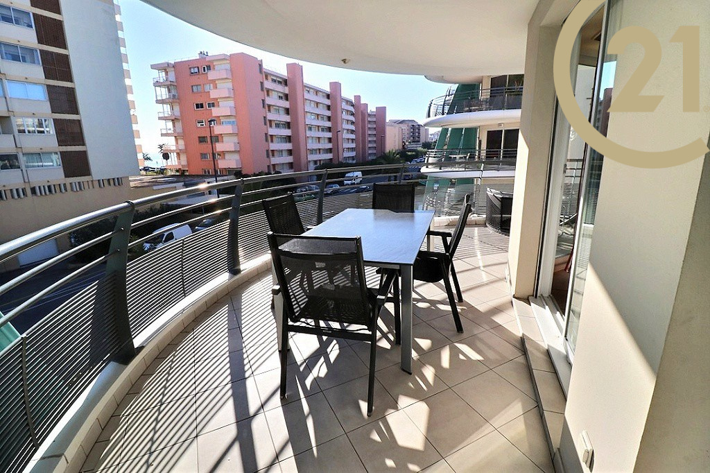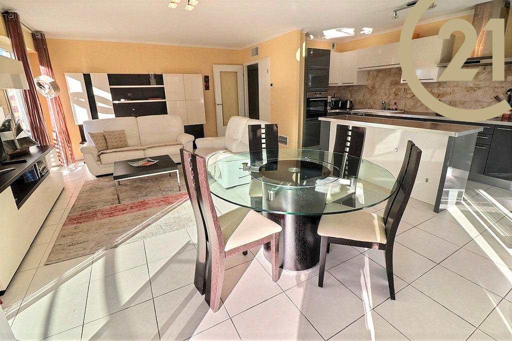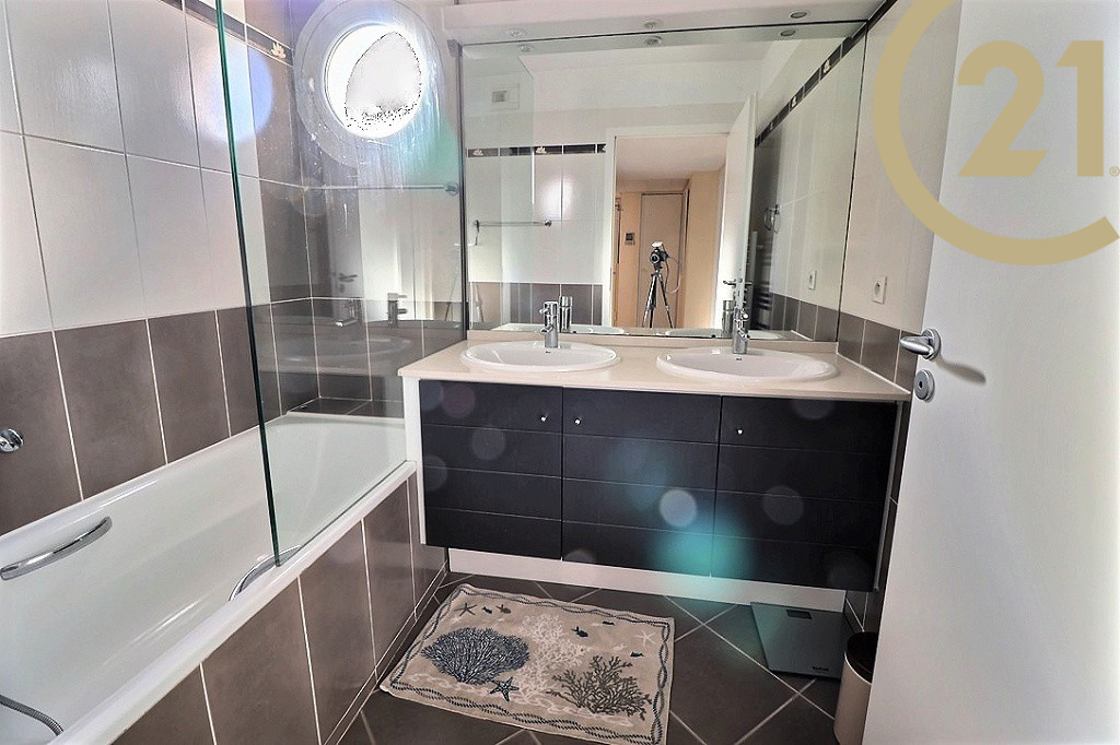 FREJUS PLAGE, A 50 m de la plage, dans une résidence de haut standing, superbe appartement de 76 m² composé d'une cuisine américaine équipée haut de gamme s'ouvrant sur un séjour spacieux et lumineux donnant sur une belle terrasse de 16 m² exposition sud et Ouest, de 2 chambres avec placards et d'une grande salle de bains. Le tout en excellent état. Trés belles prestations. Vendu avec un garage double. Coup de coeur assuré pour cet appartement où vous pourrez baigner de soleil sur la terrasse et vous laisser bercer par les flots du bassin. Petite Vue mer. Tout à pied : restaurants, supermarché, gare TGV, mer, commerces, centre-ville St Raphael...