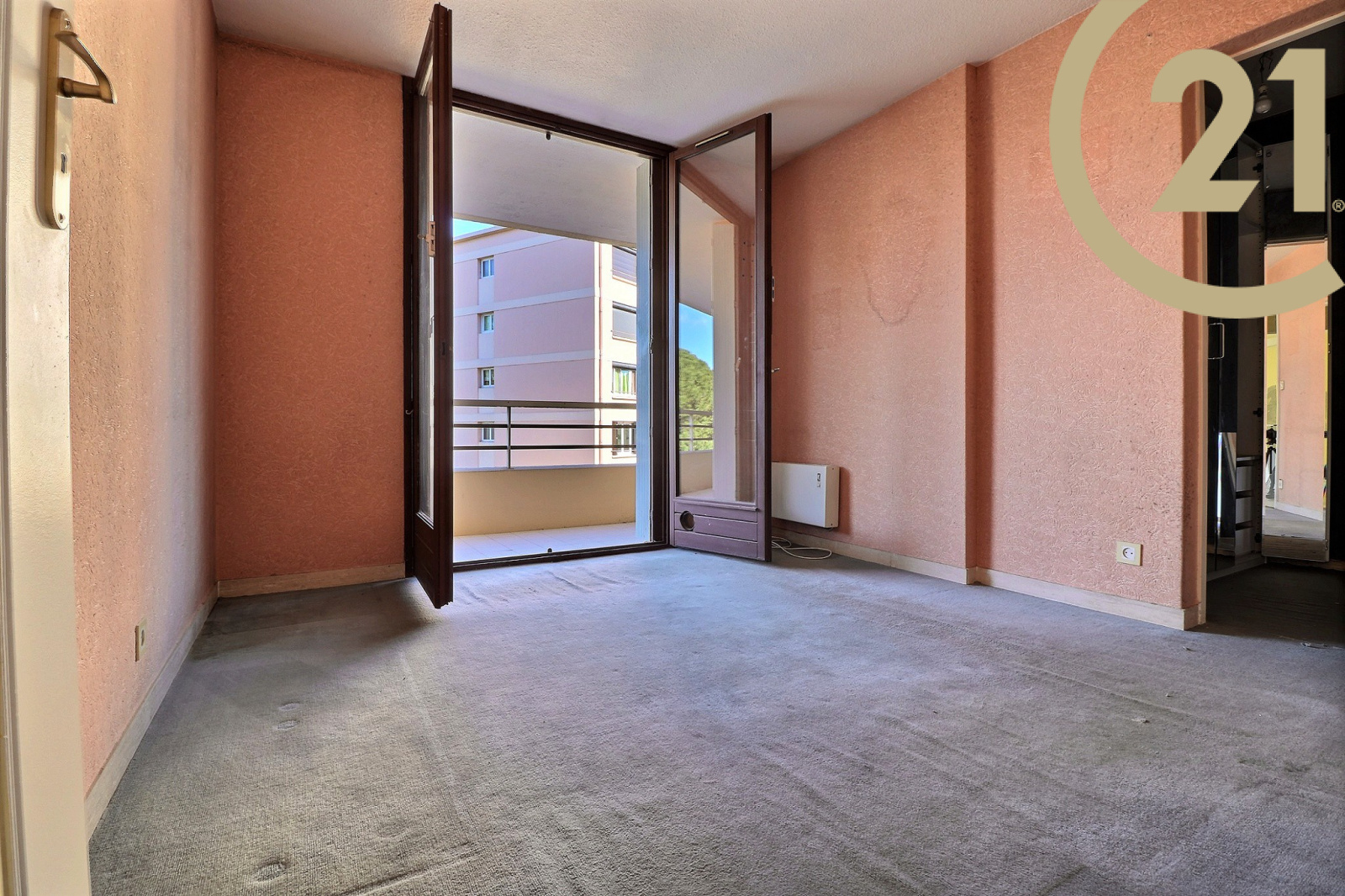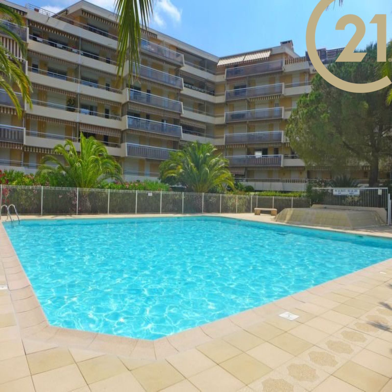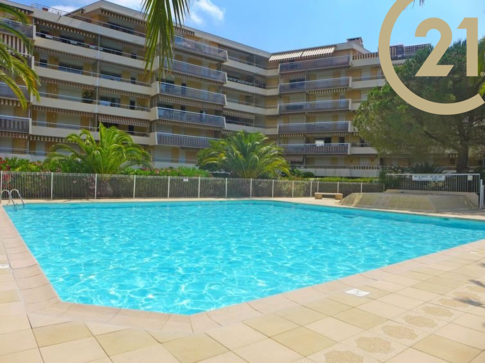 FREJUS PLAGE, Dans une résidence verdoyante et sécurisée avec piscine, à deux pas des plages, commerces, cet appartement deux pièces avec une grande terrasse se compose d'une entrée avec placard, d'un séjour, d'une cuisine indépendante, d'une chambre avec dressing, d'une salle de bain et toilette séparé. Rafraichissement à prévoir. Une cave et une place de parking privative complètent ce bien. Bien en copropriété de 930 lots - charges annuelles 1042 euros - foncier 984 euros. Tout à pied : plage/mer, commerces, gare St Raphael...