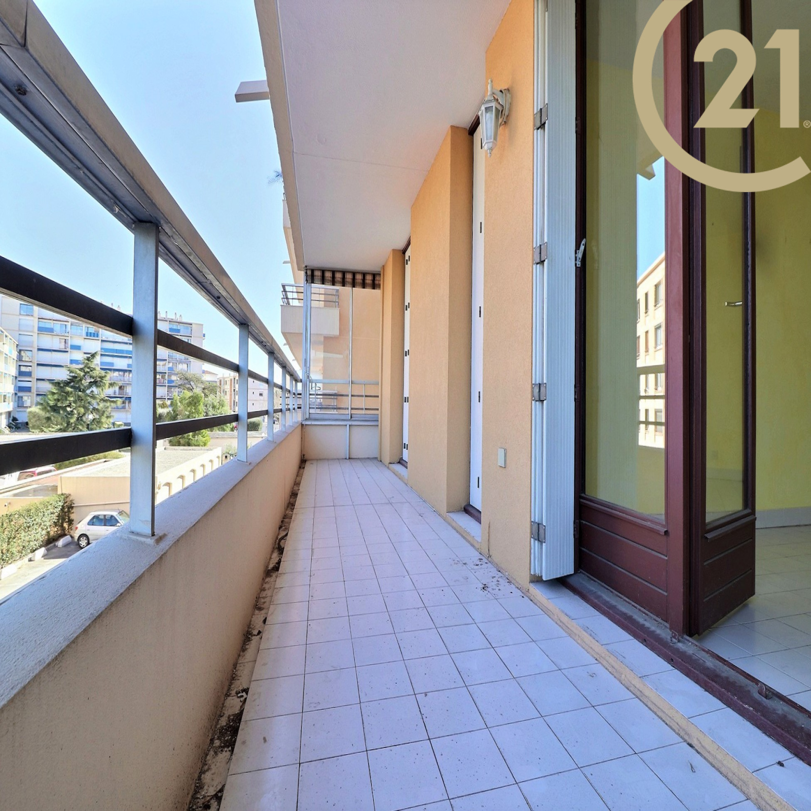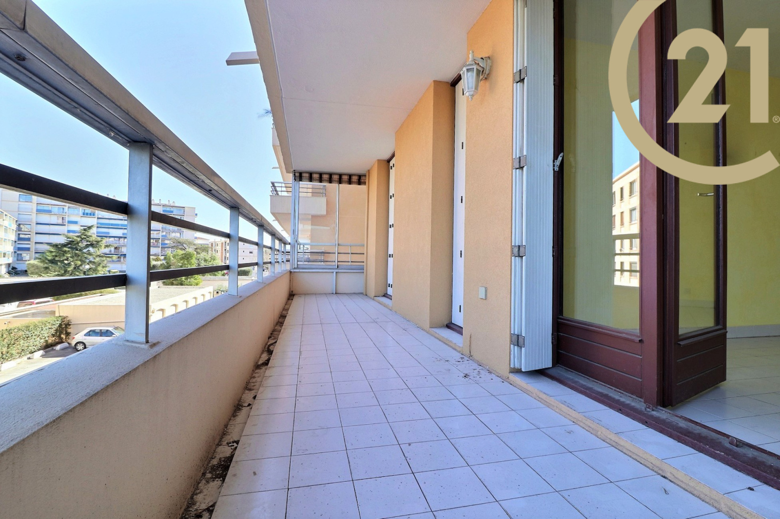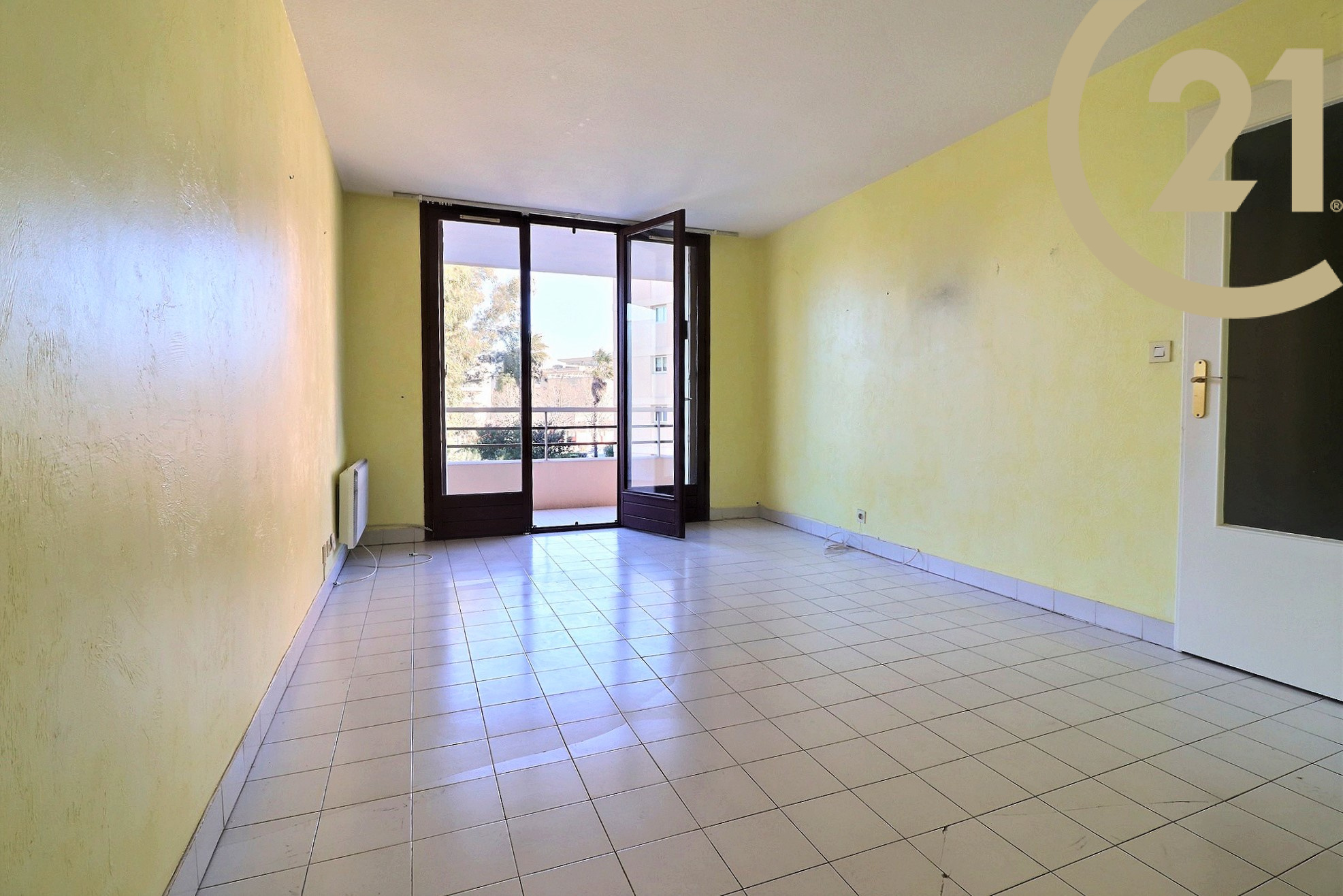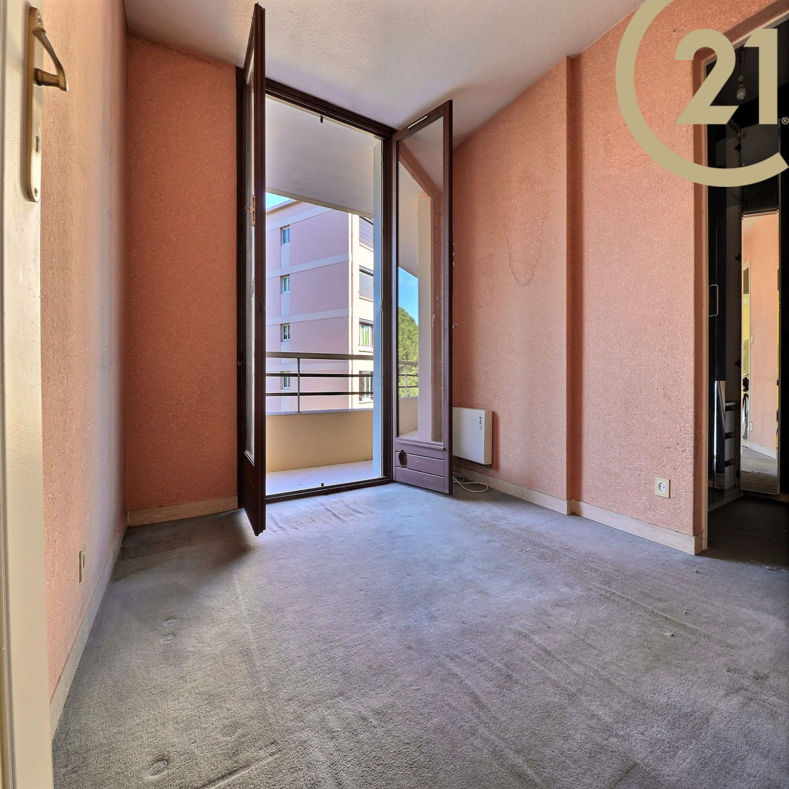 FREJUS PLAGE, Dans une résidence verdoyante et sécurisée avec piscine, à deux pas des plages, commerces, cet appartement deux pièces avec une grande terrasse se compose d'une entrée avec placard, d'un séjour, d'une cuisine indépendante, d'une chambre avec dressing, d'une salle de bain et toilette séparé. Rafraichissement à prévoir. Une cave et une place de parking privative complètent ce bien. Bien en copropriété de 930 lots - charges annuelles 1042 euros - foncier 984 euros. Tout à pied : plage/mer, commerces, gare St Raphael...