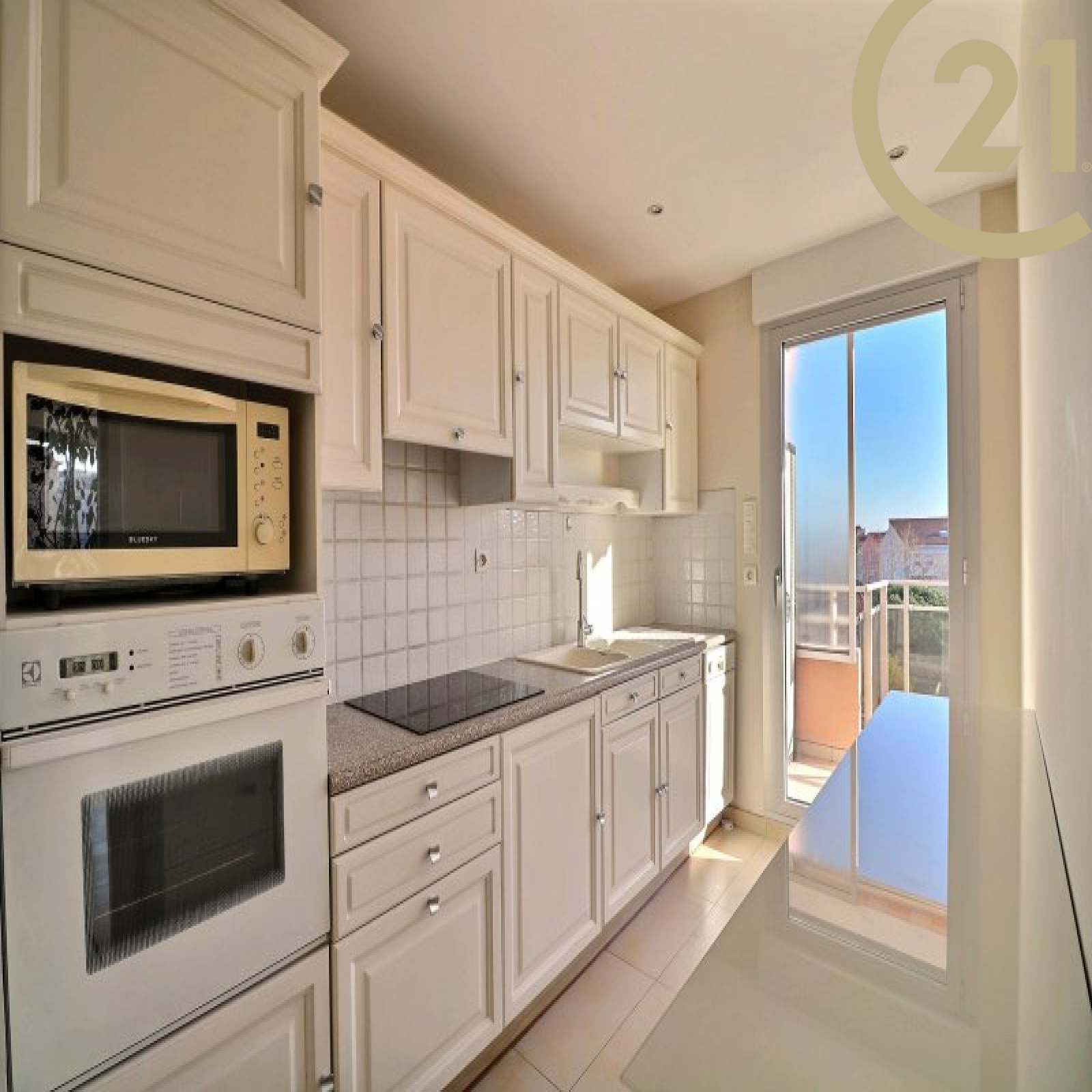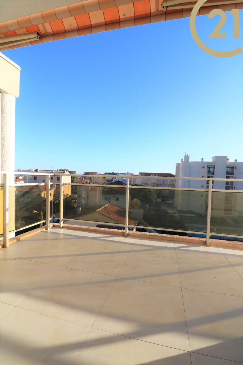 EXCLUSIVITE FREJUS PLAGE - Bel appartement 3 pièces situé au dernier étage d'une jolie résidence située au calme à 5 minutes à pied des plages et du centre-ville de Saint-Raphaël. Il offre une entrée, un séjour lumineux climatisé ouvert sur une grande terrasse exposée Plein Sud et protégée par un store motorisé, une cuisine indépendante équipée donnant également sur la terrasse, 2 chambres climatisées, une salle d'eau et des wc indépendants. Appartement rénové offrant de belles prestations : double vitrage, volets roulants électriques, climatisation réversible, porte blindée. Une place de parking privative aérienne et une cave sont vendues avec l'appartement. Possibilité d'acquérir deux places de parking couvertes en sous-sol (transformables en garage). Plages, commerces, centre-ville de Saint-Raphaël et gare accessibles à pied. Copropriété de 134 lots. Charges annuelles : 1620 €