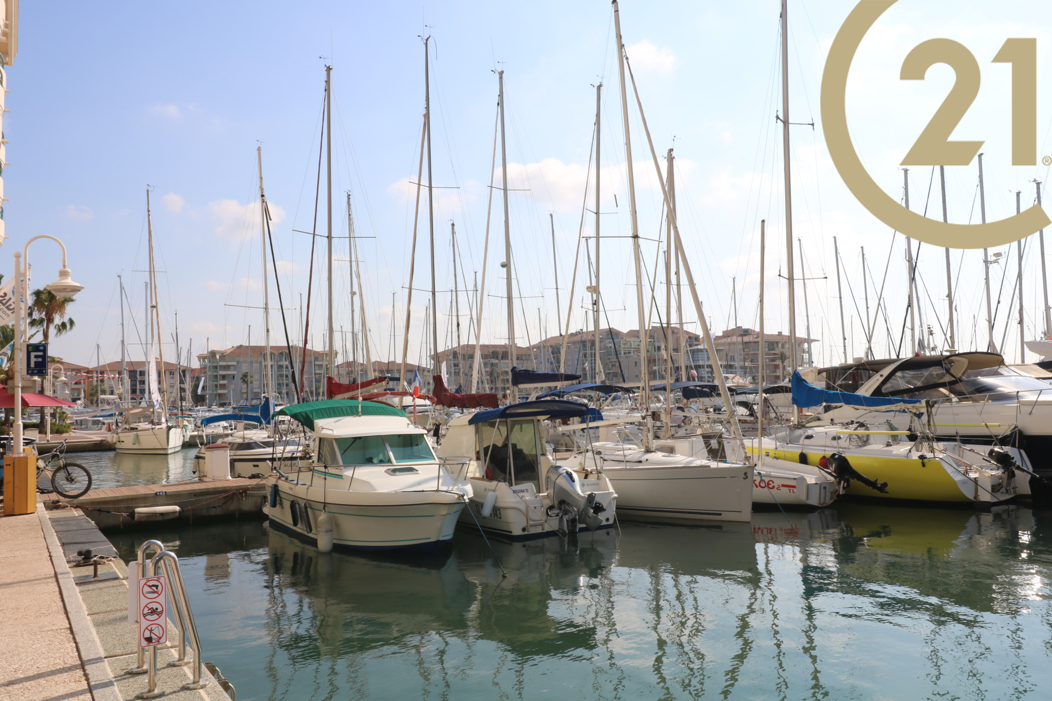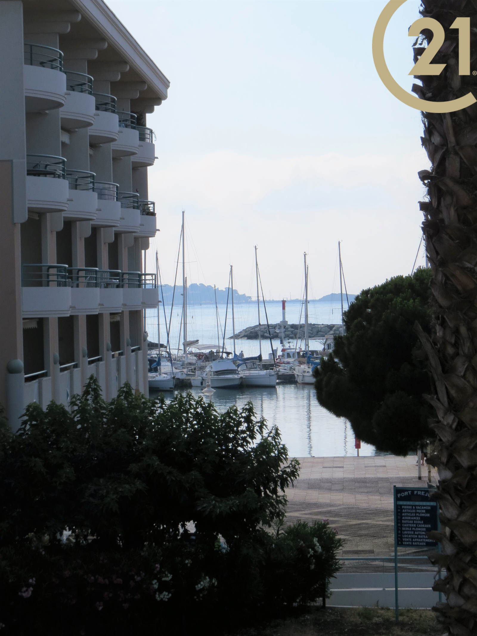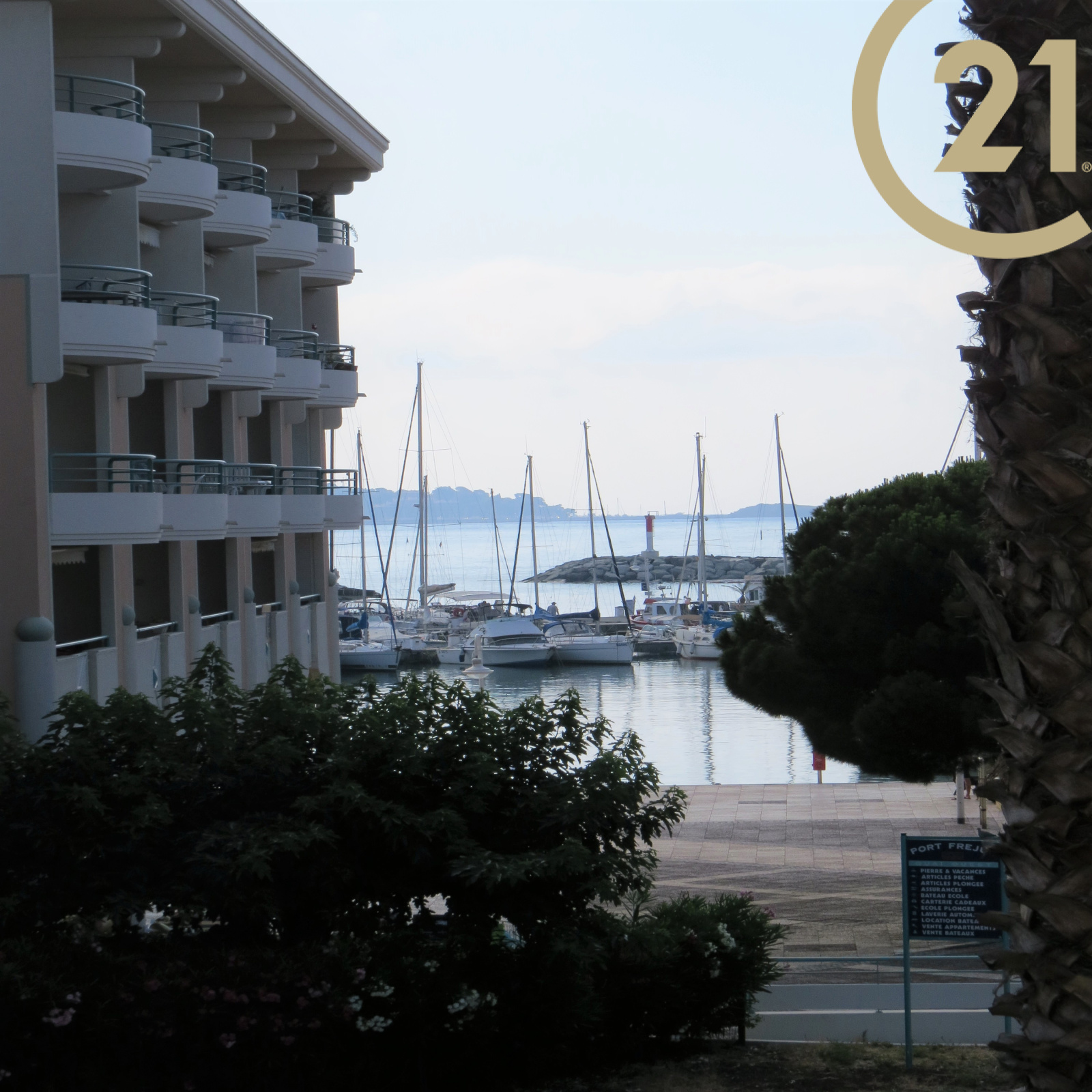 EXCLUSIVITE - PORT-FREJUS - Appartement 2 pièces de 41. 44 m² en parfait état situé en étage dans une résidence de standing récente à proximité immédiate du port et des vastes plages de la base nature. Cet appartement offre un hall d'entrée avec deux placards, un séjour avec cuisine équipée doté de 3 ouvertures lumineuses et d'un accès terrasse, une chambre avec placard, une jolie salle de bains avec meuble double vasque et des toilettes séparées. La terrasse offre une belle échappée sur le port. Climatisation réversible gainable et volet roulant électrique. Un large box en sous-sol est vendu avec l'appartement (possibilité de transformation en garage). Port, plages, commerces accessibles à pied. Charges annuelles : 736 €.