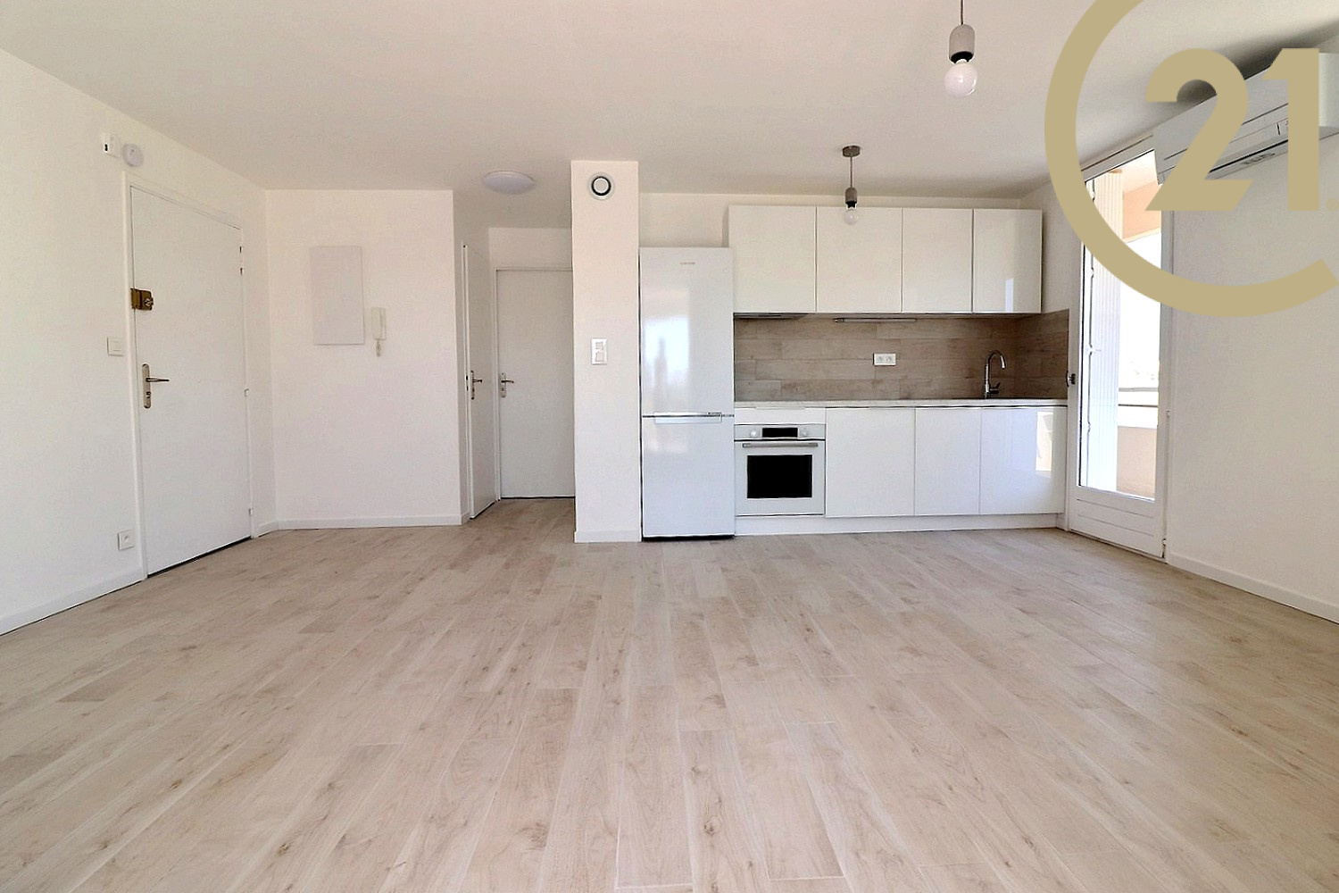 FREJUS PLAGE, à 200 mètres des plages/mer, dans une résidence très recherchée, sécurisée avec piscine en dernier étage, bel appartement avec spacieuse terrasse de 46m². L'appartement entièrement rénové se compose d'un grand séjour avec cuisine aménagée et équipée, d'une salle de bains avec wc indépendant et d'une chambre et son dressing. Une cave et une place de parking complètent ce bien. A visiter très rapidement ! Copropriété de 930 lots - Charges courantes annuelles 1392,33 €. ( 116,03 euros mensuel) - Foncier 1140 euros
