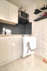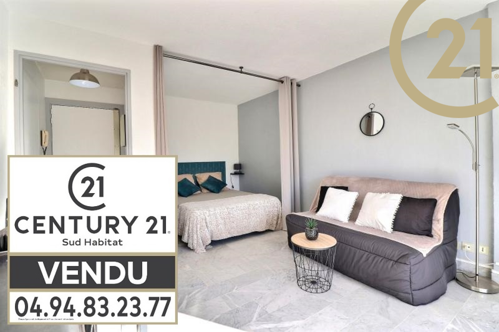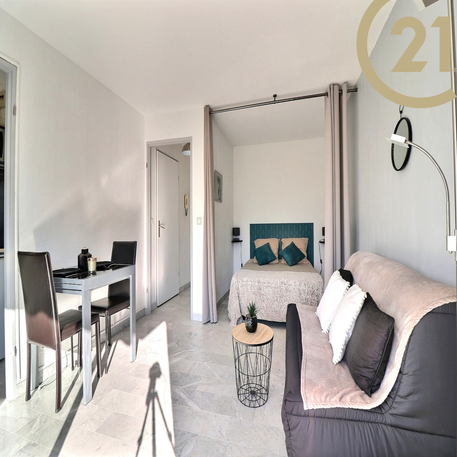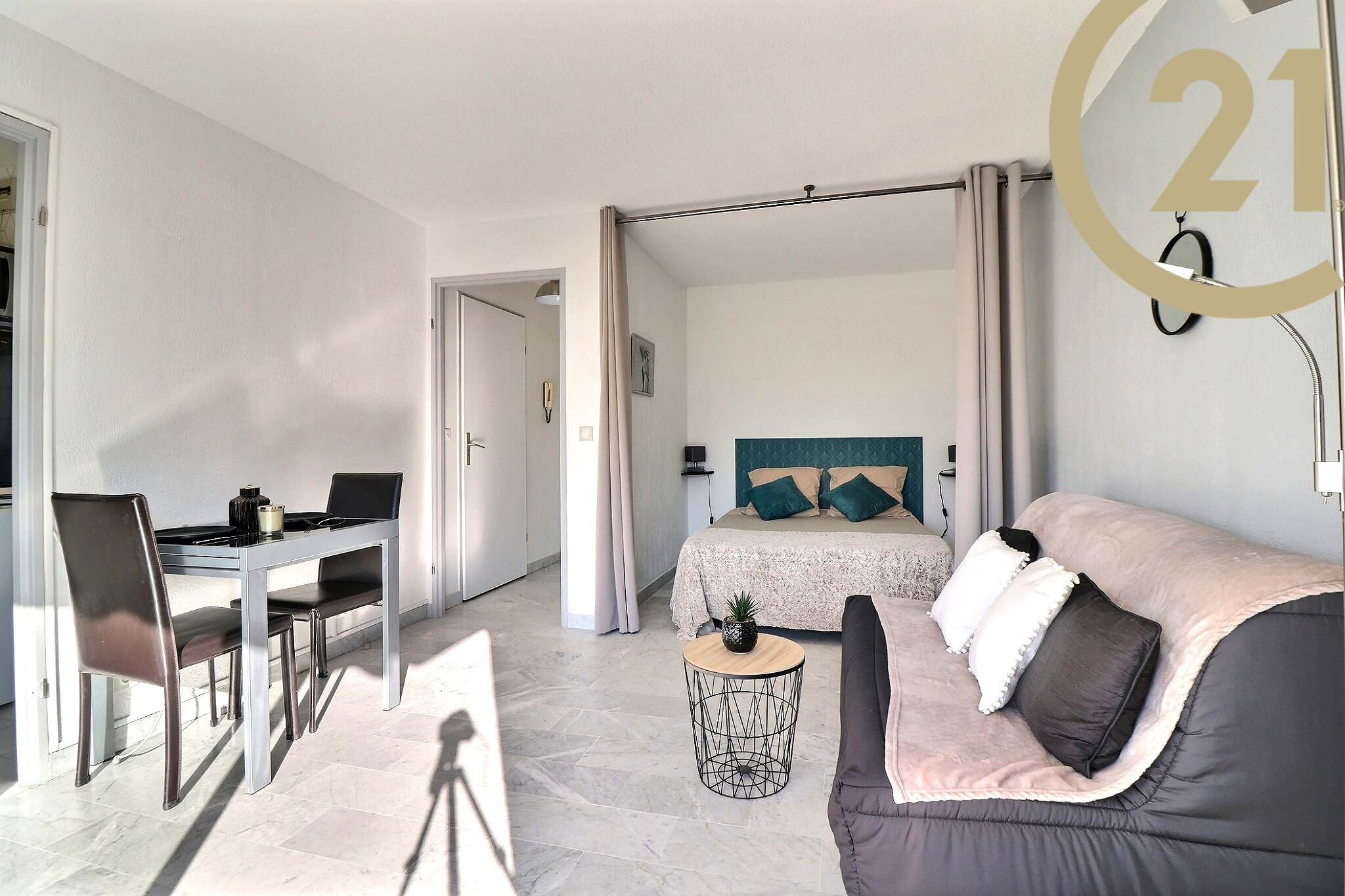 EXCLUSIVITE FREJUS PLAGE - Superbe studio situé dans une petite résidence avec ascenseur parfaitement entretenue à quelques minutes à pied seulement des plages de sable. Cet appartement rénové avec goût et idéalement agencé est situé en dernier étage. Il offre un hall d'entrée, un séjour avec un coin nuit accueillant un lit double donnant sur une spacieuse terrasse orientée vers le parc, une cuisine séparée et équipée ainsi qu'une salle de bains avec WC et rangements. Une place de parking privative et un grand grenier sont vendus avec cet appartement. Emplacement idéal : Port-Fréjus, plages/mer, et tous commerces accessibles en quelques minutes à pied seulement. Copropriété de 30 lots. Charges courantes annuelles : 756 €.