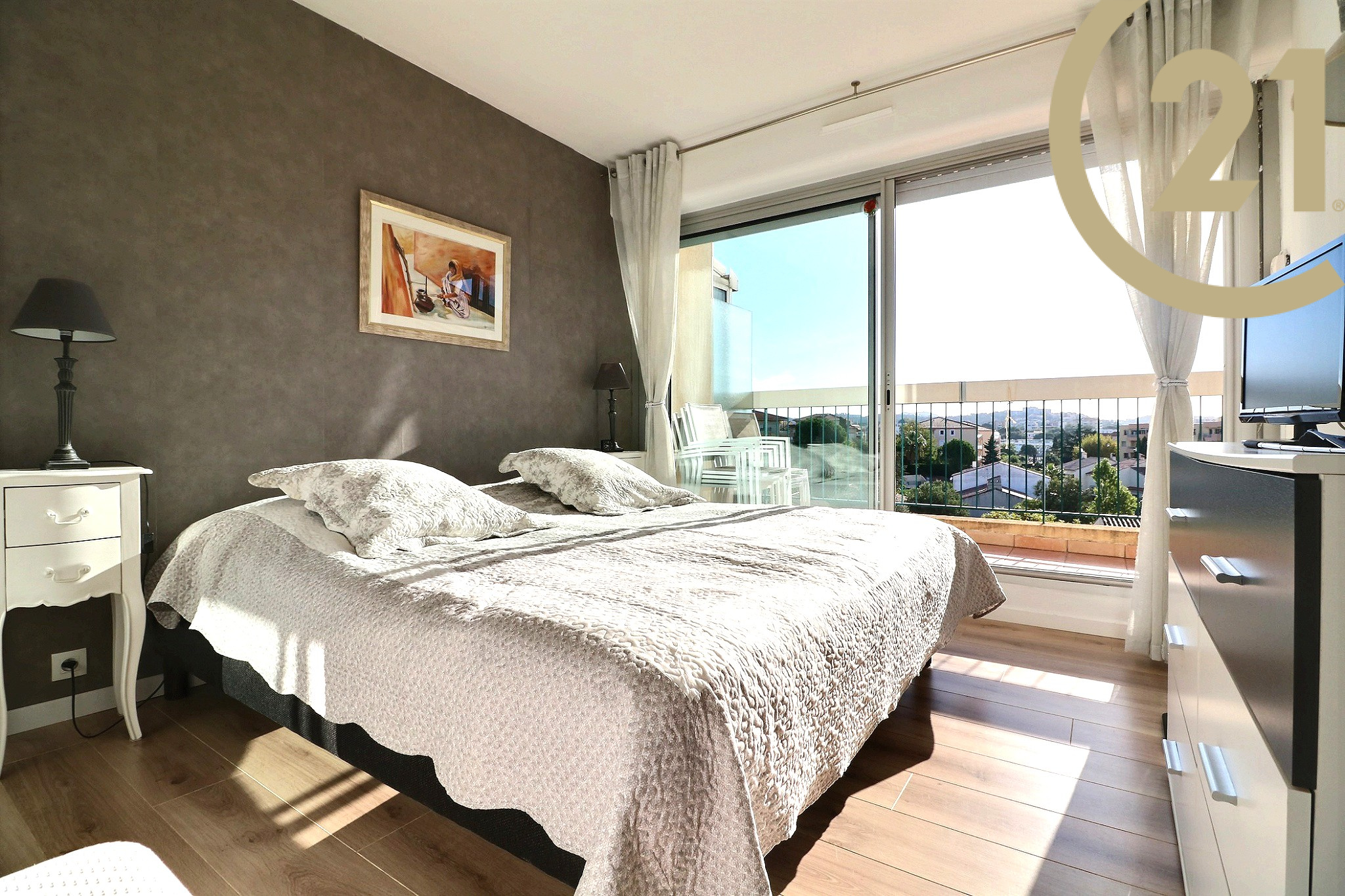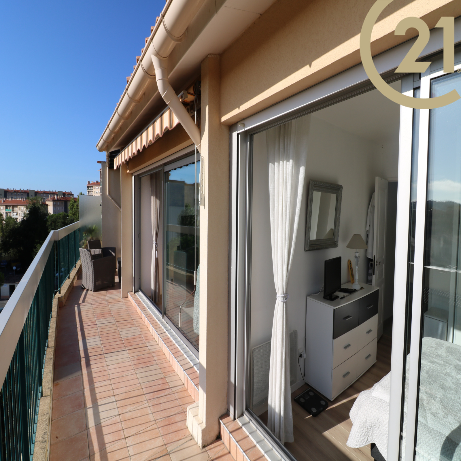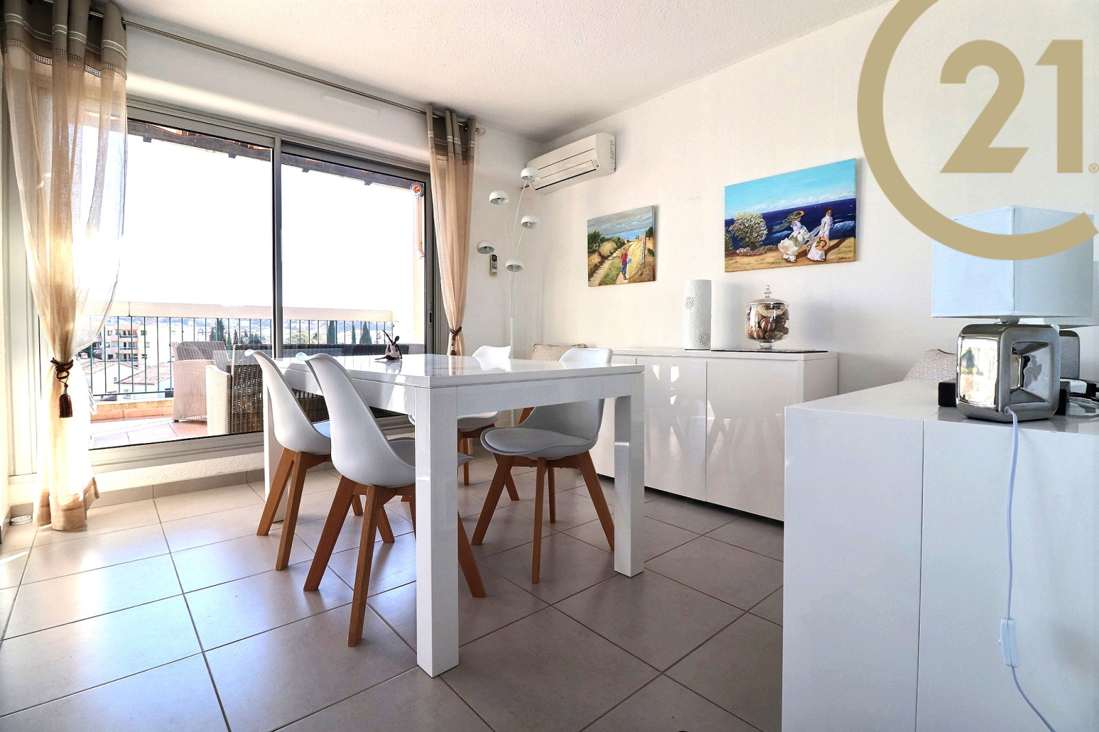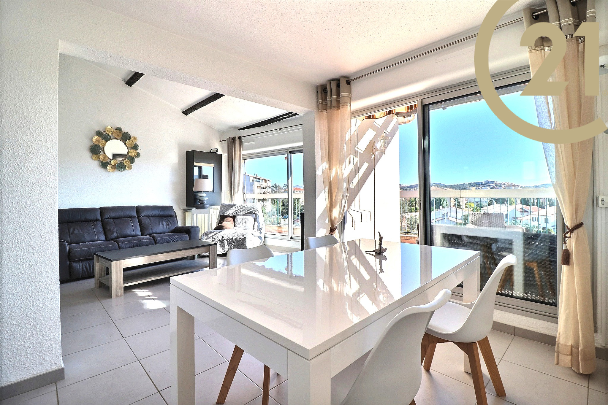 EXCLUSIVITE - FREJUS PROCHE SAINT-RAPHAEL - Venez découvrir ce superbe appartement 3 pièces de 72.20 m² idéalement agencé et rénové avec goût. Situé au dernier étage d'une résidence sécurisée avec ascenseur à proximité du centre-ville de Saint-Raphaël, cet appartement traversant et lumineux offre un hall d'entrée, un double séjour/salle à manger climatisé avec belle hauteur sous plafond, une cuisine séparée entièrement équipée, un dégagement avec placard, deux chambres avec rangements intégrés dont une offrant un accès extérieur, une salle d'eau avec spacieuse douche et des WC séparés avec lave-mains. Une grande terrasse de 19 m² équipée d'un store offre une belle vue dégagée sur l'Estérel. L'appartement est vendu avec une place de parking privative. Nombreuses places visiteurs. Aucun travaux à prévoir. Centre-ville de Saint- Raphaël accessible à pied. Proche plages/mer. Copropriété de x lots - Charges courantes annuelles : 2014 €.
