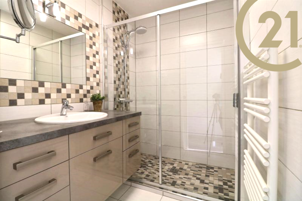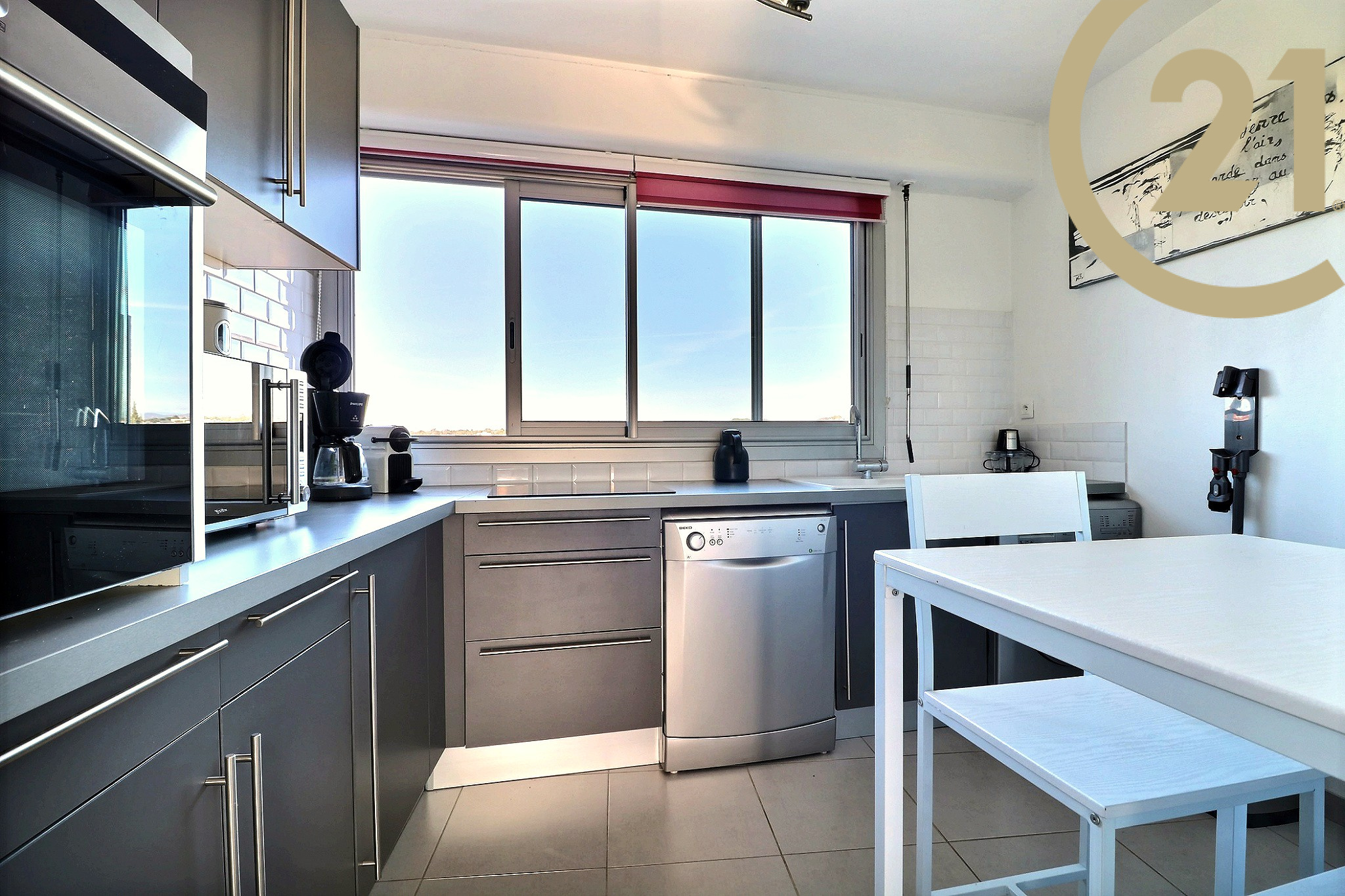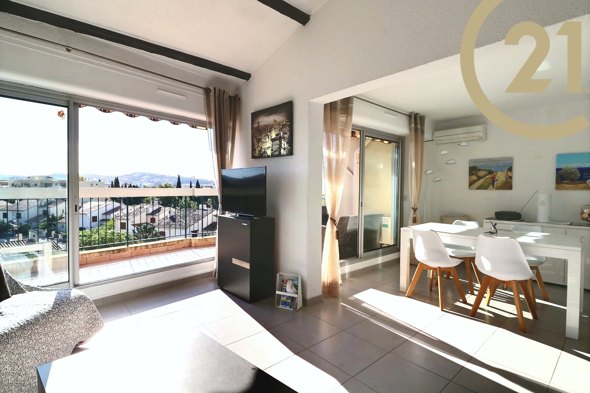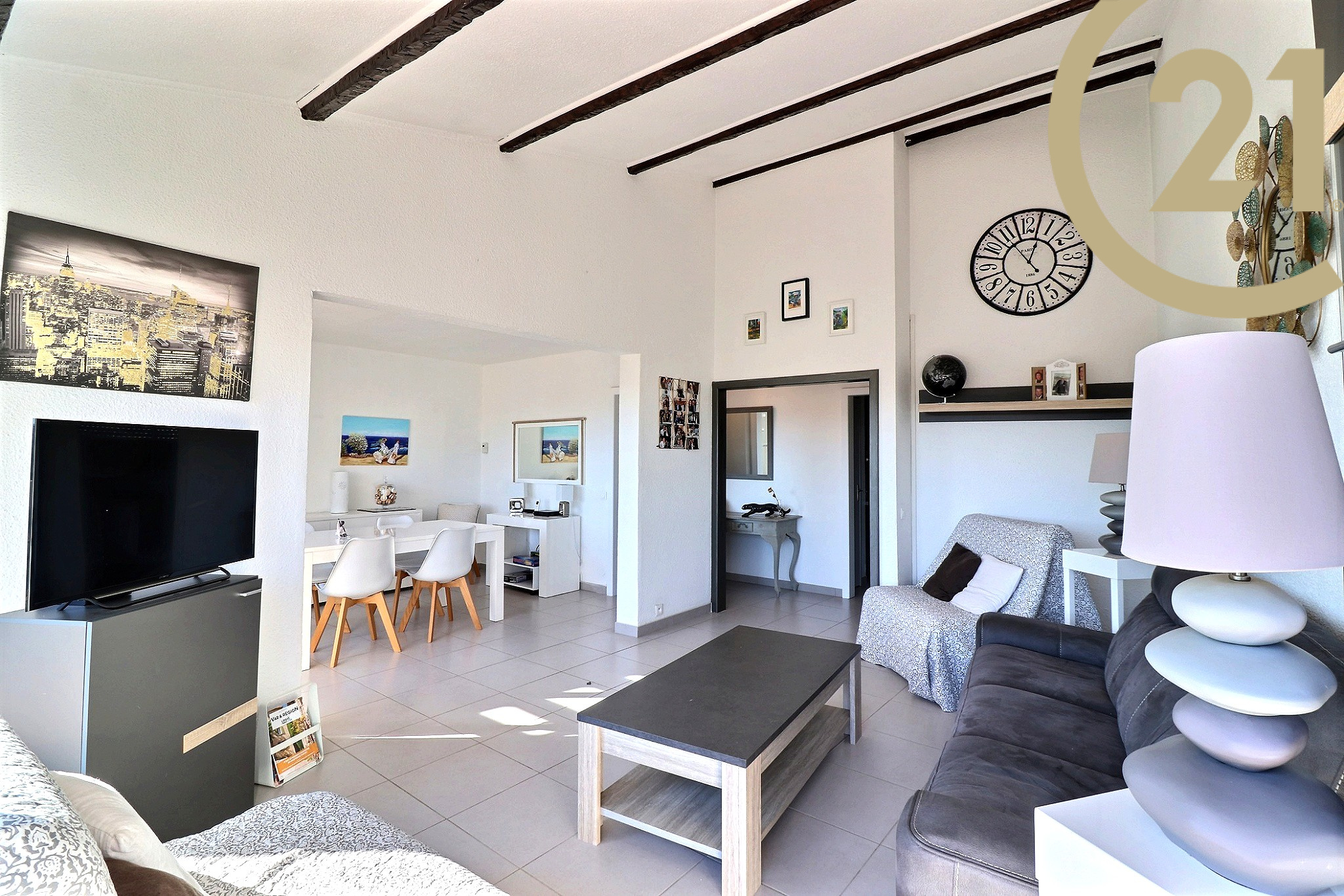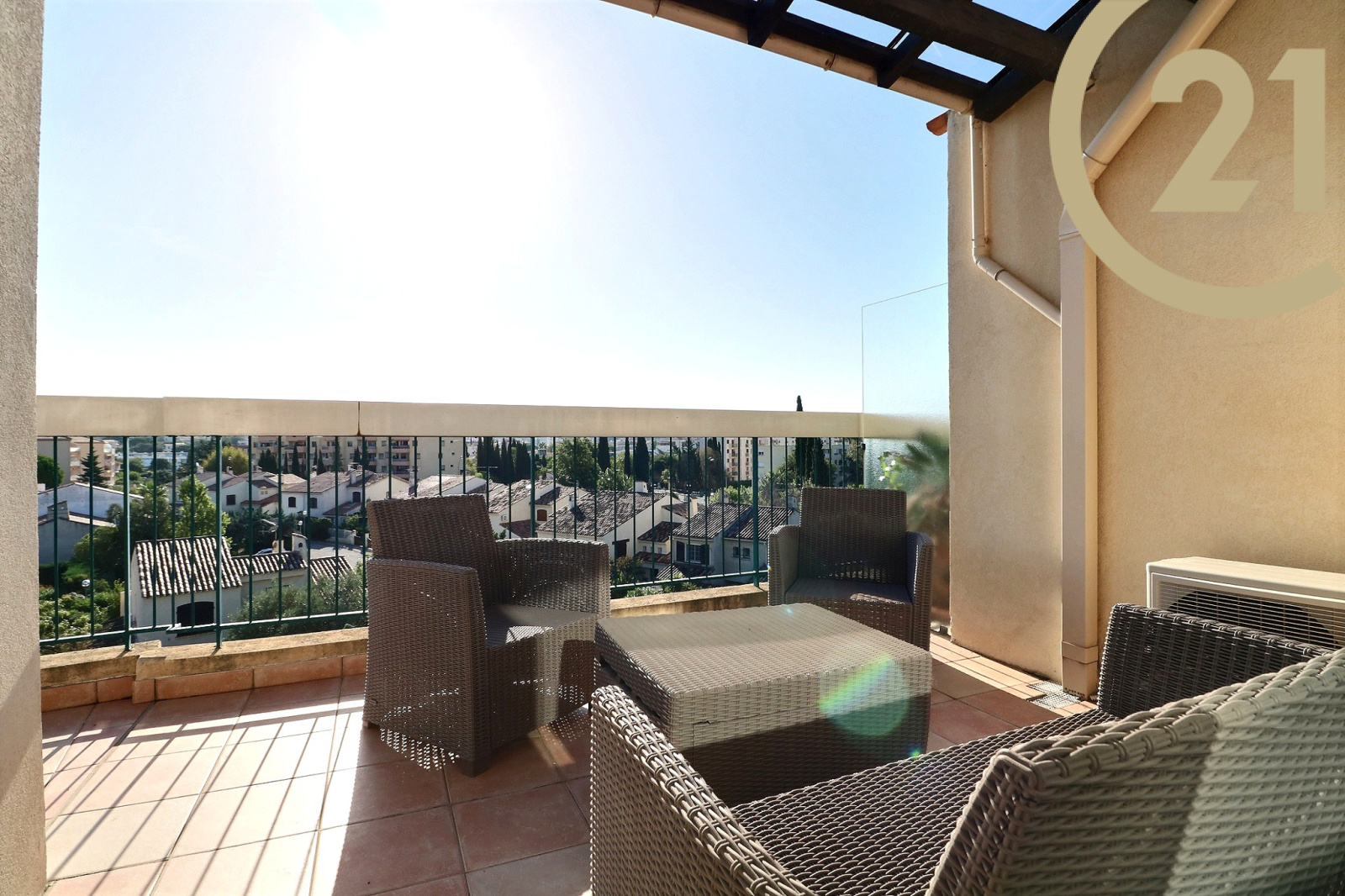 EXCLUSIVITE - FREJUS PROCHE SAINT-RAPHAEL - Venez découvrir ce superbe appartement 3 pièces de 72.20 m² idéalement agencé et rénové avec goût. Situé au dernier étage d'une résidence sécurisée avec ascenseur à proximité du centre-ville de Saint-Raphaël, cet appartement traversant et lumineux offre un hall d'entrée, un double séjour/salle à manger climatisé avec belle hauteur sous plafond, une cuisine séparée entièrement équipée, un dégagement avec placard, deux chambres avec rangements intégrés dont une offrant un accès extérieur, une salle d'eau avec spacieuse douche et des WC séparés avec lave-mains. Une grande terrasse de 19 m² équipée d'un store offre une belle vue dégagée sur l'Estérel. L'appartement est vendu avec une place de parking privative. Nombreuses places visiteurs. Aucun travaux à prévoir. Centre-ville de Saint- Raphaël accessible à pied. Proche plages/mer. Copropriété de x lots - Charges courantes annuelles : 2014 €.
