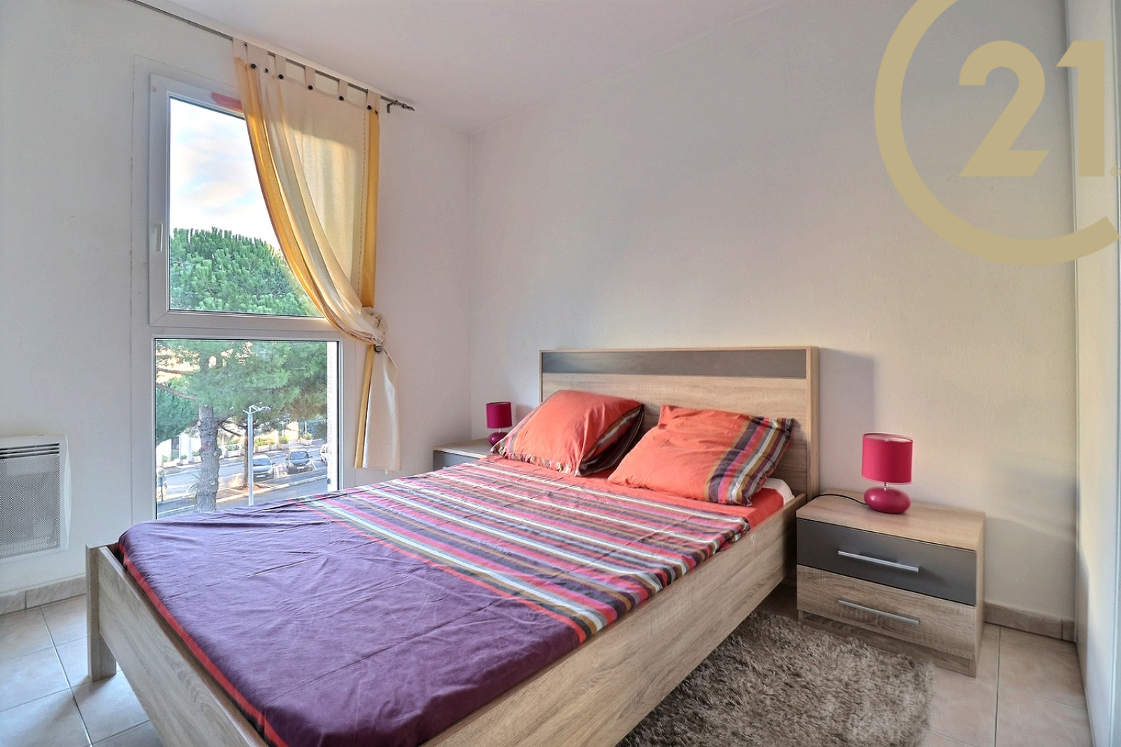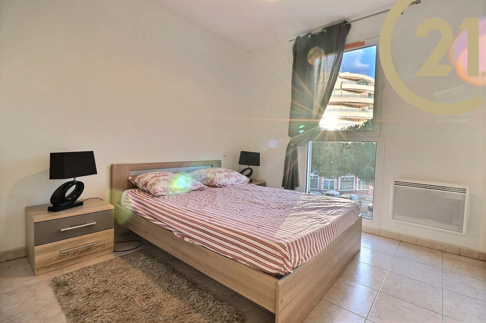 FREJUS PLAGE, dans une résidence sécurisée, à 200 mètres de la plage/mer, proche commerces et du centre-ville de Saint-Raphaël, bel appartement 3 pièces de 64 m². Il se compose d'une entrée avec placard, d'une cuisine indépendante aménagée et équipée, d'un séjour, de deux chambres avec placards, d'une salle de bains et d'un WC séparé. Belle terrasse au calme de plus de 18 m². Ascenseur - Double vitrage. Emplacement idéal. Tout à pied. Copropriété de 32 lots - Charges courantes annuelles 1388 €.