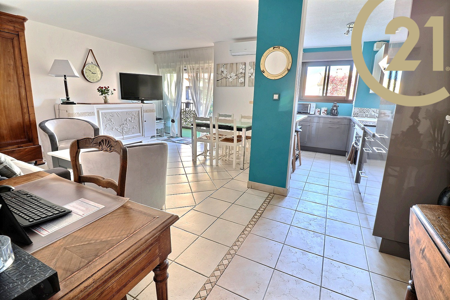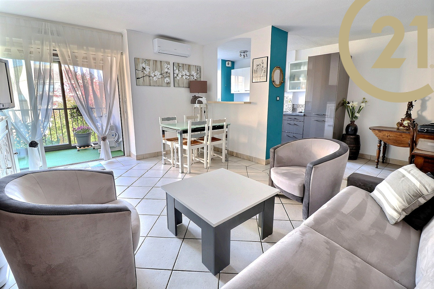 FREJUS, dans une résidence sécurisée et arborée, bel appartement 3 pièces rénové, il est composé d'un séjour avec cuisine ouverte équipée donnant sur une loggia de 10 m² fermée, de 2 chambres, d'une salle d'eau et d'un wc indépendant. Cave et parking. Commerces, centre-ville et base nature à pied.