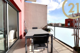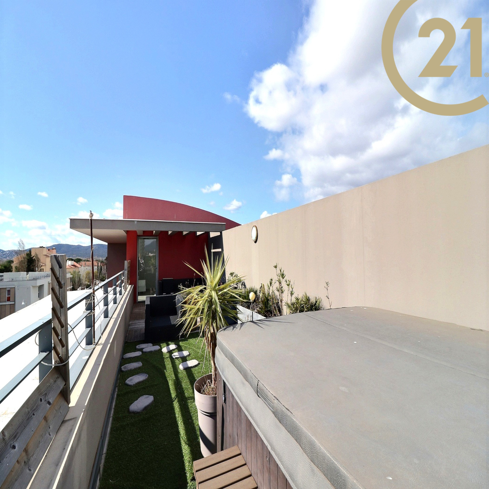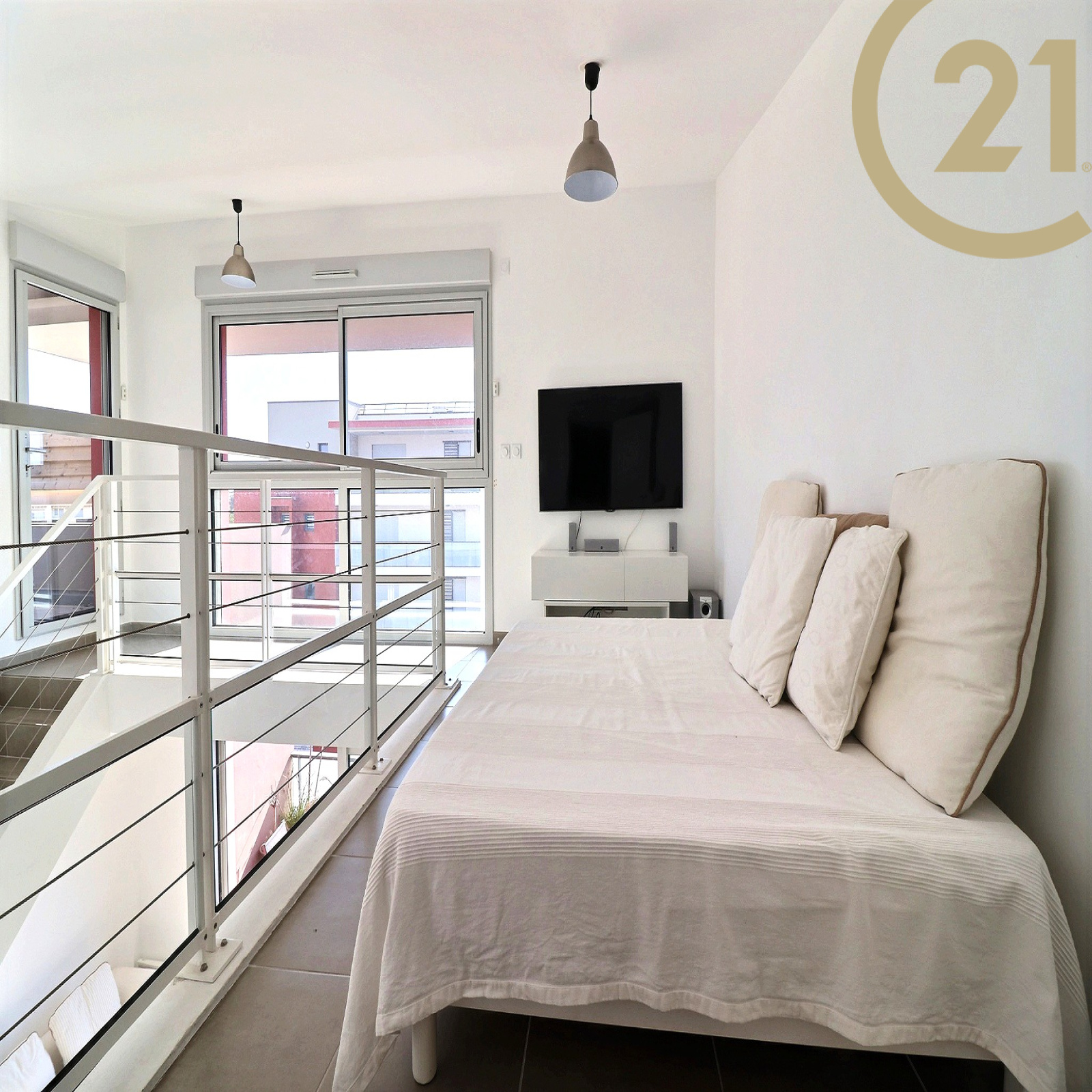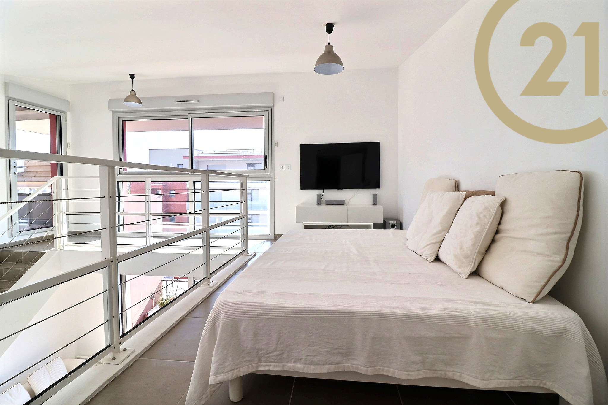 EXCLUSIVITE PORT-FREJUS II - Superbe appartement 3/4 pièces situé dans une résidence de standing récente implantée dans le quartier prisé et récent de Port-Fréjus II. Cet appartement en dernier étage offre un hall d'entrée avec placard, une pièce de vie avec belle hauteur sous plafond et cuisine moderne entièrement équipée, une terrasse exposée plein Sud, un coin nuit indépendant composé de deux belles chambres avec placards, d'une salle de bain avec douche, baignoire et WC. L'étage offre une grande mezzanine avec cellier (possibilité de transformation en chambre avec point d'eau) et une magnifique terrasse aménagée de 35 m² dotée d'un espace détente et d'un jacuzzi. Cette terrasse bénéficie d'un bel ensoleillement et d'une superbe vue dégagée sur le canal de Port-Fréjus II et le massif de l'Estérel. Un grand garage et une cave complètent ce bien. Vous apprécierez le calme à proximité immédiate du port, des plages et du centre-ville. Charges annuelles : 1752 €.