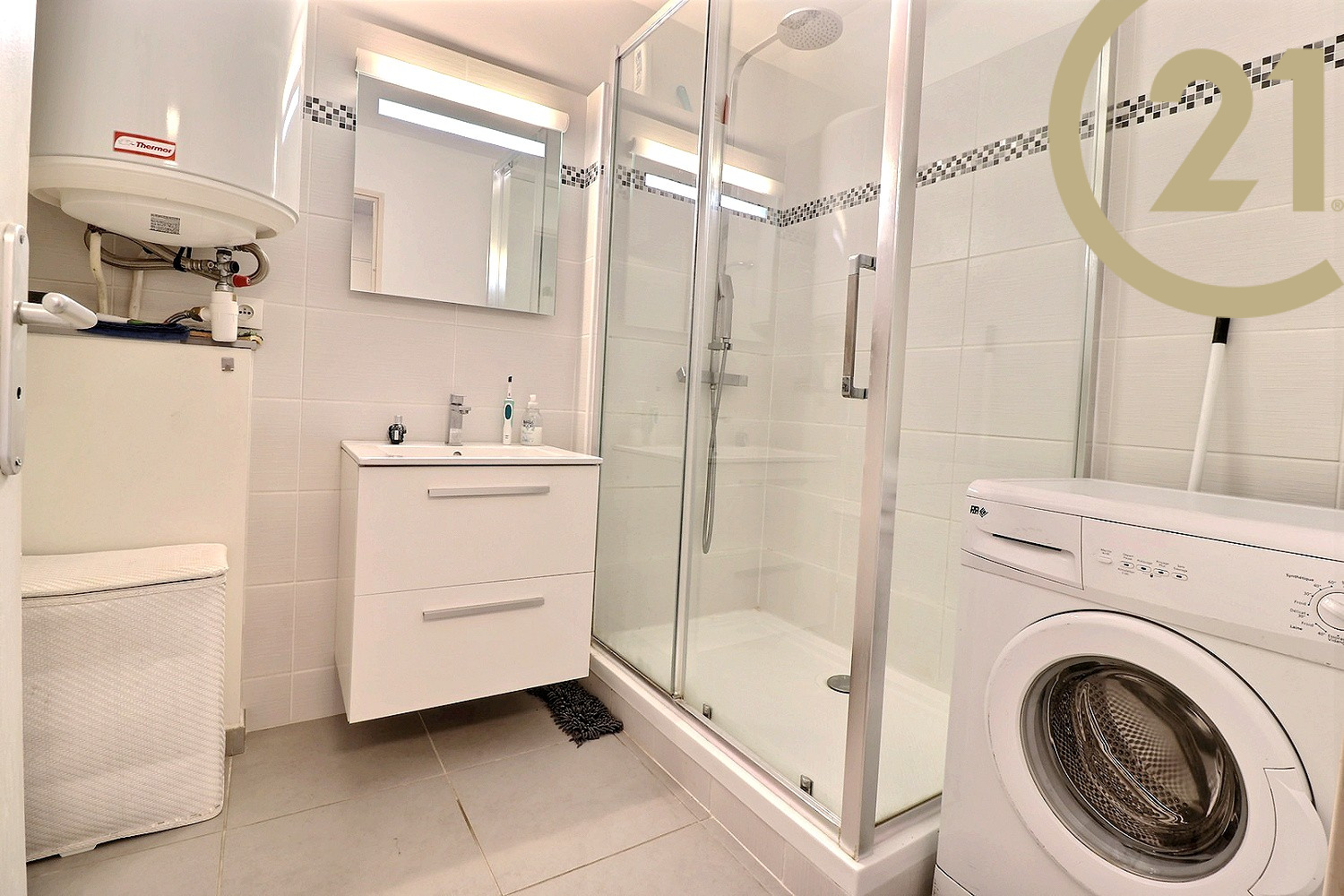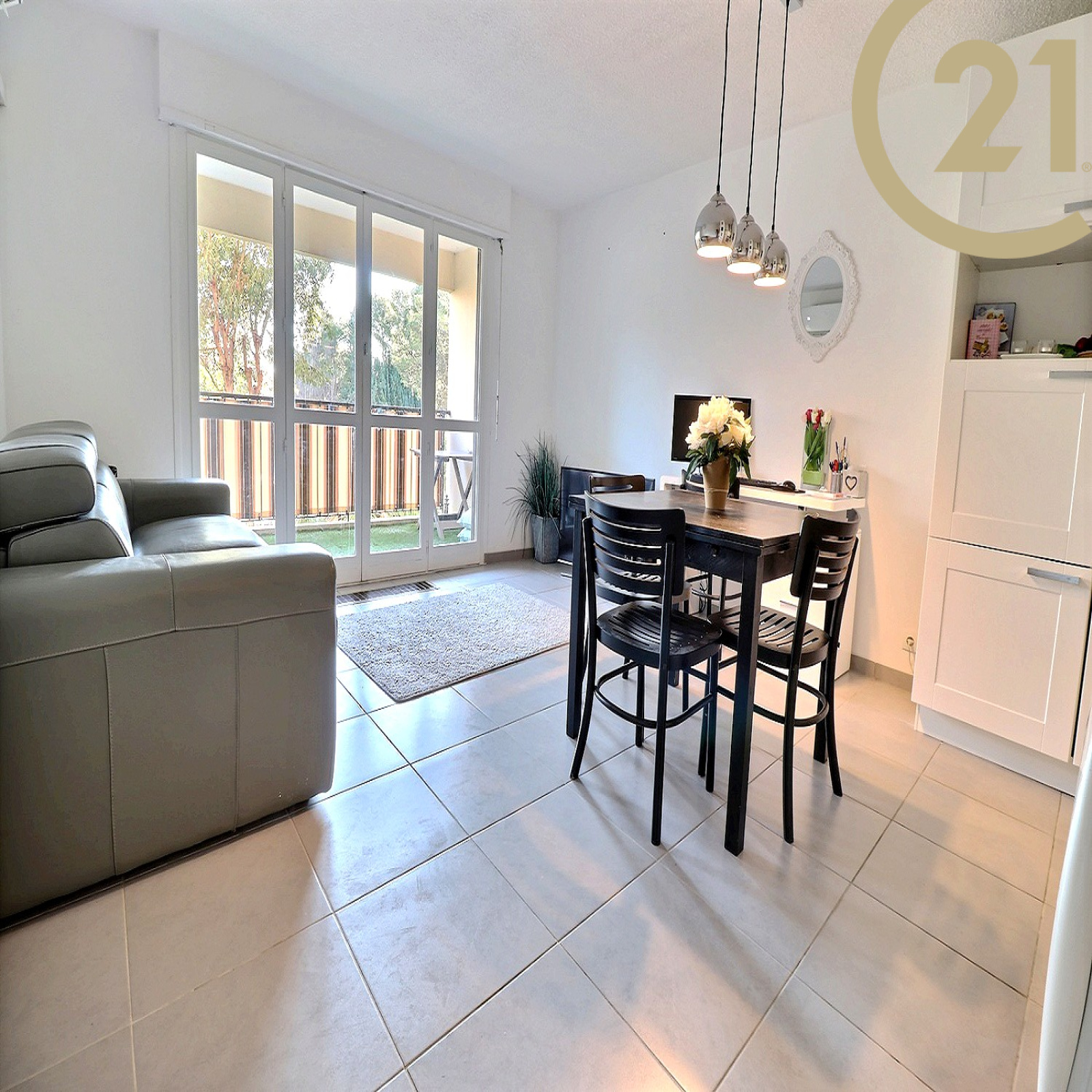 EXCLUSIVITE FREJUS, studio rénové dans une résidence arborée et sécurisée, calme et proche du centre ville. Il est composé d'une entrée avec cabine, d'une salle d'eau, d'un wc et d'une pièce à vivre avec son coin cuisine aménagée qui donne sur une terrasse de 7 m². Une cave et un parking complètent ce bien.