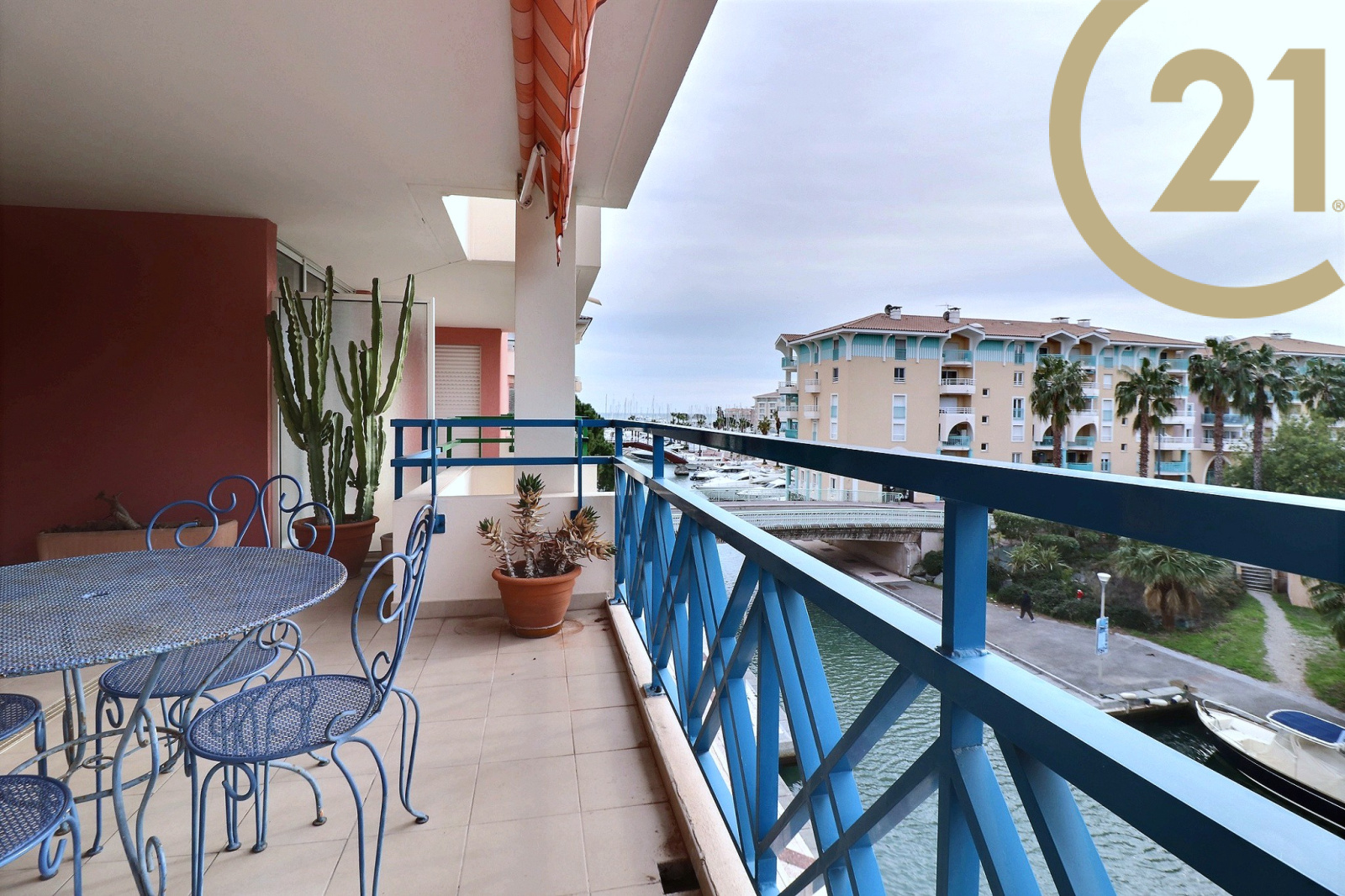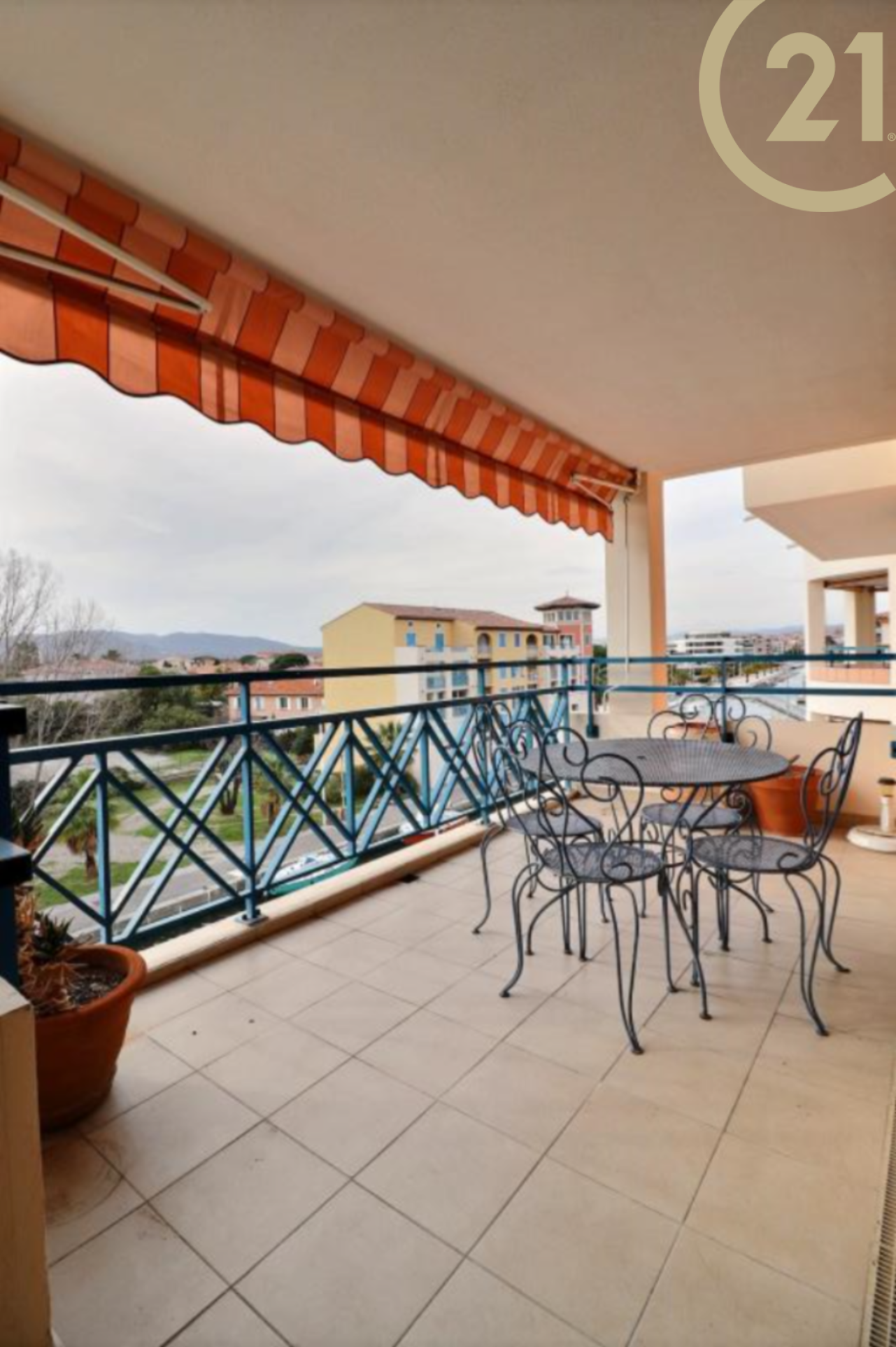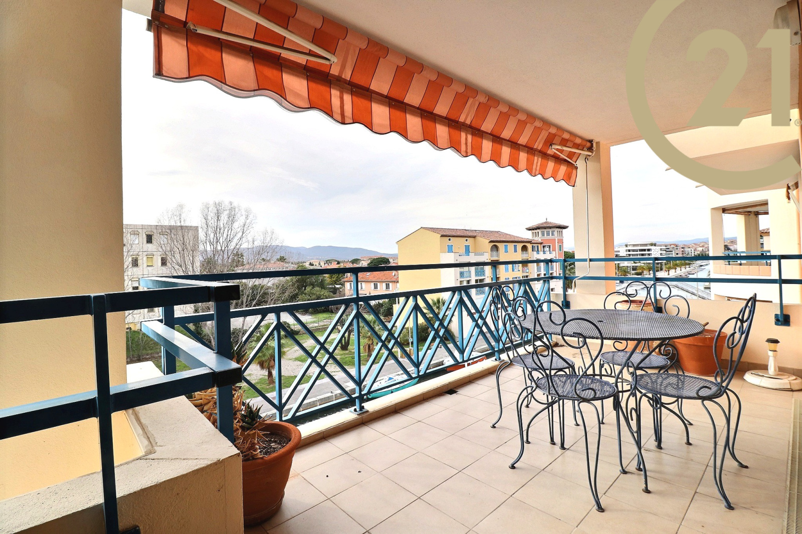 EXCLUSIVITE PORT-FREJUS- Bel appartement situé en étage élevé dans une résidence de standing jouissant d'une situation idéale sur le canal de Port-Fréjus. Cet appartement offre un hall d'entrée avec placard, un séjour avec cuisine semi-ouverte équipée donnant sur une spacieuse terrasse, une chambre avec placards, et une véranda de plus de 10. 65 m² totalement aménagée utilisée en chambre donnant sur un balcon et une terrasse, une salle de bains et des WC indépendants. L'appartement est vendu avec un grand garage fermé en sous-sol. L'appartement bénéficie d'une superbe vue dégagée sur le port et le centre historique de Fréjus. Tous commerces, plages, mer, base de loisirs et port accessibles à pied. Copropriété de x lots. Charges annuelles : 1232 €.