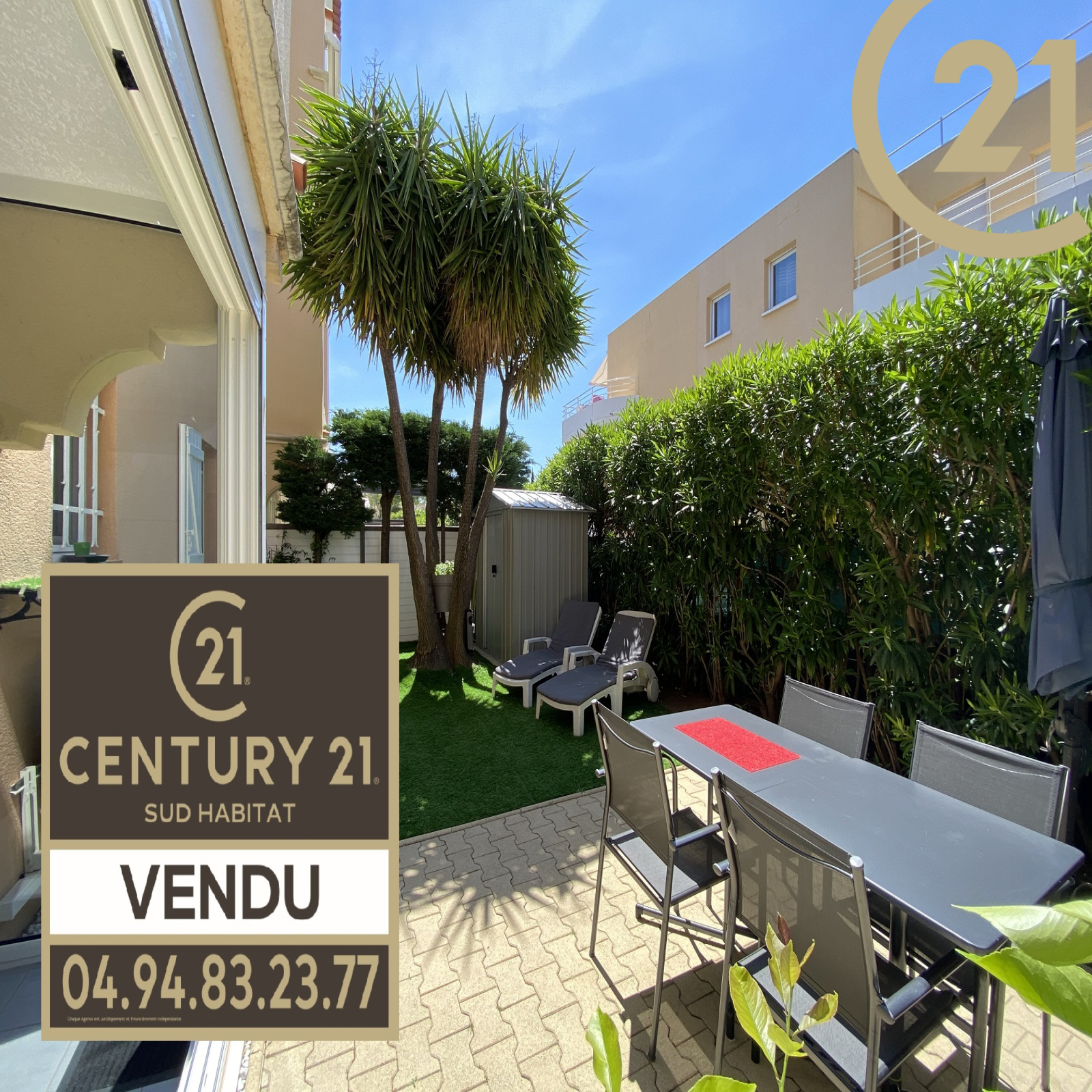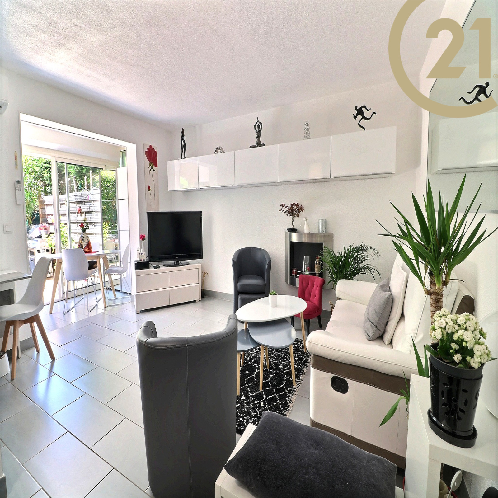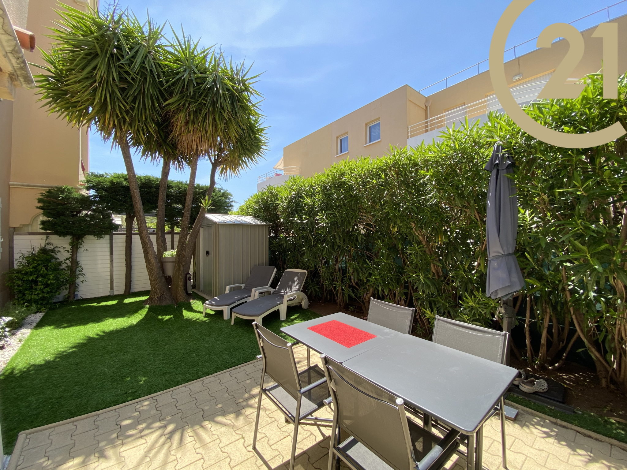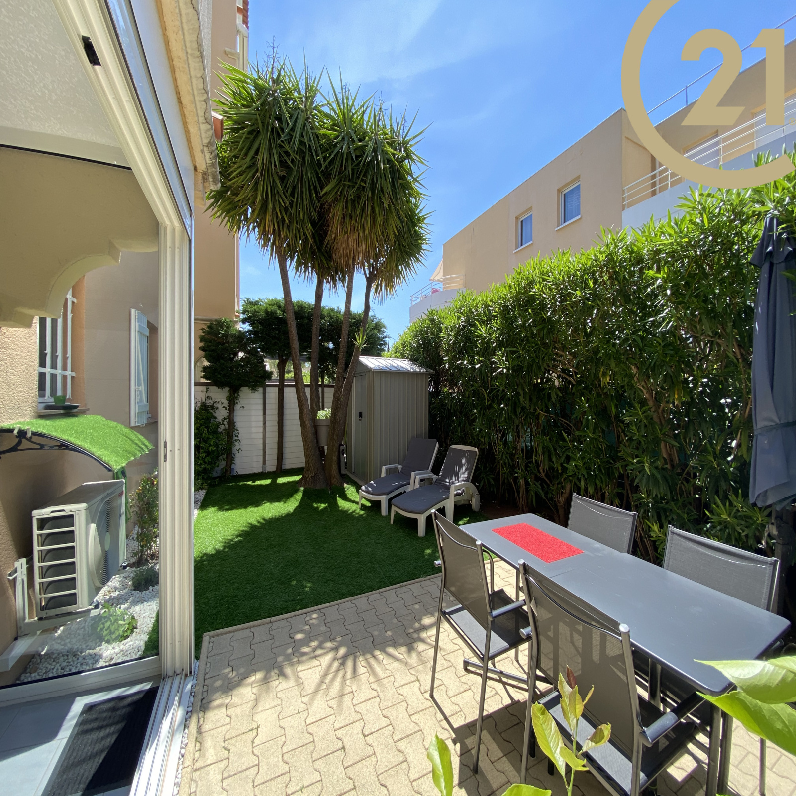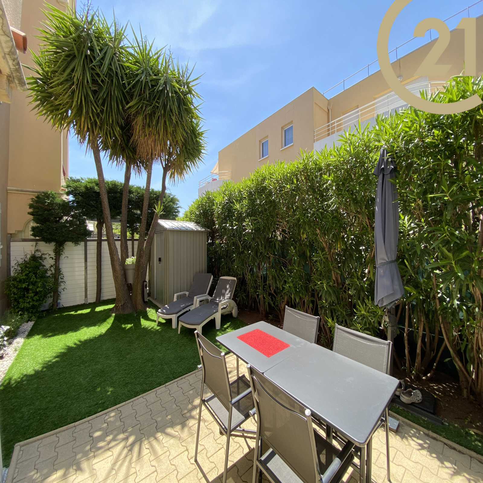 PORT-FREJUS II - Magnifique appartement 2 pièces en rez-de-jardin entièrement rénové avec goût et parfaitement entretenu. Cet appartement très soigné offre une spacieuse pièce de vie avec cuisine ouverte fonctionnelle et entièrement équipée, une belle véranda faisant office de salle à manger, une salle d'eau, une chambre avec placards et des WC séparés. Cet appartement est doté d'un jardin joliment aménagé bénéficiant d'une exposition Sud-Ouest. Prestations de qualité et contemporaines : climatisation réversible, volets roulants électriques. Une cave et un parking privatif sont vendus avec cet appartement. Visite virtuelle disponible à la demande. Copropriété de 19 lots à usage d'habitation. Charges annuelles : 682 € Renseignements au 06 26 94 01 45