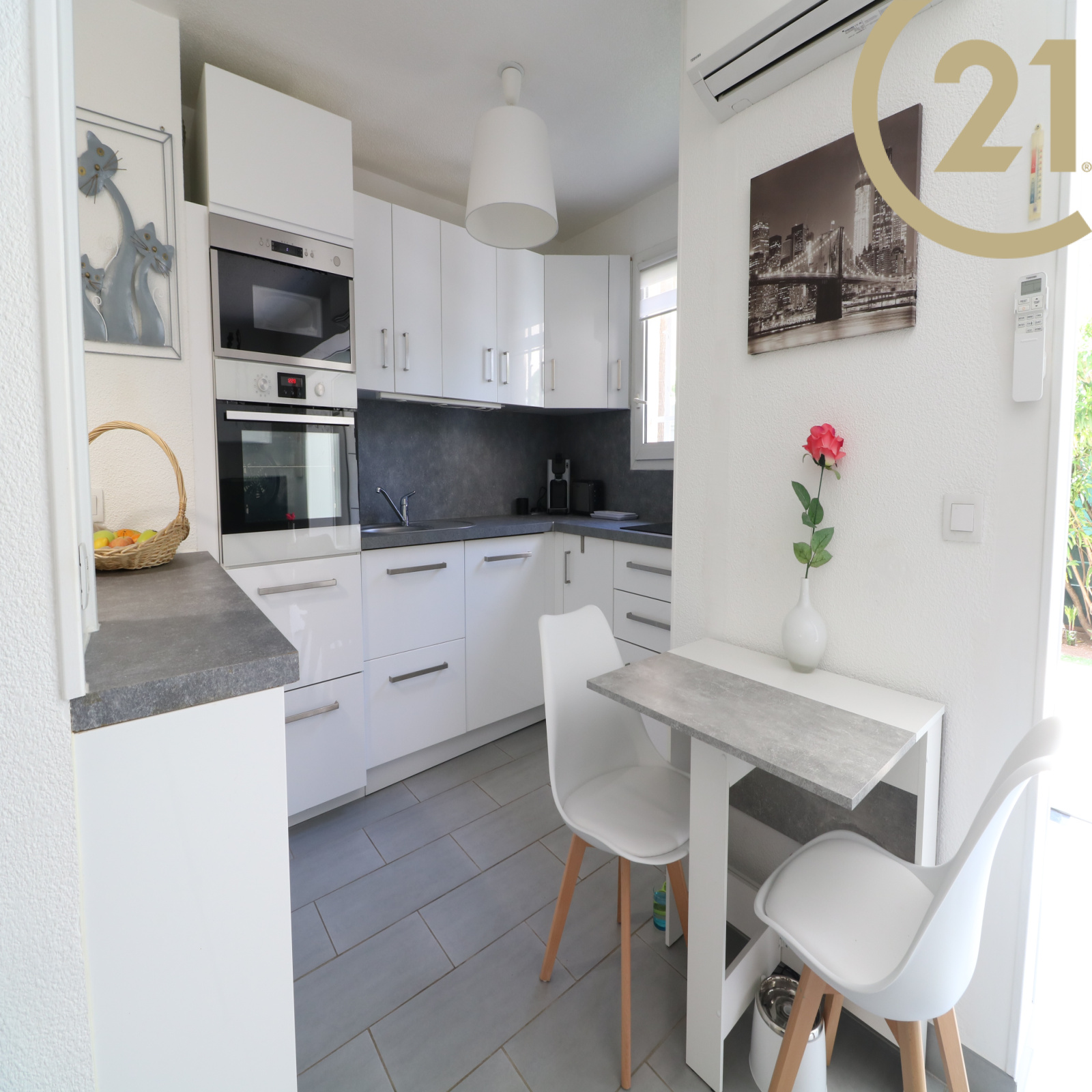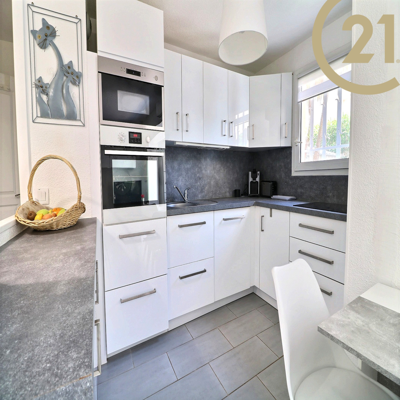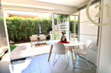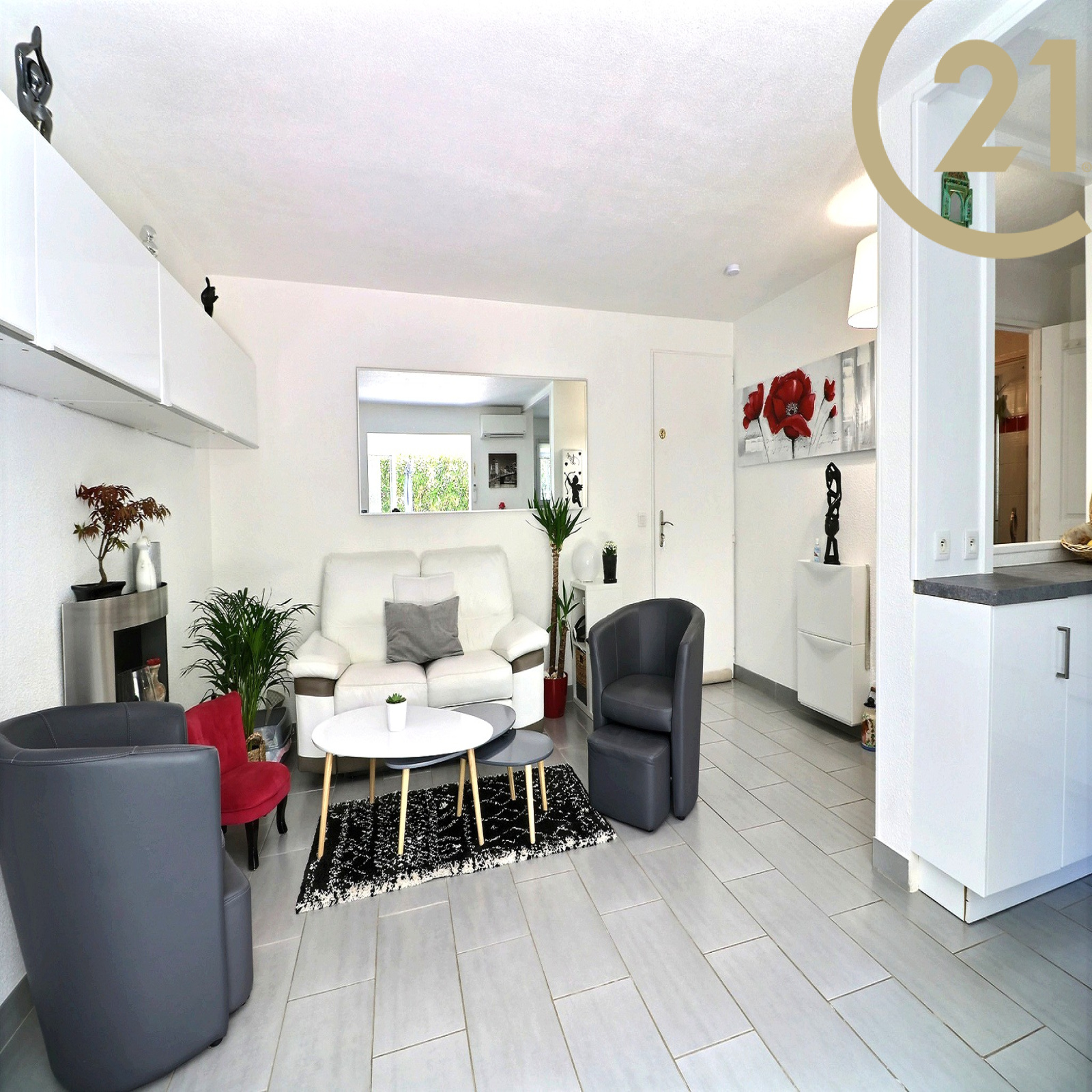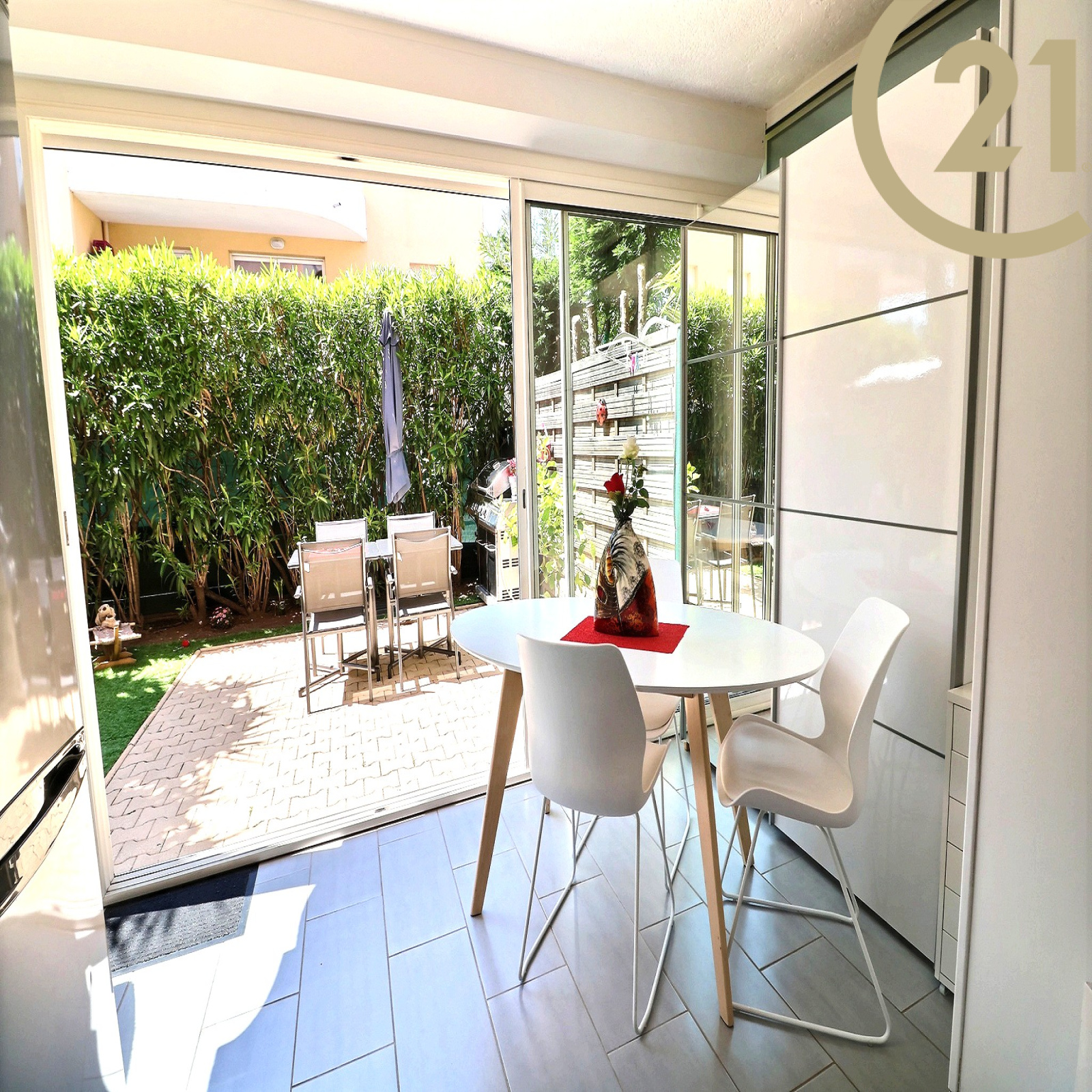 PORT-FREJUS II - Magnifique appartement 2 pièces en rez-de-jardin entièrement rénové avec goût et parfaitement entretenu. Cet appartement très soigné offre une spacieuse pièce de vie avec cuisine ouverte fonctionnelle et entièrement équipée, une belle véranda faisant office de salle à manger, une salle d'eau, une chambre avec placards et des WC séparés. Cet appartement est doté d'un jardin joliment aménagé bénéficiant d'une exposition Sud-Ouest. Prestations de qualité et contemporaines : climatisation réversible, volets roulants électriques. Une cave et un parking privatif sont vendus avec cet appartement. Visite virtuelle disponible à la demande. Copropriété de 19 lots à usage d'habitation. Charges annuelles : 682 € Renseignements au 06 26 94 01 45