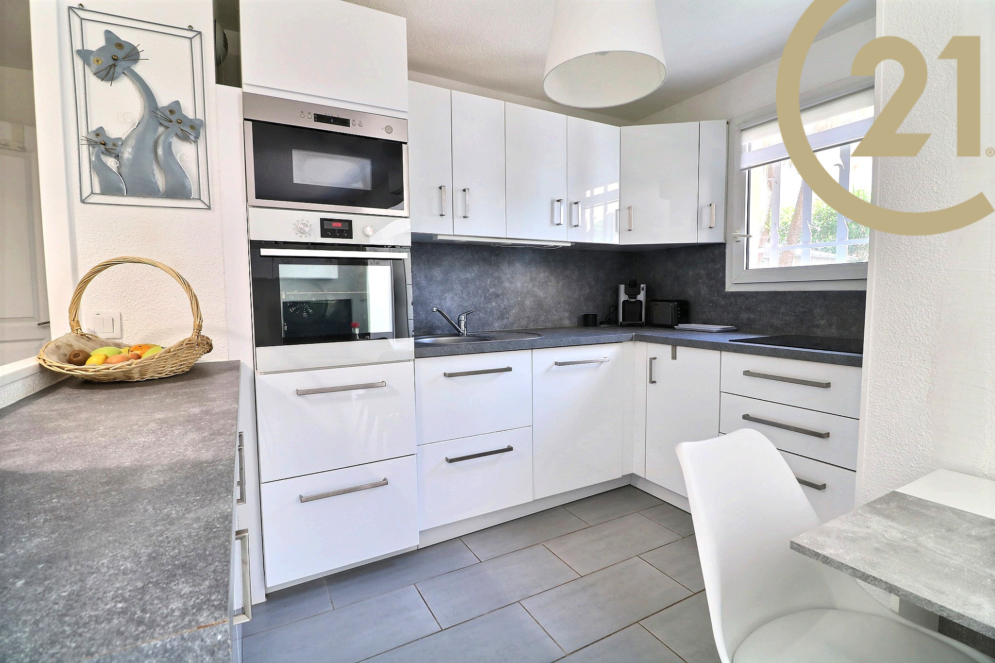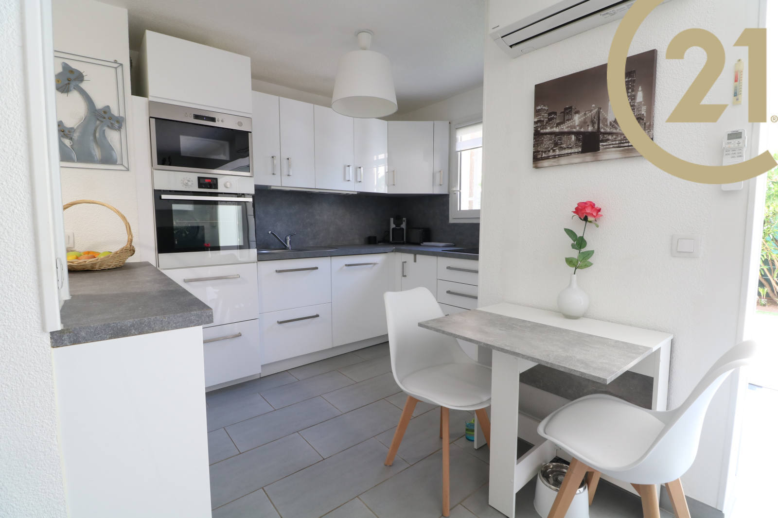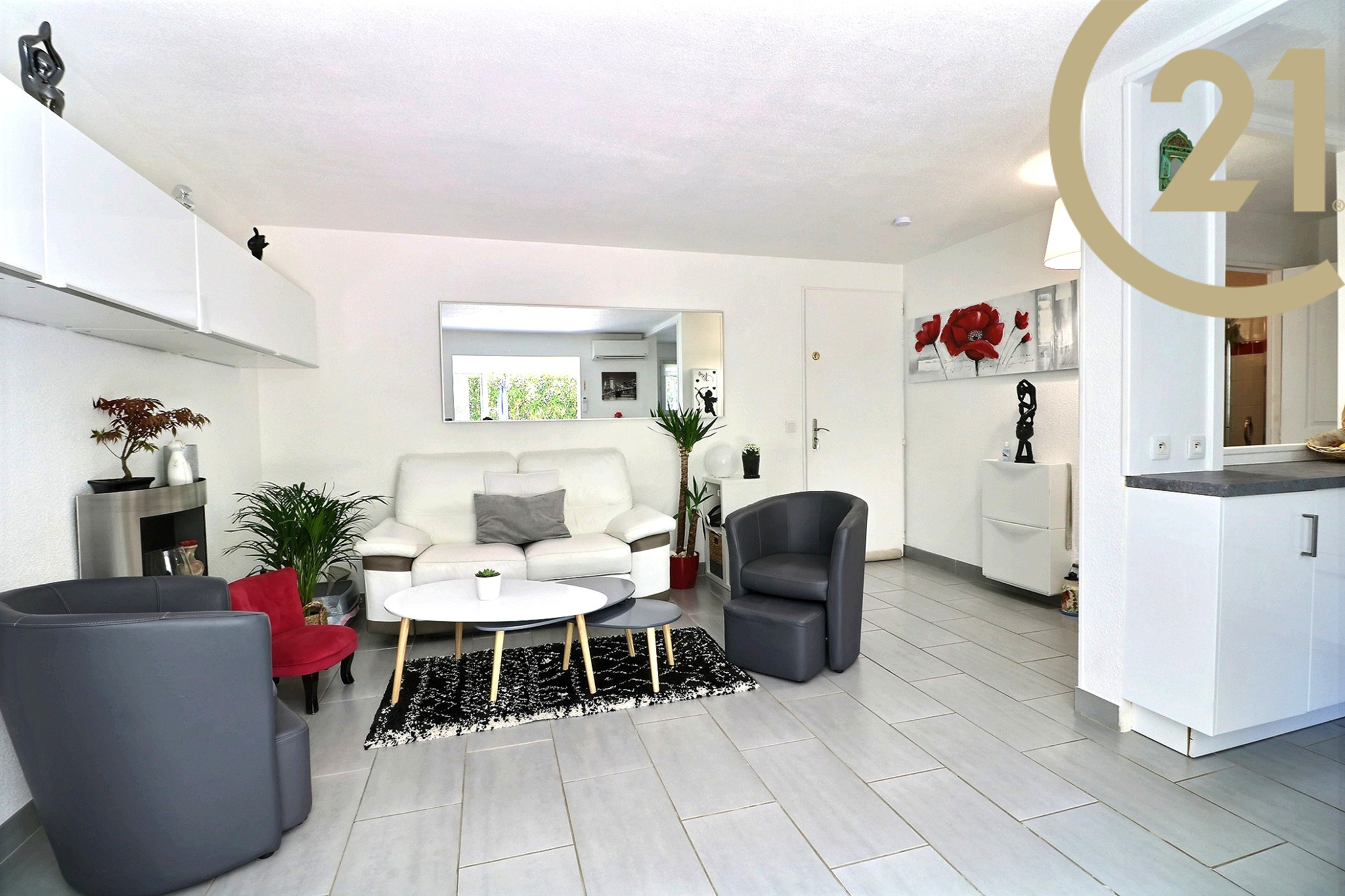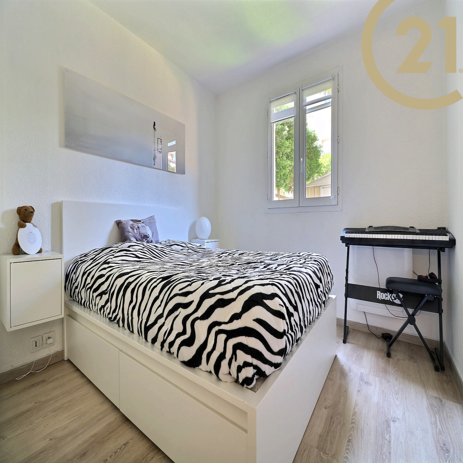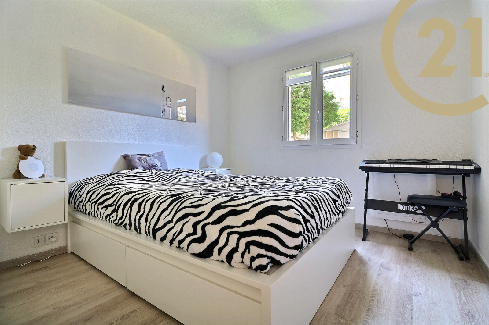 PORT-FREJUS II - Magnifique appartement 2 pièces en rez-de-jardin entièrement rénové avec goût et parfaitement entretenu. Cet appartement très soigné offre une spacieuse pièce de vie avec cuisine ouverte fonctionnelle et entièrement équipée, une belle véranda faisant office de salle à manger, une salle d'eau, une chambre avec placards et des WC séparés. Cet appartement est doté d'un jardin joliment aménagé bénéficiant d'une exposition Sud-Ouest. Prestations de qualité et contemporaines : climatisation réversible, volets roulants électriques. Une cave et un parking privatif sont vendus avec cet appartement. Visite virtuelle disponible à la demande. Copropriété de 19 lots à usage d'habitation. Charges annuelles : 682 € Renseignements au 06 26 94 01 45
