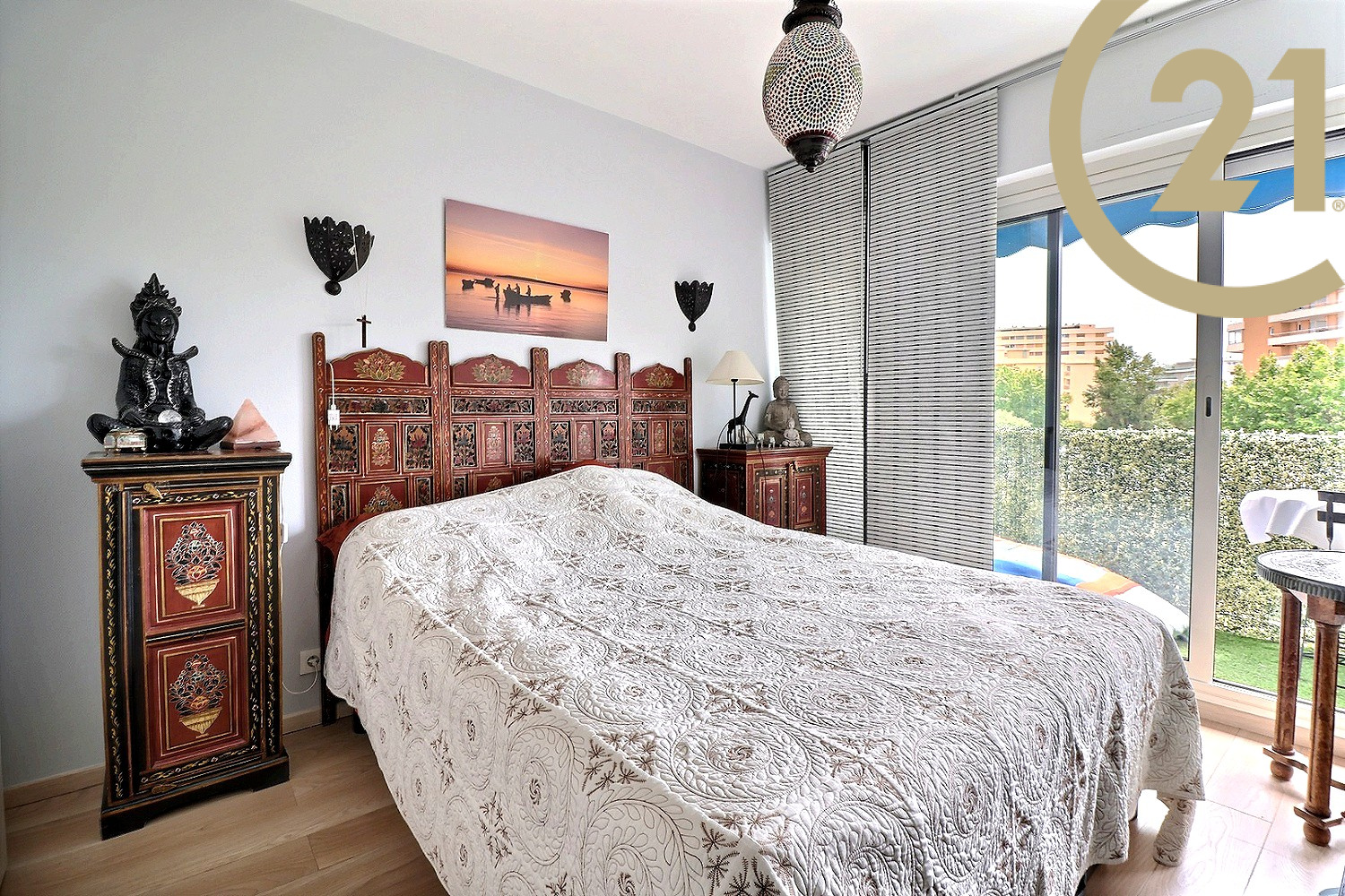 FREJUS PLAGE, dans une résidence sécurisée et arborée à 200 mètres de la plage/mer, Bel appartement 2 pièces entièrement rénové comprenant entrée avec placard, séjour spacieux et lumineux, cuisine indépendante entièrement équipée, une belle chambre avec placard et une salle d'eau. Très lumineux, belles prestations : double vitrage, volets roulants électriques. Parking libre dans la résidence et cave. A ne pas rater!