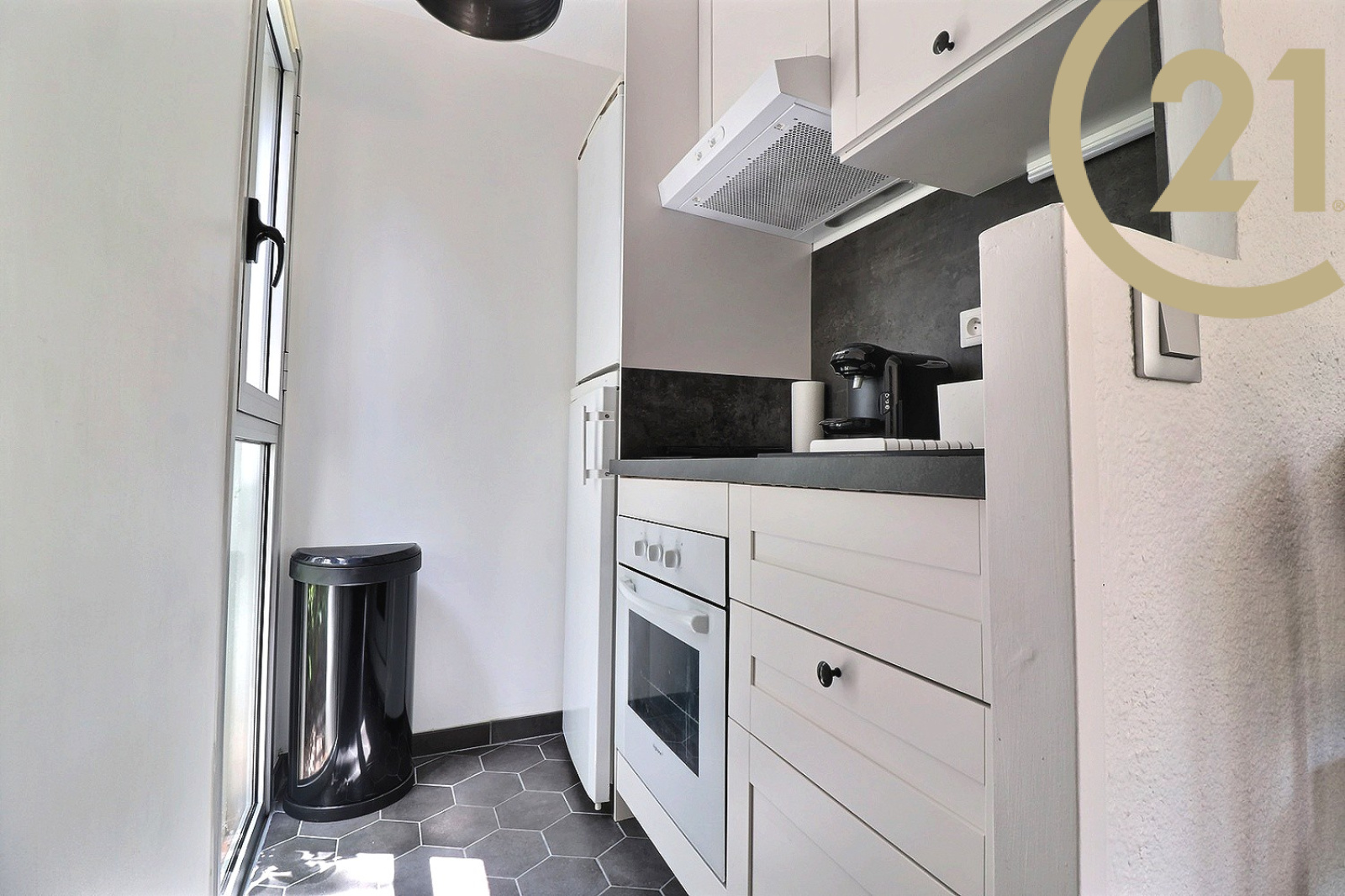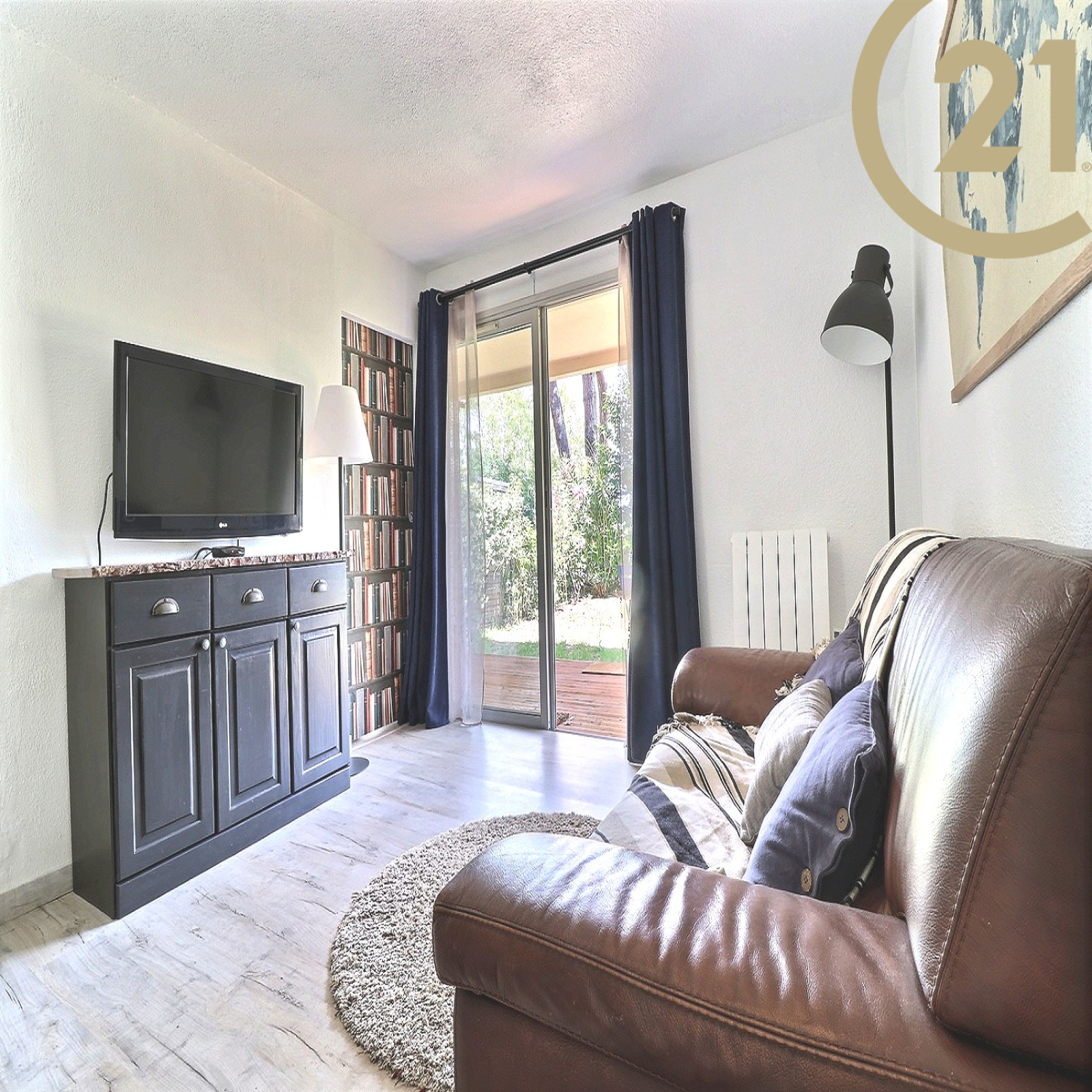 EXCLUSIVITE FREJUS TOUR DE MARE - Magnifique appartement 2 pièces entièrement rénové situé dans une résidence avec piscine offrant un cadre de verdure. Cet appartement offre une entrée , un séjour avec cuisine aménagée, une chambre et une salle d'eau avec WC. Le séjour donne sur un jardin très joliment arboré de 130 m² exposé Sud et au calme. Prestations de qualité : parquet au sol, double vitrage. Résidence gardiennée implantée au coeur d'un quartier calme et résidentiel à deux pas seulement des commerces et quelques minutes en voiture du centre-ville et des plages. Une place de parking privative est vendue avec l'appartement. Copropriété de 253 lots - Charges courantes annuelles 1046 €.