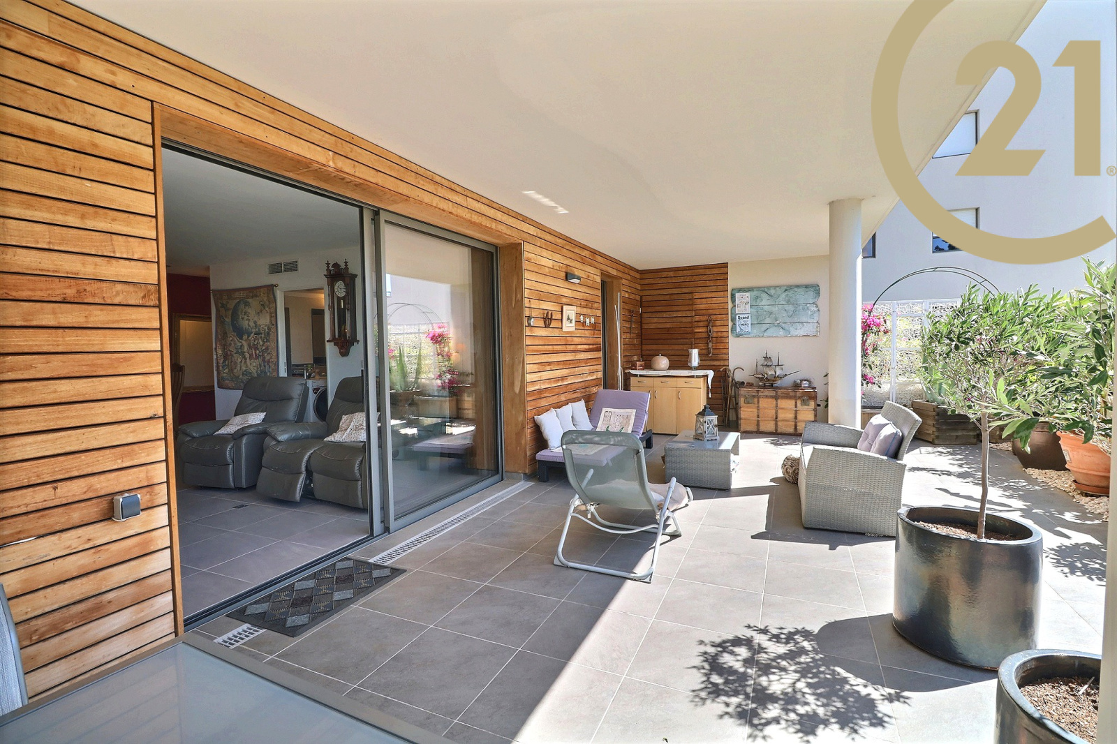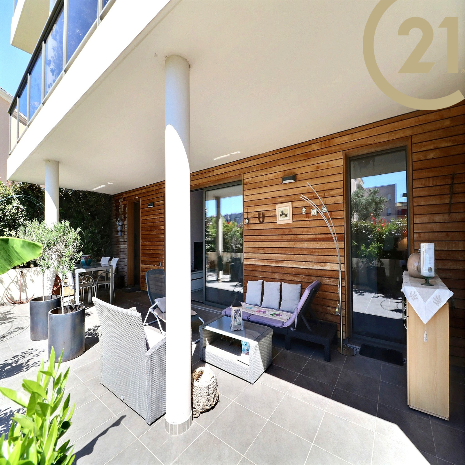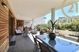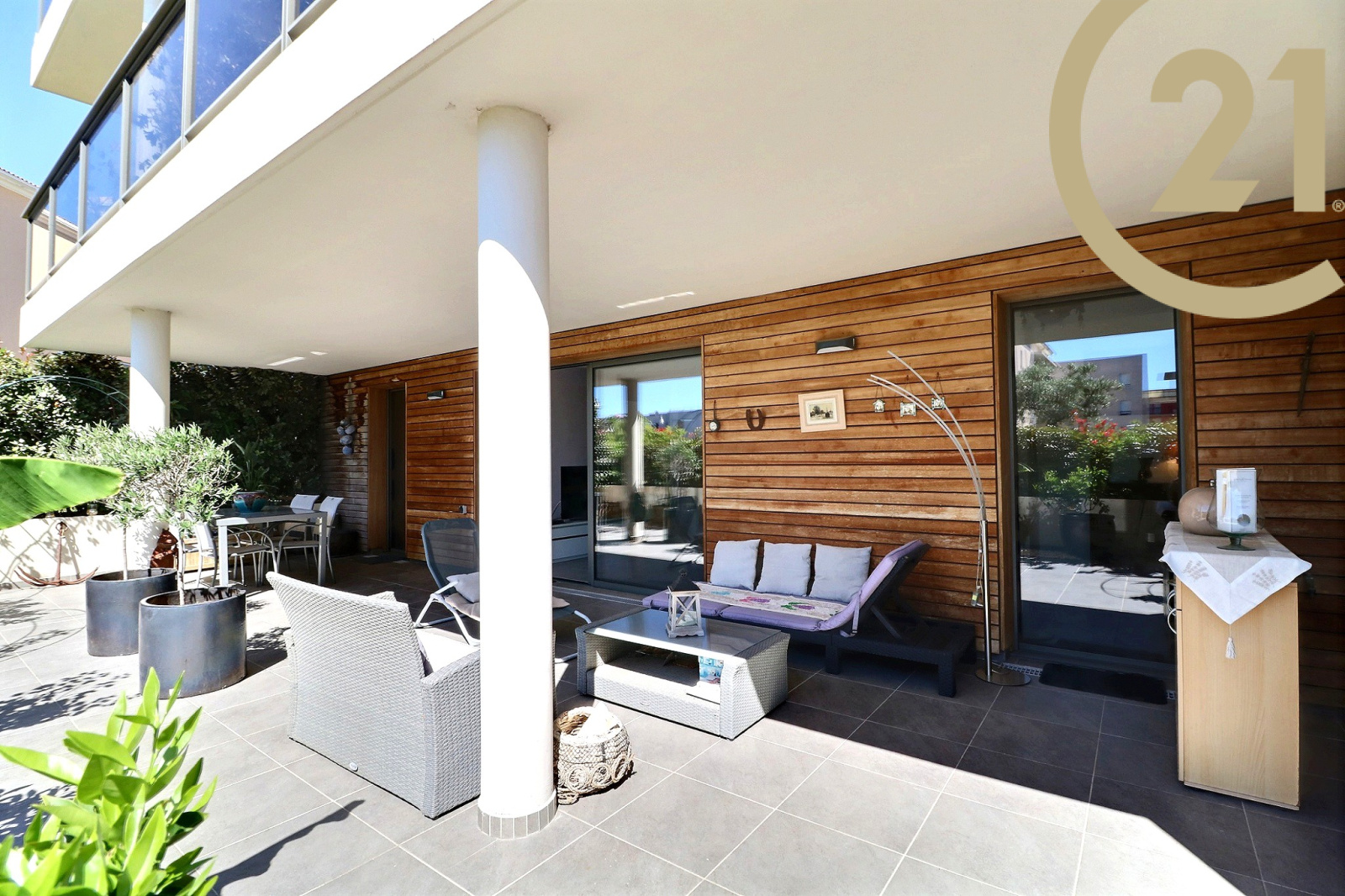 EXCLUSIVITE PORT-FREJUS II - Appartement 3/4 pièces avec superbe terrasse située dans une résidence de haut standing récente à Port-Fréjus II. Cet appartement offre un hall d'entrée avec placards et WC indépendants, une grande pièce de vie de 38 m² avec rangements, une magnifique cuisine séparée fonctionnelle et entièrement équipée avec de l'électroménager de qualité, une chambre avec dressing, une salle d'eau avec grande douche à l'italienne, et une suite parentale avec salle de bains et WC. La pièce de vie donne sur une magnifique terrasse aménagée de 53 m² exposée Sud. Un grand garage et une cave sont vendus avec cet appartement. Prestations de qualité. Possibilité de récréer un 4 pièces. Situation géographique idéale : centre-ville, tous commerces, plages, mer, base nature et port accessibles en quelques minutes à pied. Charges annuelles : 1177 € - Copropriété de x lots.