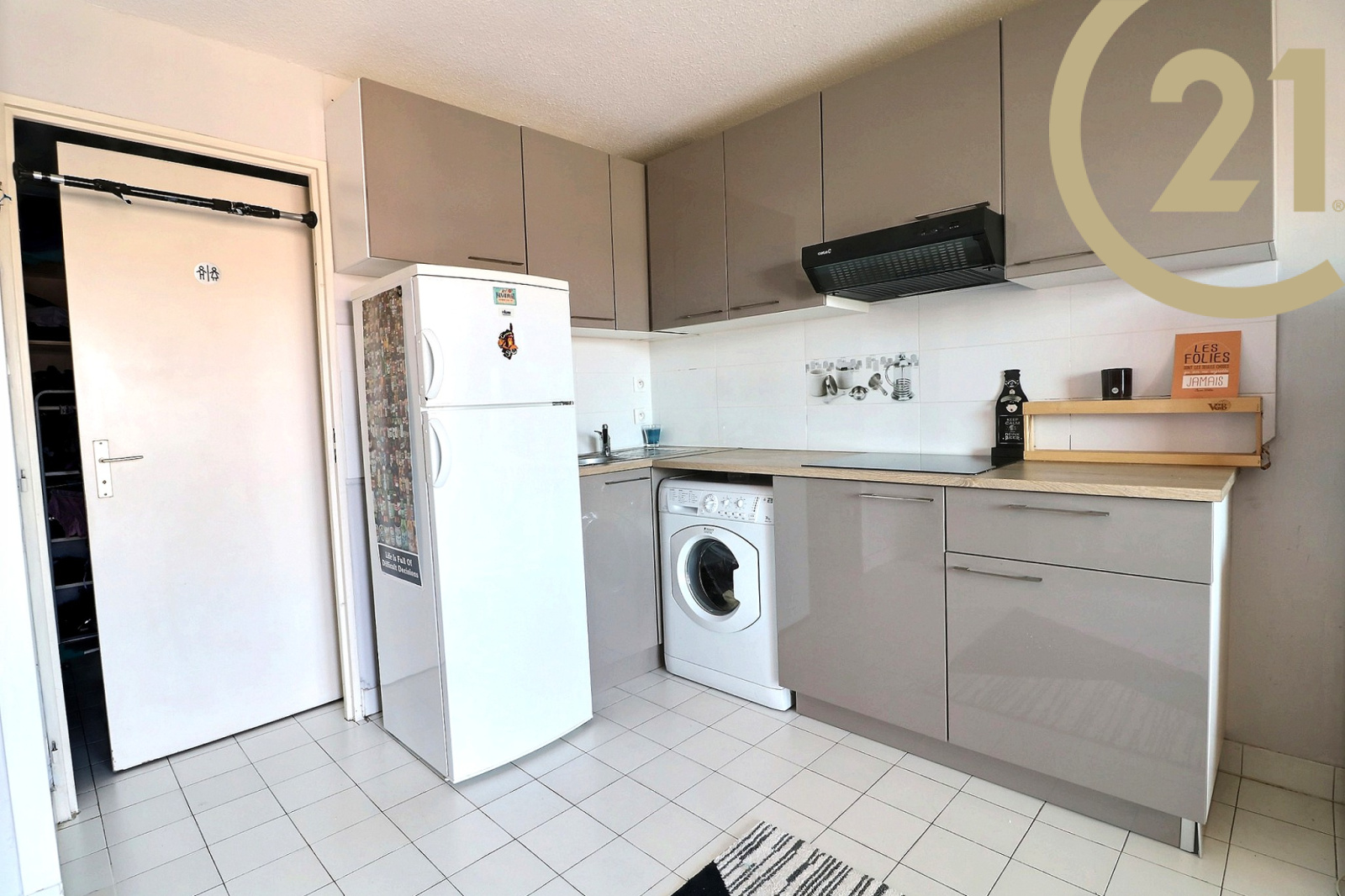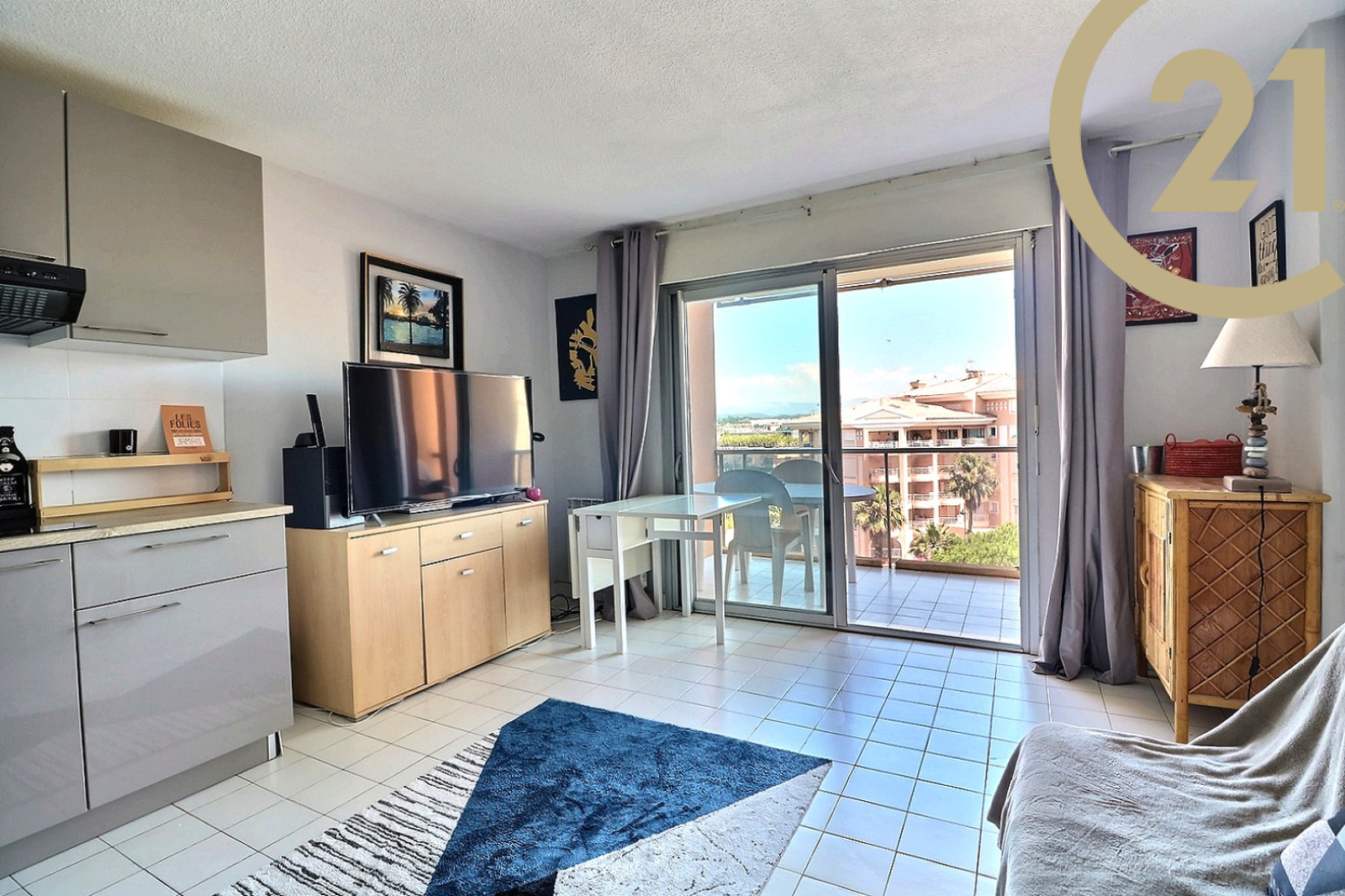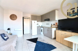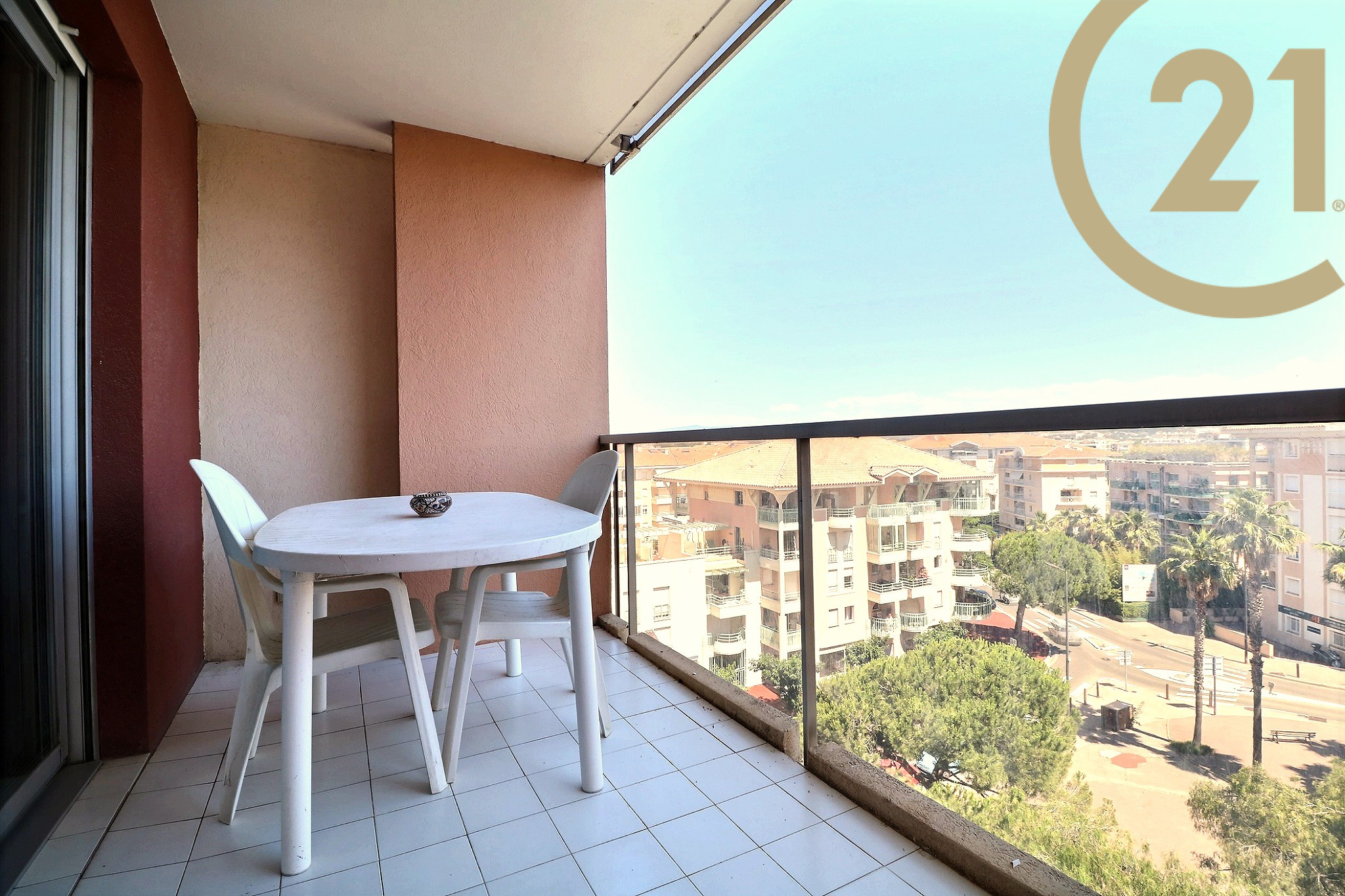 FREJUS PLAGE - Bel appartement situé en étage élevé dans une résidence avec ascenseur en front de mer, à proximité immédiate des plages de sable et du port. Cet appartement offre un hall d'entrée avec nombreux rangements, une pièce de vie dotée d'une cuisine moderne entièrement équipée, une salle d'eau et des WC séparés. La pièce de vie offre un accès sur une belle terrasse bénéficiant d'une jolie vue dégagée. Possibilité d'acquérir un garage en supplément. Vous apprécierez la situation géographique idéale de ce bien : plages, port, restaurants et tous commerces accessibles à pied. Copropriété de x lots. Charges annuelles : 614 €.