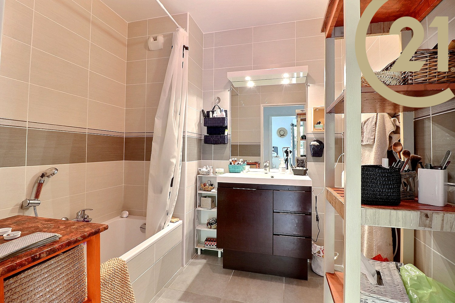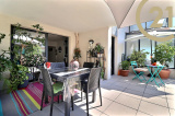 Ce bien offre un hall d'entrée avec placard aménagé, une pièce de vie lumineuse avec cuisine américaine moderne entièrement équipée, deux grandes chambres offrant un accès direct sur le jardin, une salle de bains et des toilettes séparées. Le séjour et la cuisine offrent deux accès direct à une spacieuse terrasse et à un jardin paysagé et arboré soigneusement entretenu de 141 m² bénéficiant d'une agréable exposition Sud. Un garage fermé et une place de parking en sous-sol sont vendus avec l'appartement.