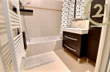 Il est composé d'une entrée, d'un séjour avec cuisine équipée donnant sur une terrasse de 20 m² exposée sud, de 2 chambres, d'une salle de bains, d'un wc et d'une buanderie.