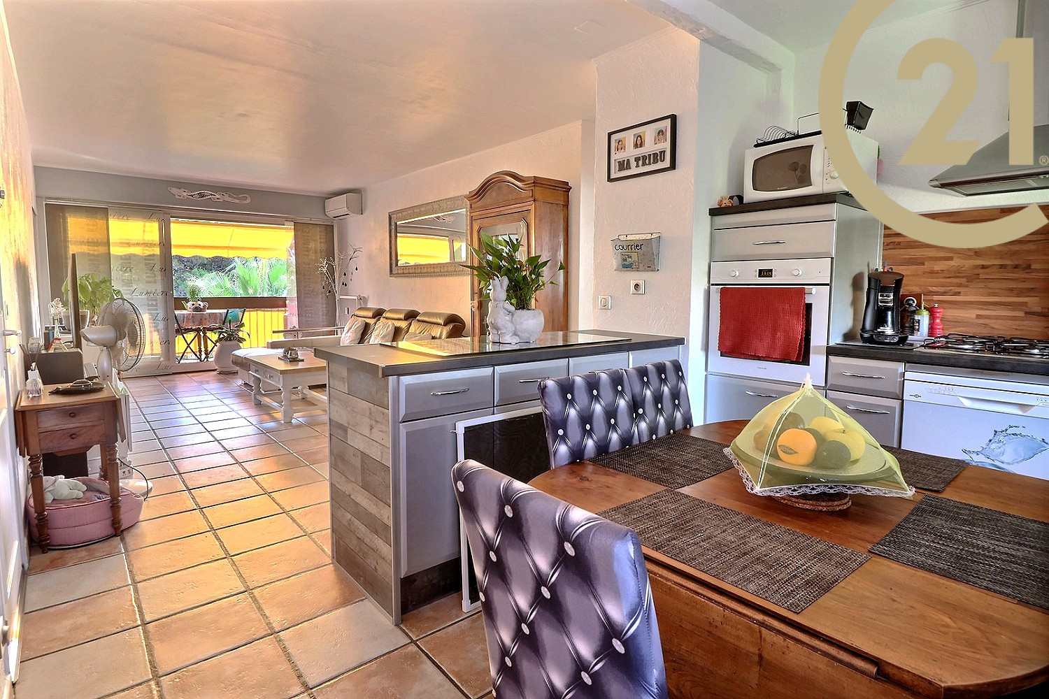 FREJUS, dans une résidence fermée et proche de toutes les commodités, appartement de 4 pièces traversant entièrement rénové composé d'un séjour avec balcon, d'une cuisine ouverte aménagée, d'un cellier, de 3 chambres, d'une salle de bains et d'un wc. Cave. Tous les parkings sont libres dans la résidence.
