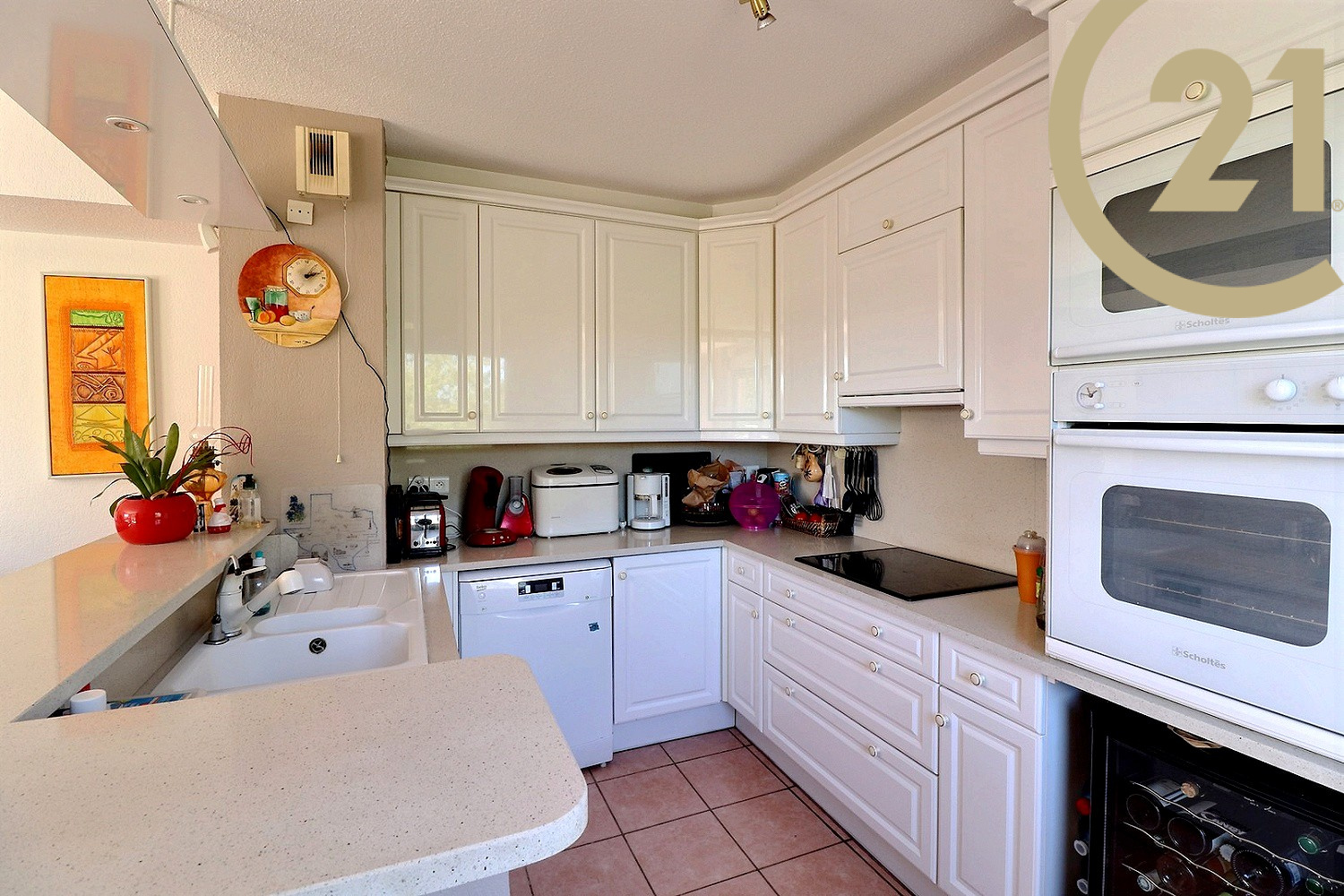 FRÉJUS PLAGE, dans résidence fermée avec piscine à 10 minutes à pied de la mer, 4 pièces en étage élevé avec ascenseur composé d'une entrée, d'une pièce à vivre avec cuisine équipée donnant sur une belle terrasse exposée Sud, de 3 chambres, d'une salle de bains, d'une salle d'eau avec WC et d'un WC indépendant. Un parking extérieur et un garage complètent ce bien.
