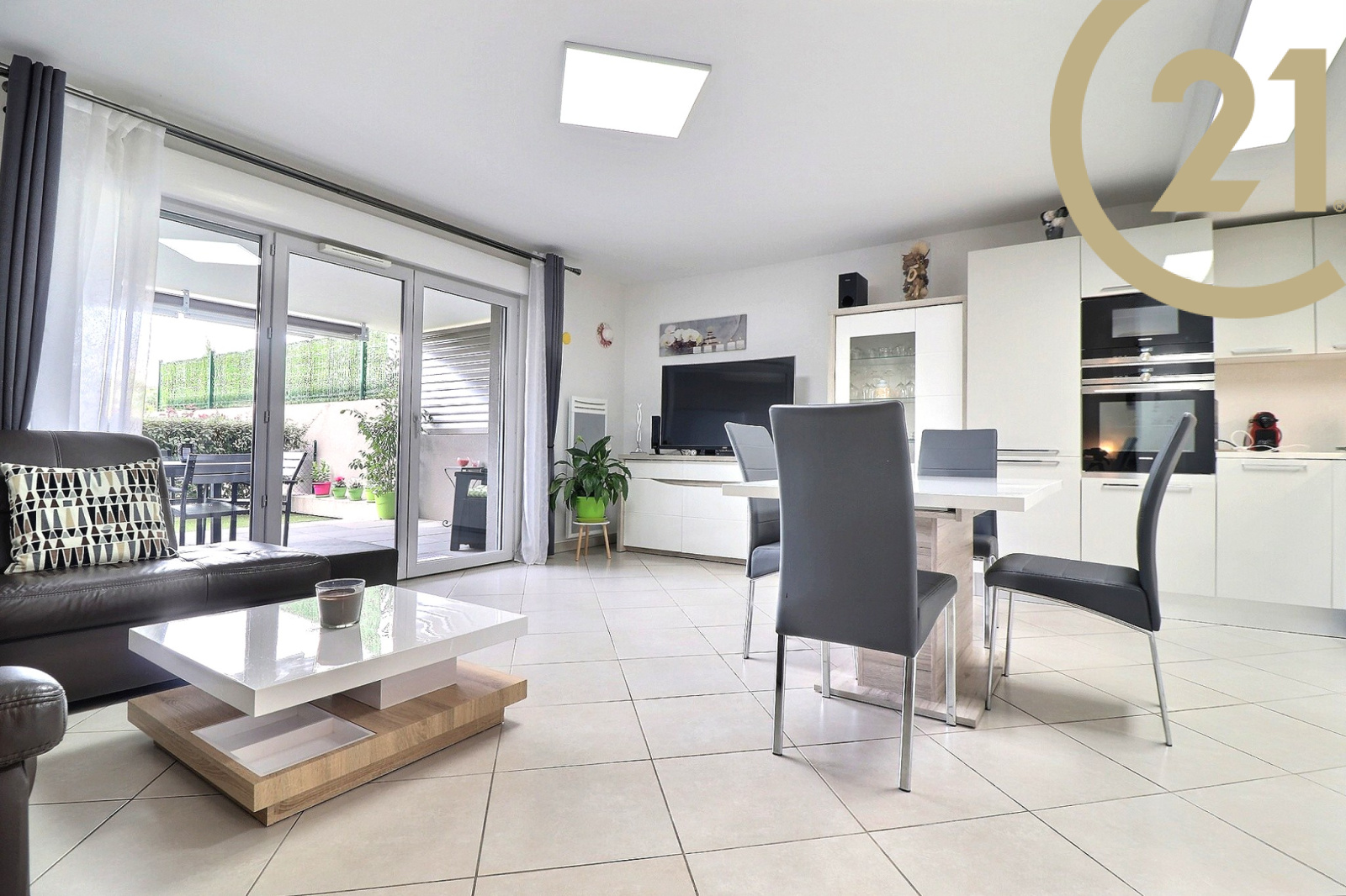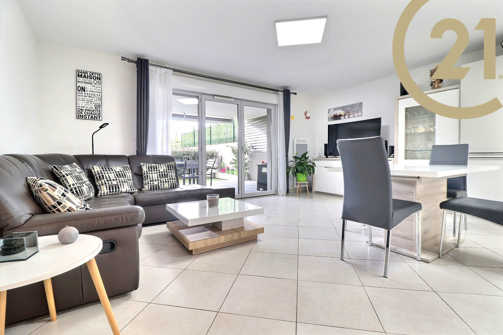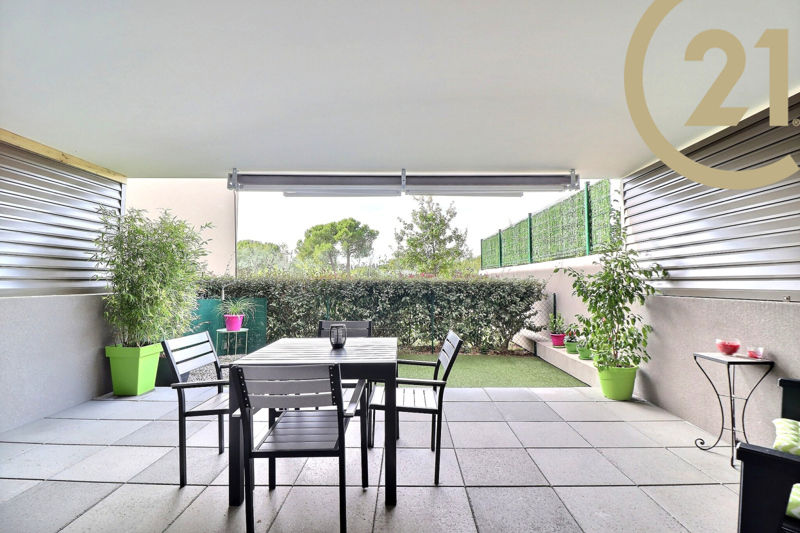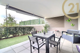 EXCLUSIVITE FREJUS - VISITE VIRTUELLE DISPONIBLE - Superbe appartement 3 pièces de 69.90 m² situé dans une résidence récente avec piscine. Cet appartement traversant parfaitement entretenu offre un hall d'entrée avec placard, un séjour avec cuisine ouverte haut de gamme dotée de nombreux rangements et donnant sur une large terrasse de 19 m² et un joli jardinet, et un coin nuit composé de deux chambres offrant toutes deux un accès sur un second jardin privatif, une salle d'eau avec grande douche à l'italienne et WC, et des toilettes séparées avec espace buanderie. La pièce principale exposée Sud offre une jolie vue dégagée sur la verdure. Un grand garage double est vendu avec cet appartement. Vous apprécierez la double exposition de cet appartement, son aspect très soigné, ainsi que sa grande terrasse couverte et ses deux espaces verts. La résidence est dotée d'un joli parc paysager et d'une belle piscine. Accès autoroute, établissements scolaires, et centre-ville accessibles en quelques minutes. Charges annuelles : 1475 € Copropriéte de 77 lots à usage d'habitation.