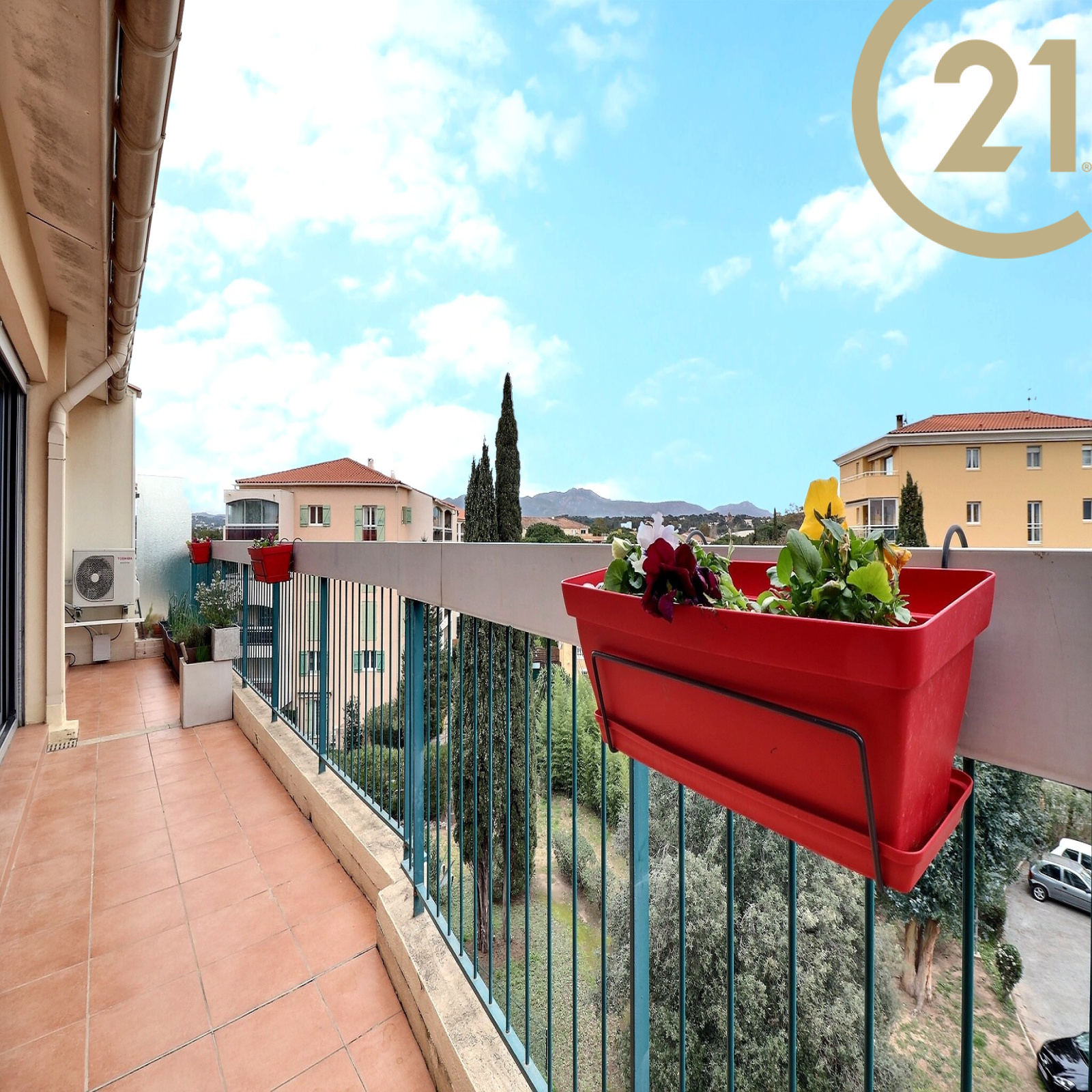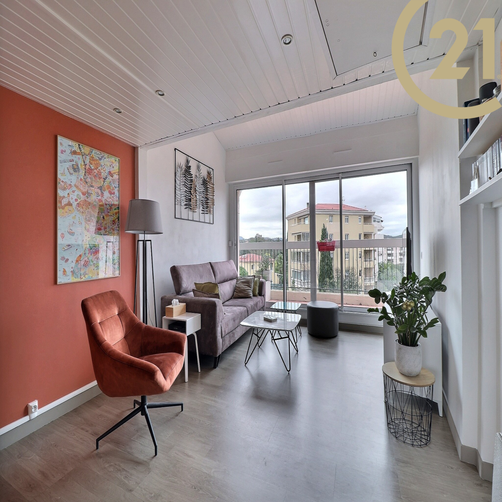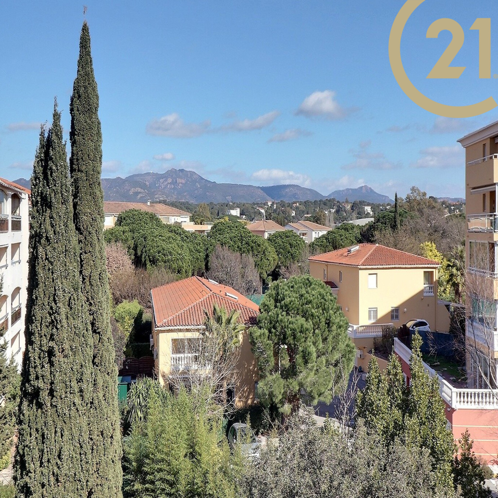 EXCLUSIVITE - FREJUS PROCHE CENTRE-VILLE SAINT-RAPHAEL - Superbe appartement 3 pièces situé au dernier étage d'une résidence sécurisée avec ascenseur à proximité du centre-ville de Saint-Raphaël. Cet appartement entièrement rénové avec goût et idéalement agencé offre un hall d'entrée, un séjour avec mezzanine accueillant un lit double, une cuisine indépendante moderne entièrement équipée avec grand îlot et un cellier/espace buanderie, un dégagement avec placard, deux chambres avec rangements, une salle d'eau dotée d'une grande douche et des WC séparés. Le séjour et les deux chambres bénéficient d'un accès direct sur une grande terrasse jouissant d'une vue dégagée sur le massif de l'Estérel. La cuisine offre une vue dégagée sur les vignes et le rocher de Roquebrune-sur-Argens. Appartement clés en mains. Un garage est vendu avec cet appartement. Centre-ville, plages et commerces accessibles rapidement. Copropriété de 74 lots à usage d'habitation. Charges annuelles : 1799 €