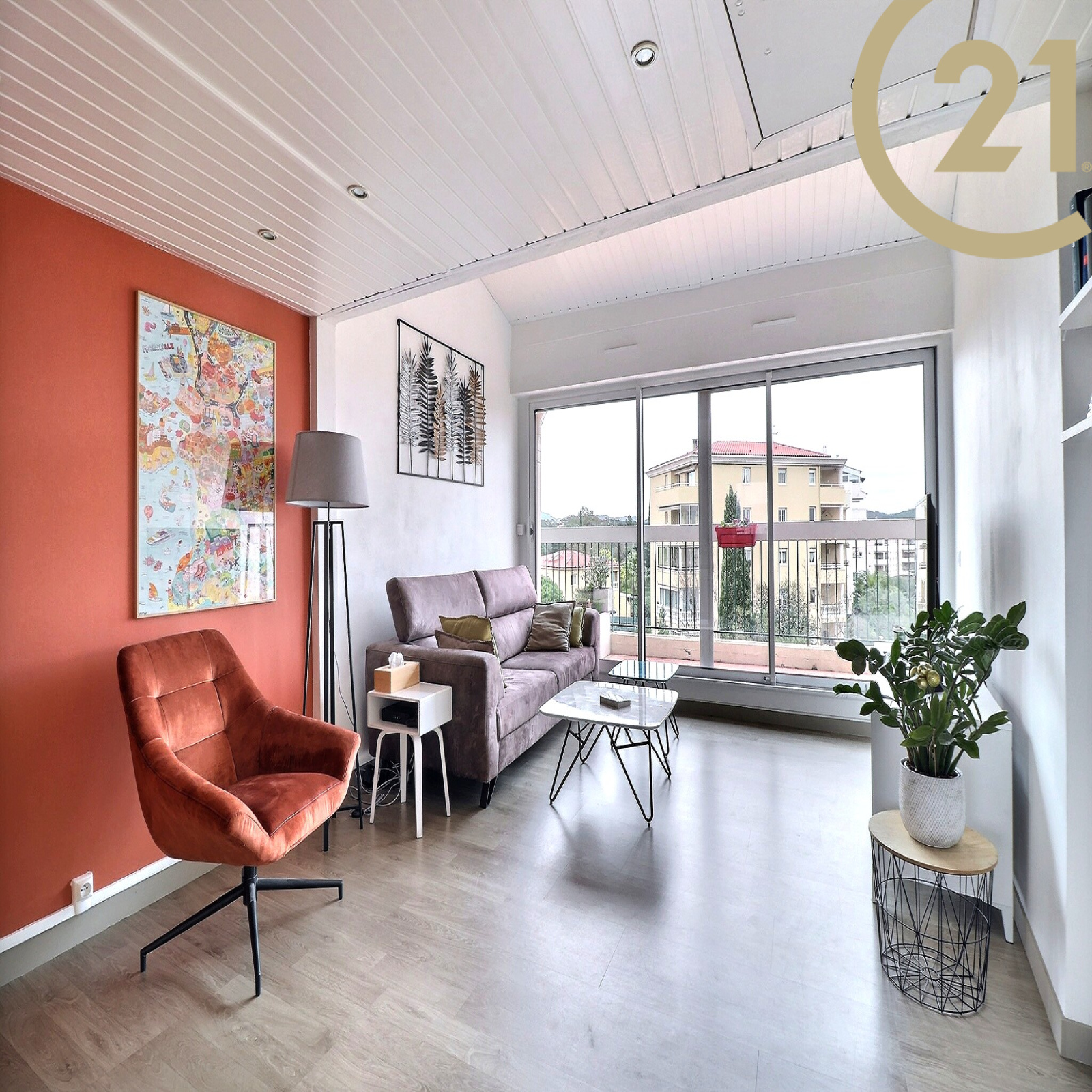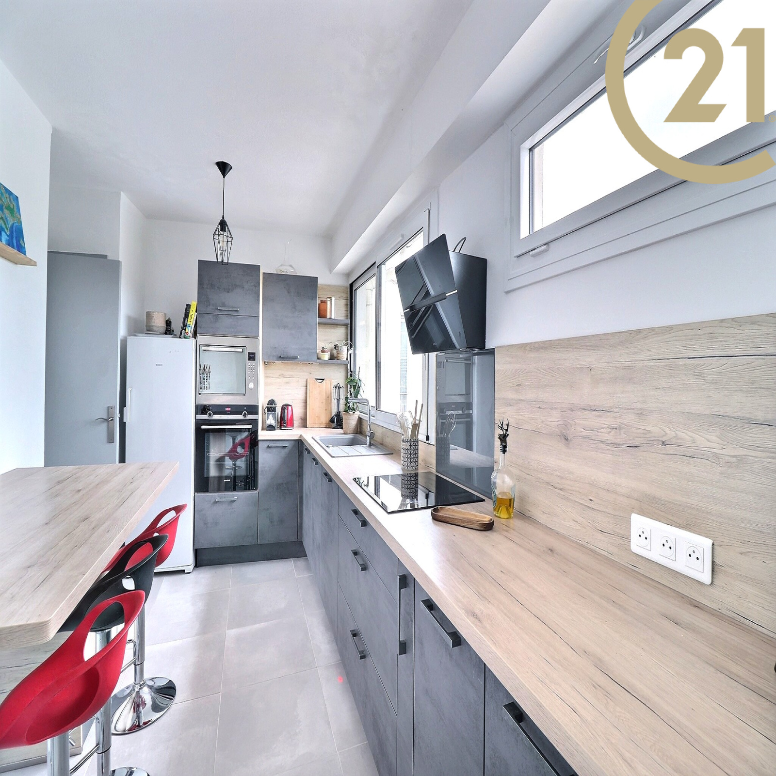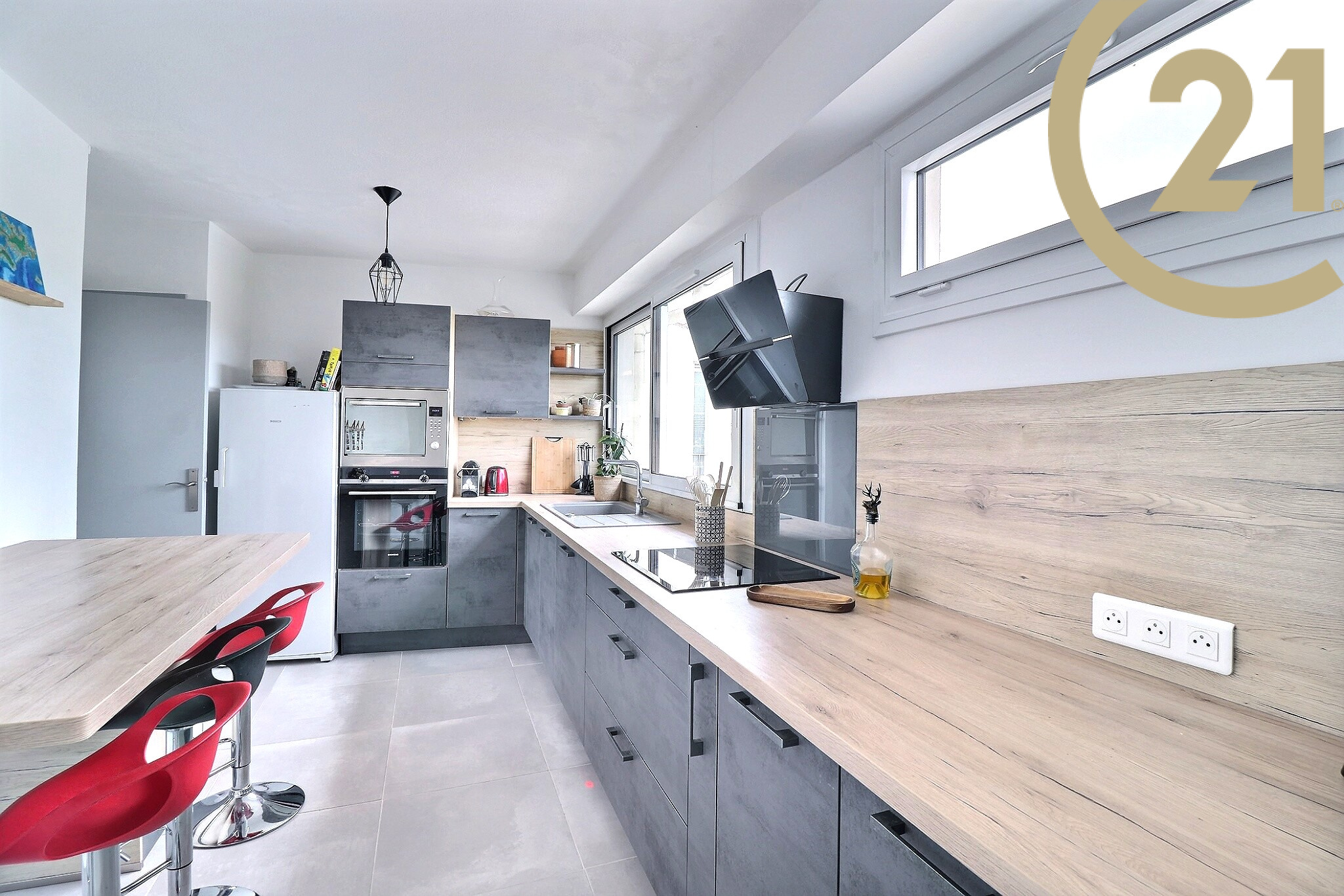 EXCLUSIVITE - FREJUS PROCHE CENTRE-VILLE SAINT-RAPHAEL - Superbe appartement 3 pièces situé au dernier étage d'une résidence sécurisée avec ascenseur à proximité du centre-ville de Saint-Raphaël. Cet appartement entièrement rénové avec goût et idéalement agencé offre un hall d'entrée, un séjour avec mezzanine accueillant un lit double, une cuisine indépendante moderne entièrement équipée avec grand îlot et un cellier/espace buanderie, un dégagement avec placard, deux chambres avec rangements, une salle d'eau dotée d'une grande douche et des WC séparés. Le séjour et les deux chambres bénéficient d'un accès direct sur une grande terrasse jouissant d'une vue dégagée sur le massif de l'Estérel. La cuisine offre une vue dégagée sur les vignes et le rocher de Roquebrune-sur-Argens. Appartement clés en mains. Un garage est vendu avec cet appartement. Centre-ville, plages et commerces accessibles rapidement. Copropriété de 74 lots à usage d'habitation. Charges annuelles : 1799 €
