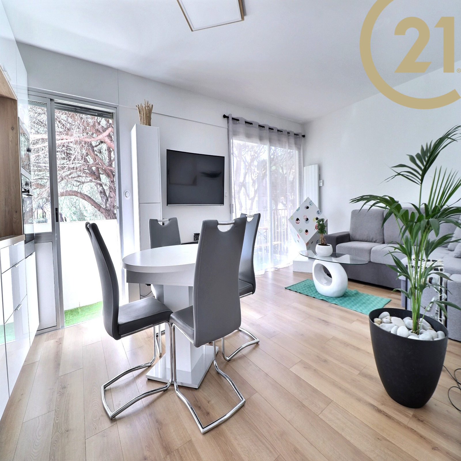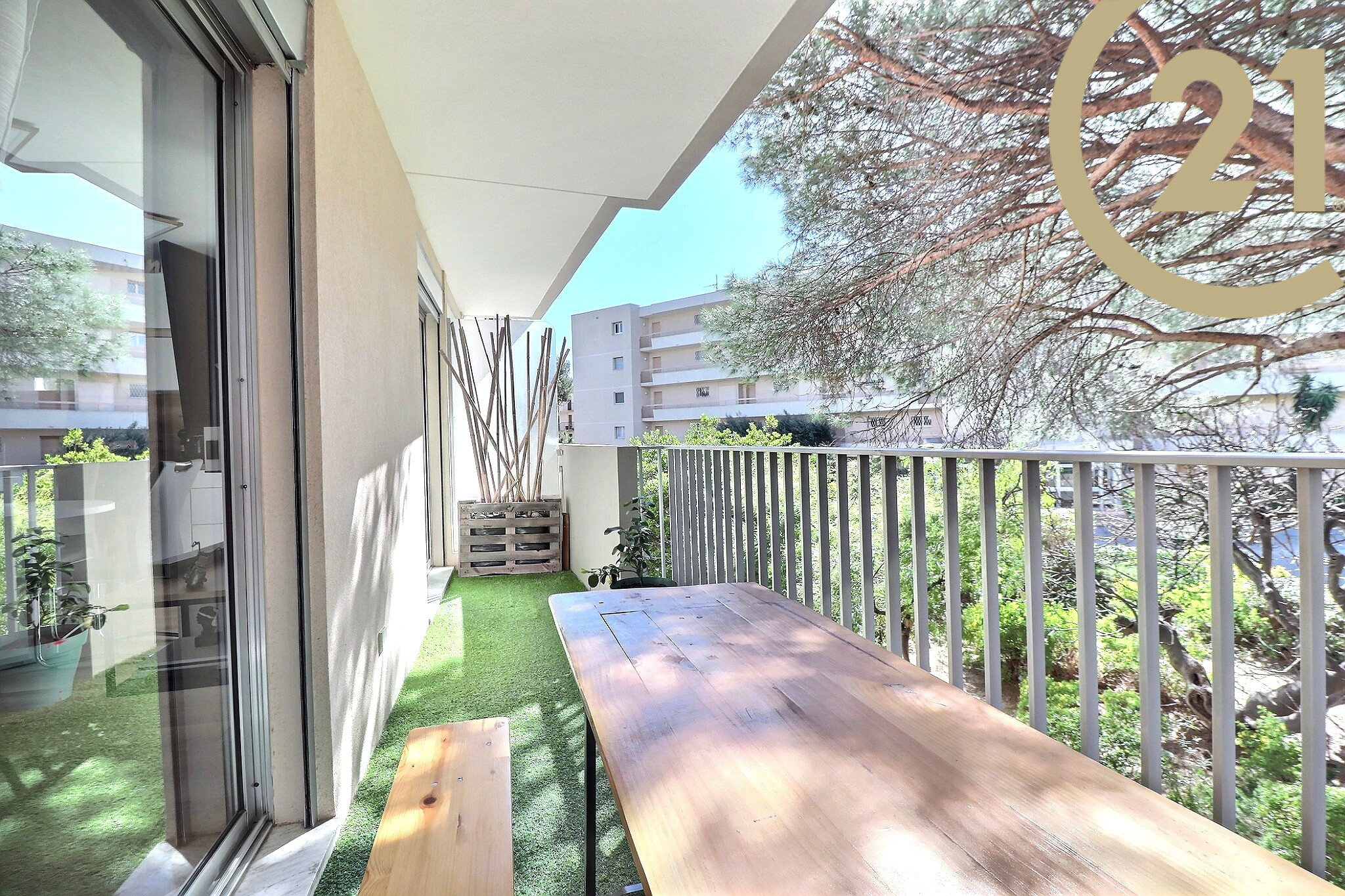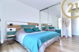 FREJUS PLAGE-Superbe appartement 3 pièces entièrement rénové avec goût situé dans une des résidences les plus prisées de Fréjus plage. Cet appartement bénéficie d'un environnement très calme à 250 mètres de la mer. Il offre une entrée avec placard, un séjour avec cuisine américaine entièrement équipée, deux chambres dont une avec terrasse privative, une salle d'eau dotée d'une grande douche, une buanderie et des WC séparés. Une place de parking privative est vendue avec l'appartement. Vous apprécierez le calme et la vue sur la pinède. Plages, tous commerces et port accessibles en quelques minutes à pied. Copropriété de x lots. Charges prévisionnelles annuelles : 1159 €