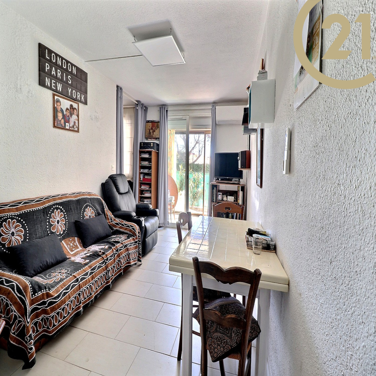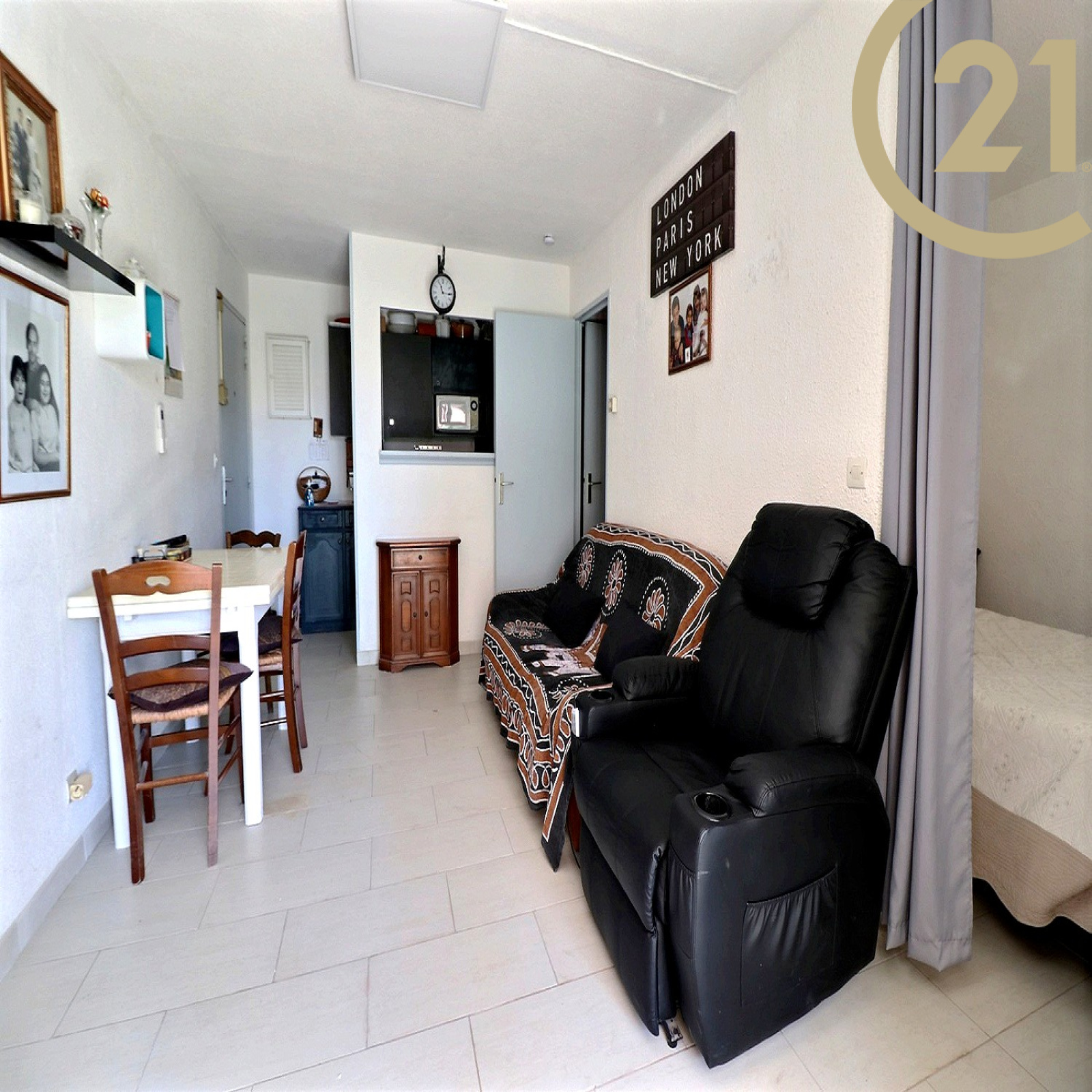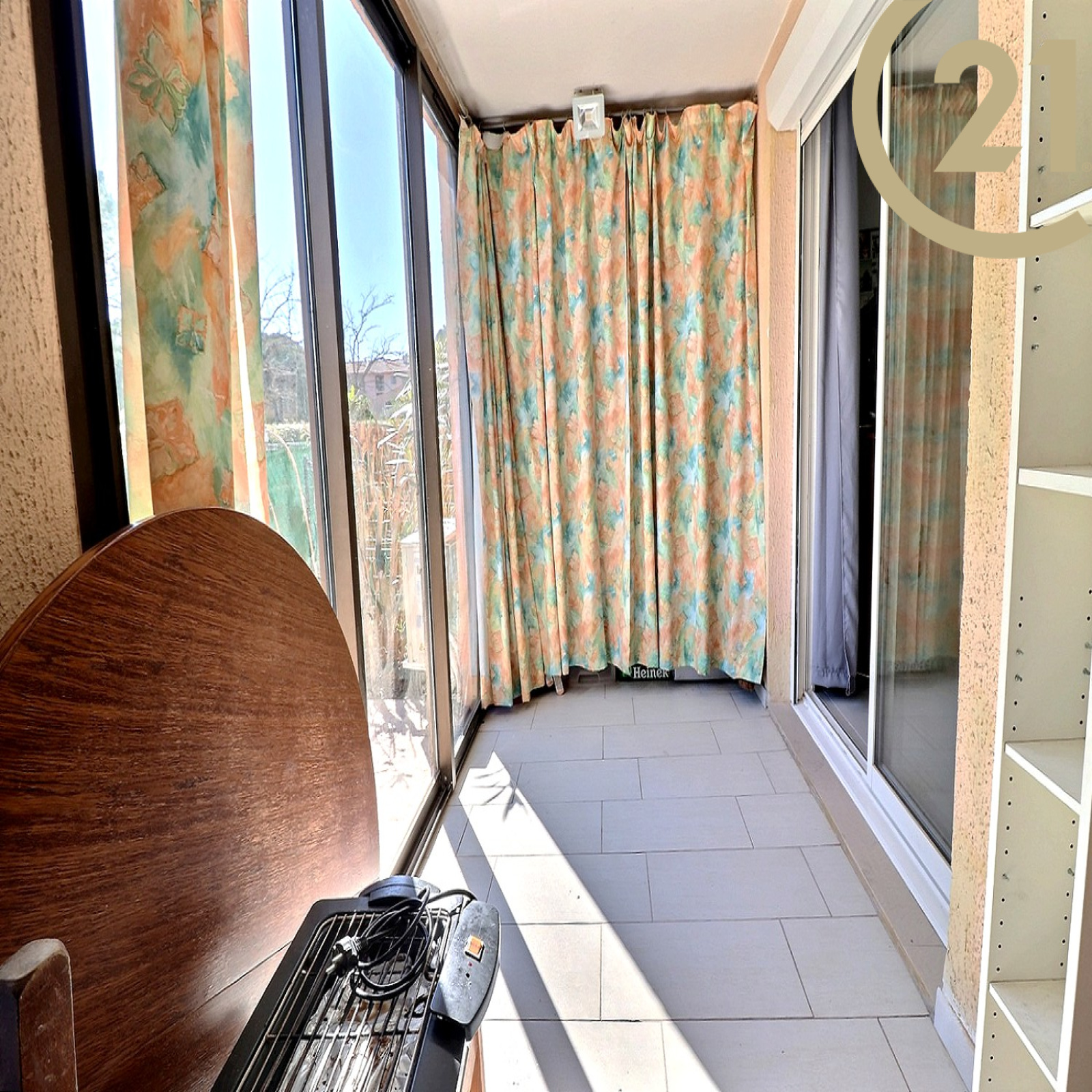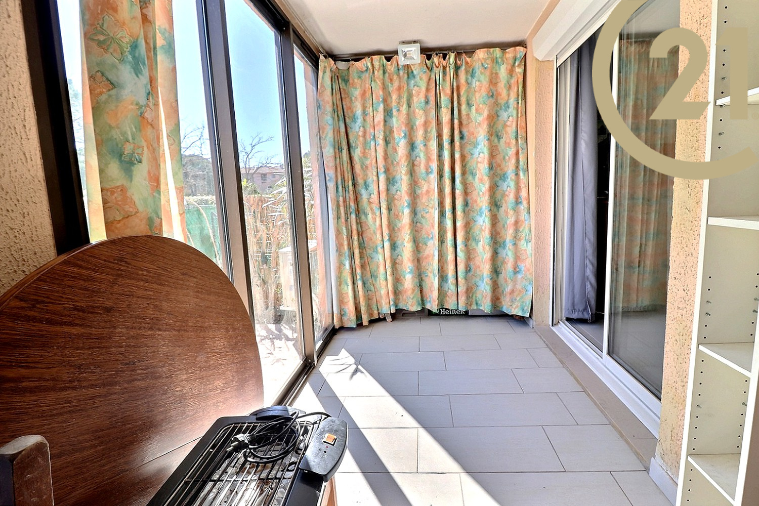 EXCLUSIVITE FREJUS, dans une résidence fermée avec piscine et tennis, proche du centre-ville, 2 pièces cabine composé d'une pièce à vivre avec coin cuisine donnant sur une terrasse fermée, d'une chambre, d'une salle d'eau, d'un wc et d'une pièce pouvant recevoir des lits superposés.