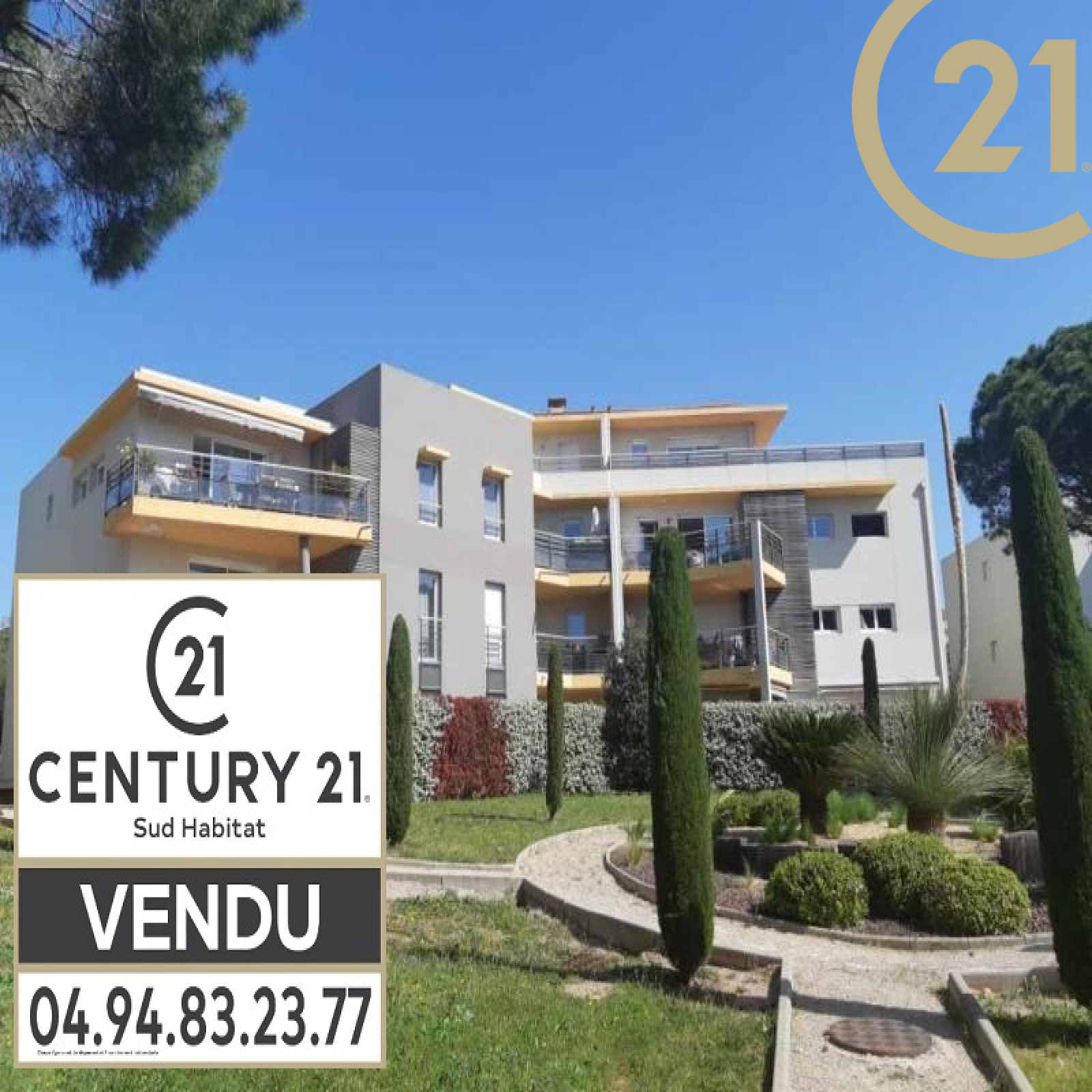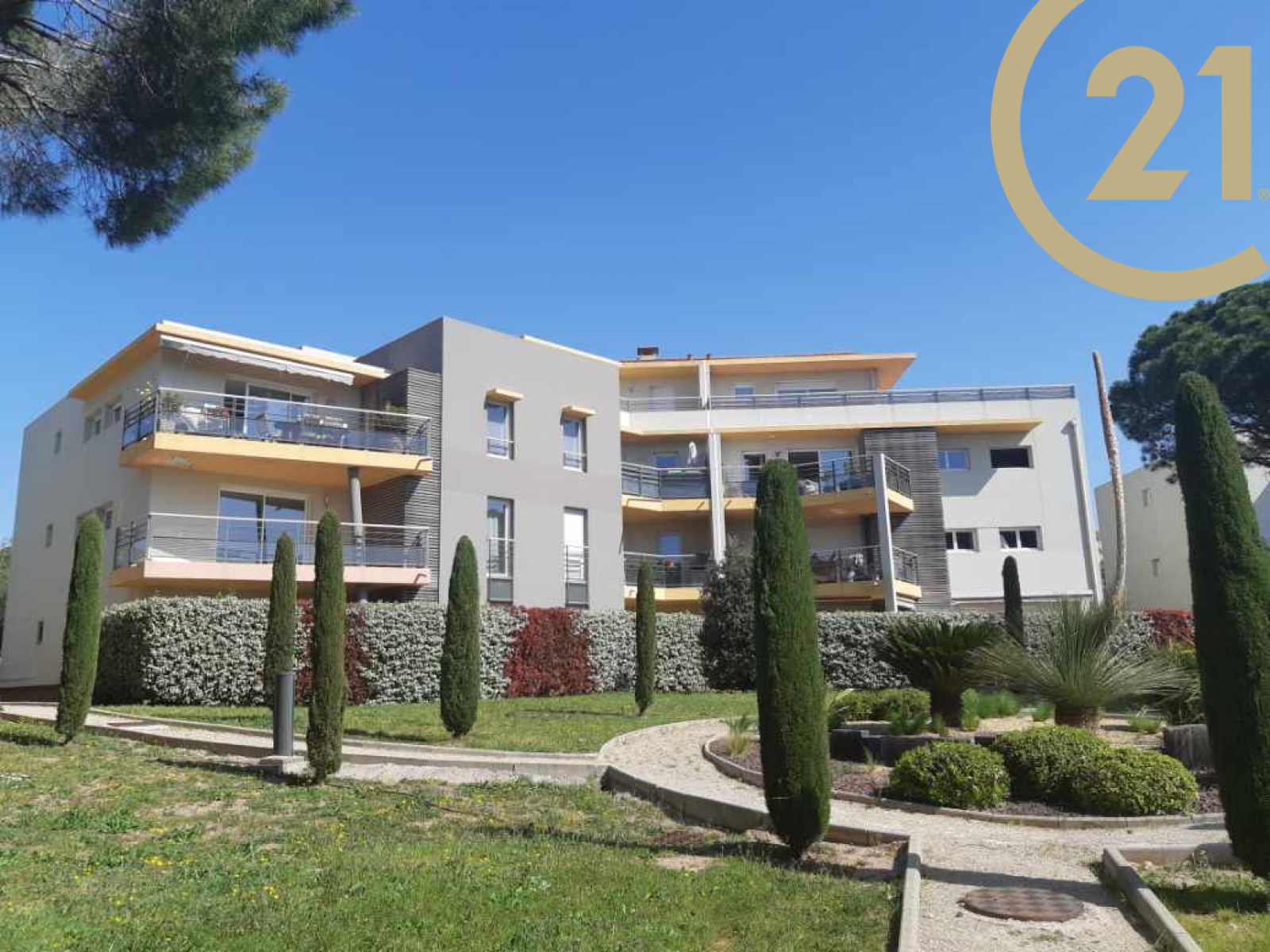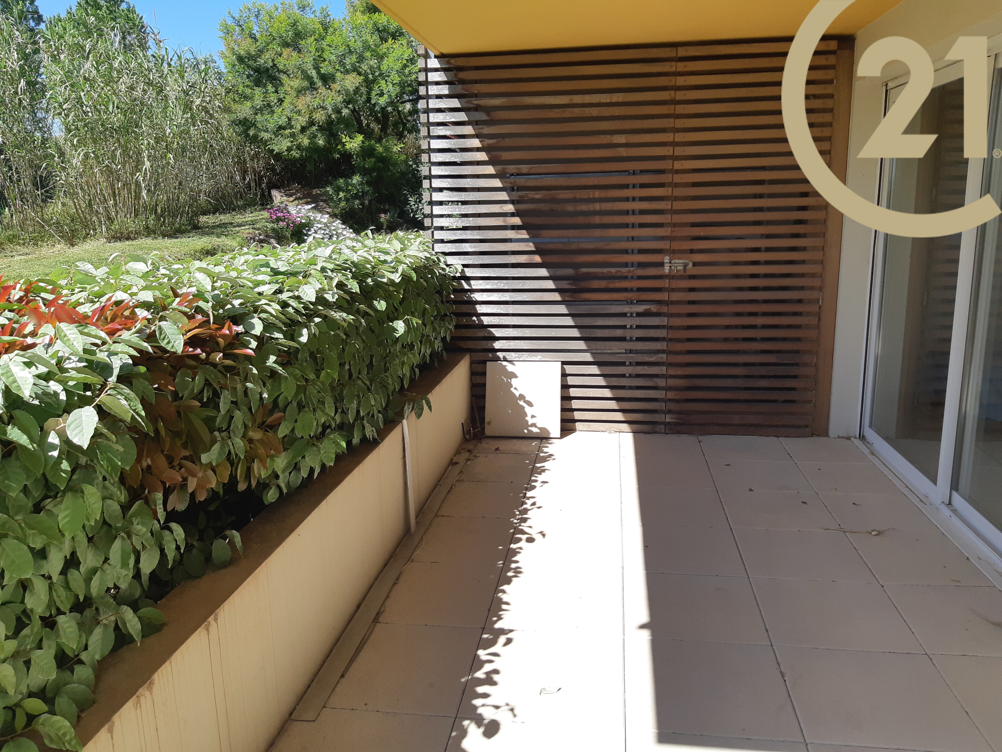 EXCLUSIVITE FREJUS, dans une résidence récente, sécurisée et arborée, 2 pièces en rez-de-chaussée avec terrasse de 21 m² exposée sud et sans vis à vis. Il se compose d'un séjour avec coin cuisine, d'une chambre, d'une salle de bains et d'un wc indépendant.