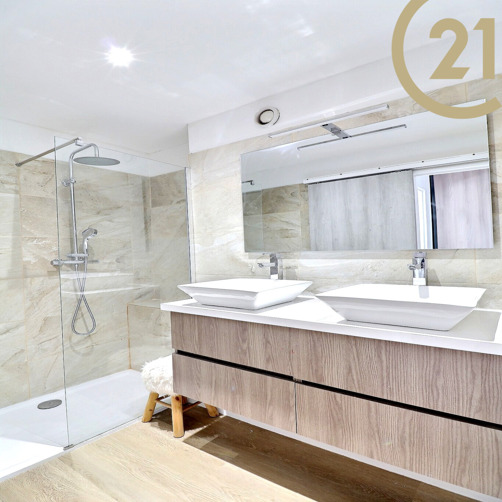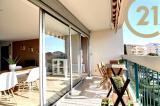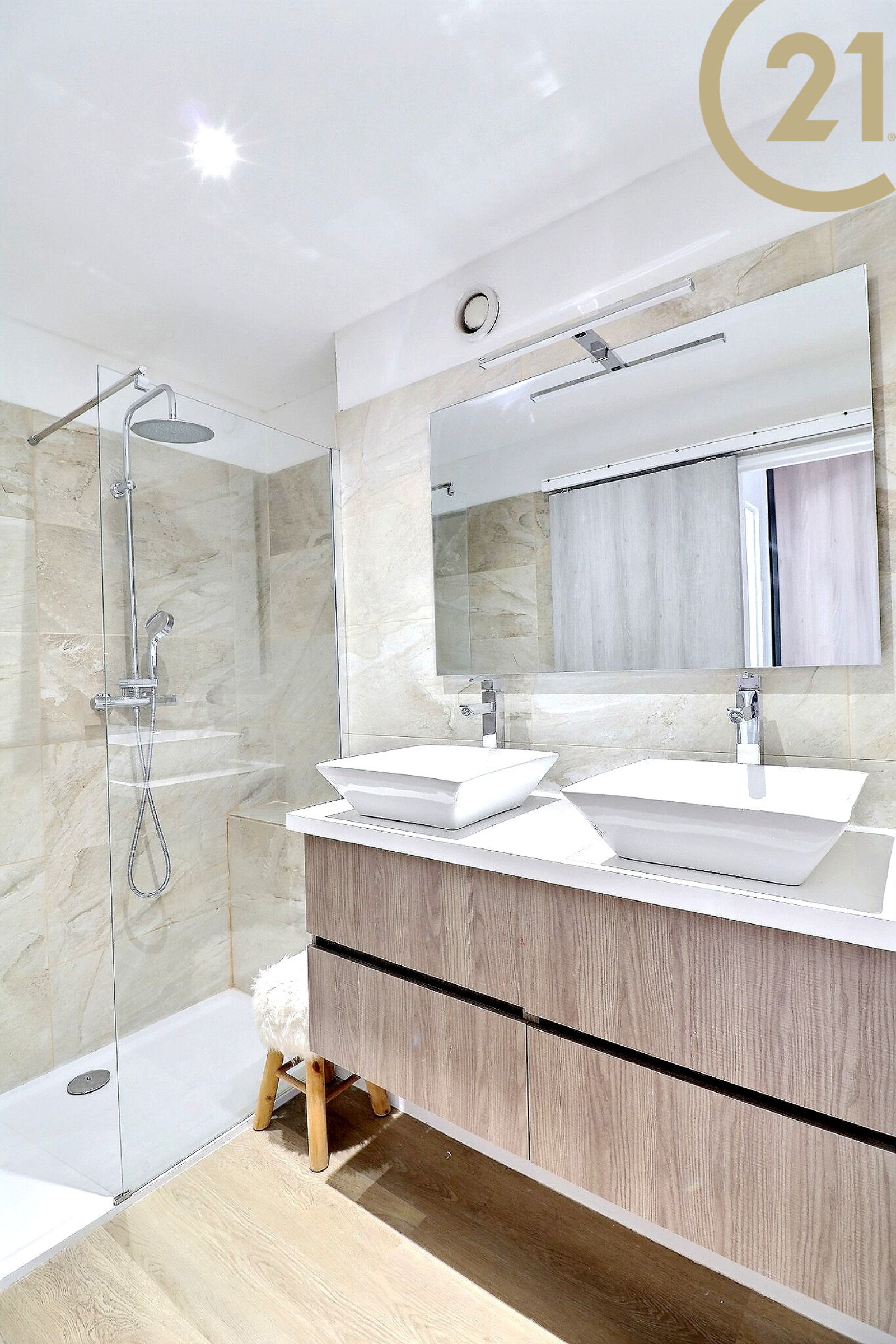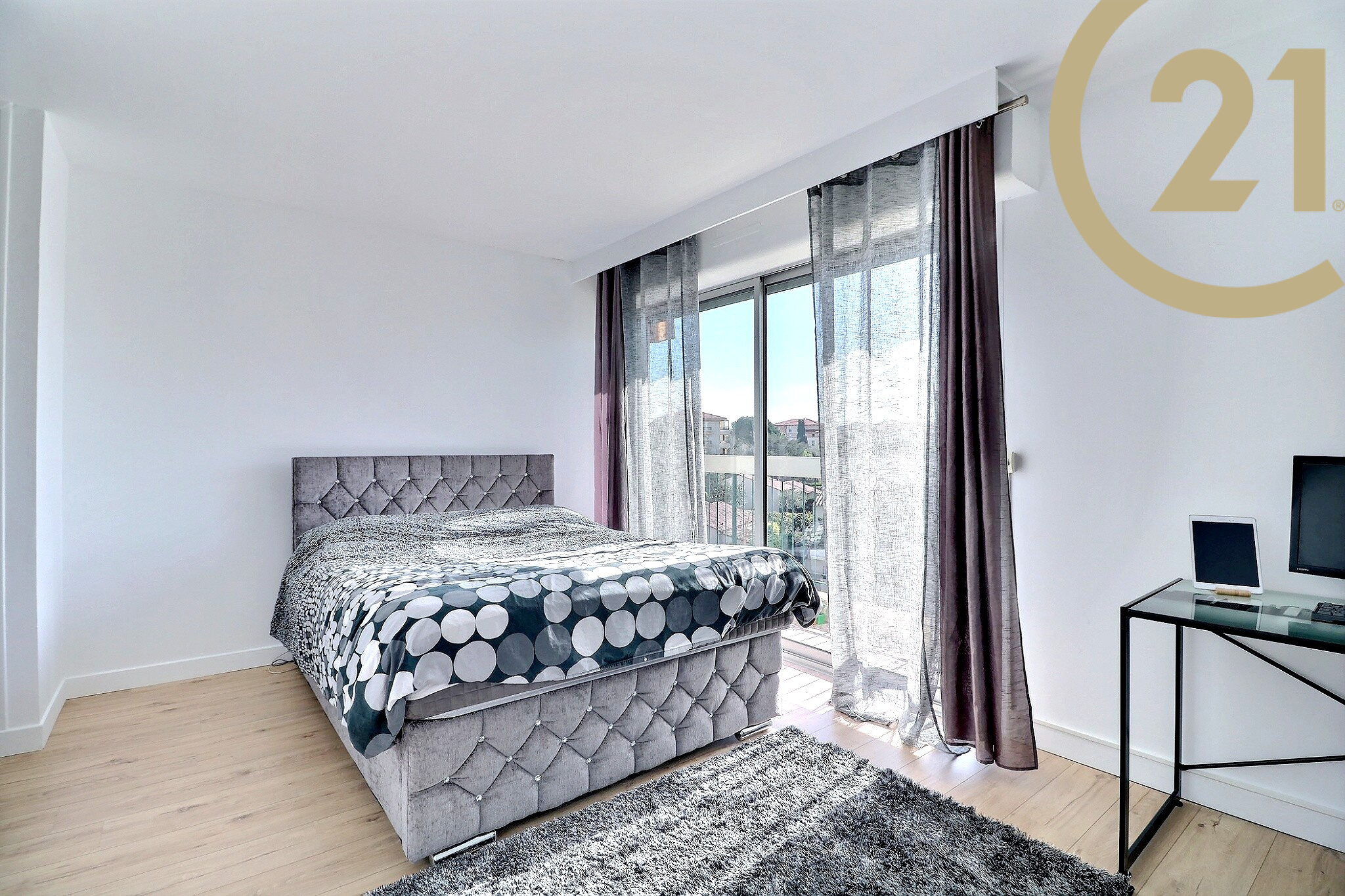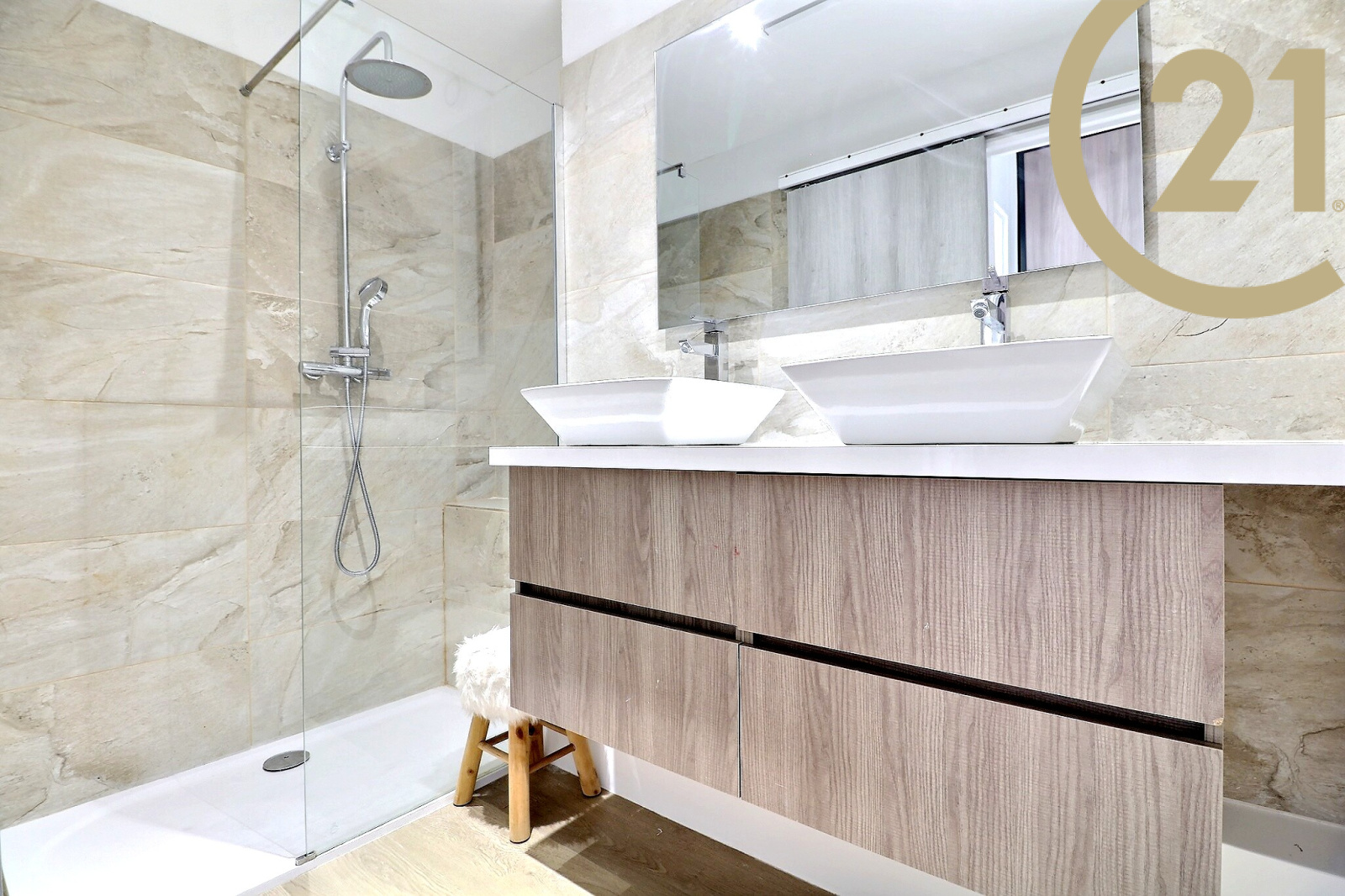 EXCLUSIVITE - FREJUS PROCHE CENTRE-VILLE SAINT-RAPHAEL - Superbe appartement 4 pièces situé en étage élevé dans une résidence sécurisée avec ascenseur à proximité du centre-ville de Saint-Raphaël. Cet appartement rénové avec goût et traversant offre un séjour avec cuisine ouverte entièrement équipée donnant sur une terrasse, un cellier/espace buanderie, un dégagement avec placard, une chambre de plus de 16 m² avec placard complétée par un espace dressing, deux chambres de 13 m² et 9,40 m² donnant sur une seconde terrasse, une belle salle d'eau avec double vasque et grande douche et des WC séparés. Un parking privatif et une cave sont vendus avec cet appartement. Vous apprécierez l'aspect clés en mains de ce bien ainsi que ses volumes et sa luminosité. Centre-ville, plages et commerces accessibles rapidement. Visite virtuelle disponible sur demande. Copropriété de 74 lots à usage d'habitation. Charges annuelles : 2078 €