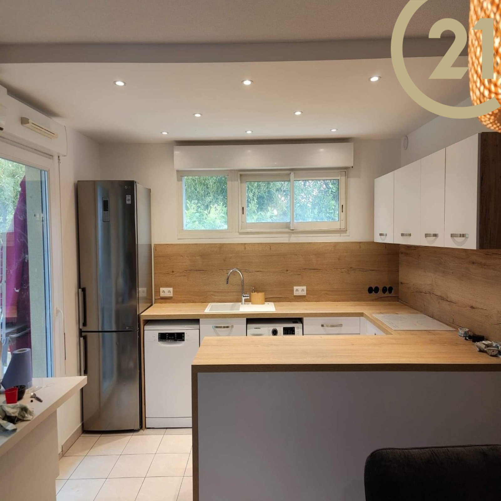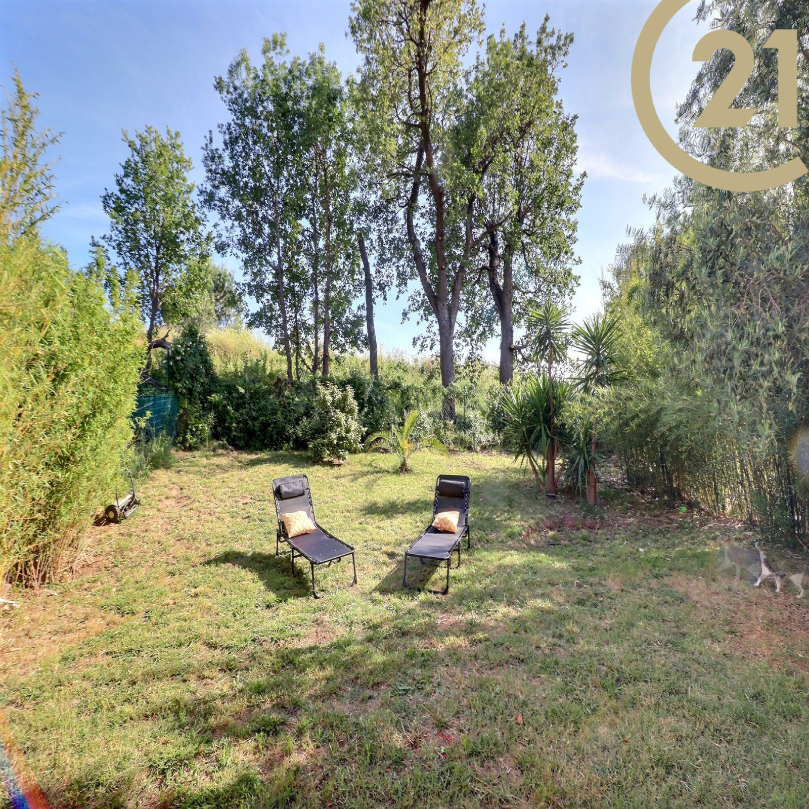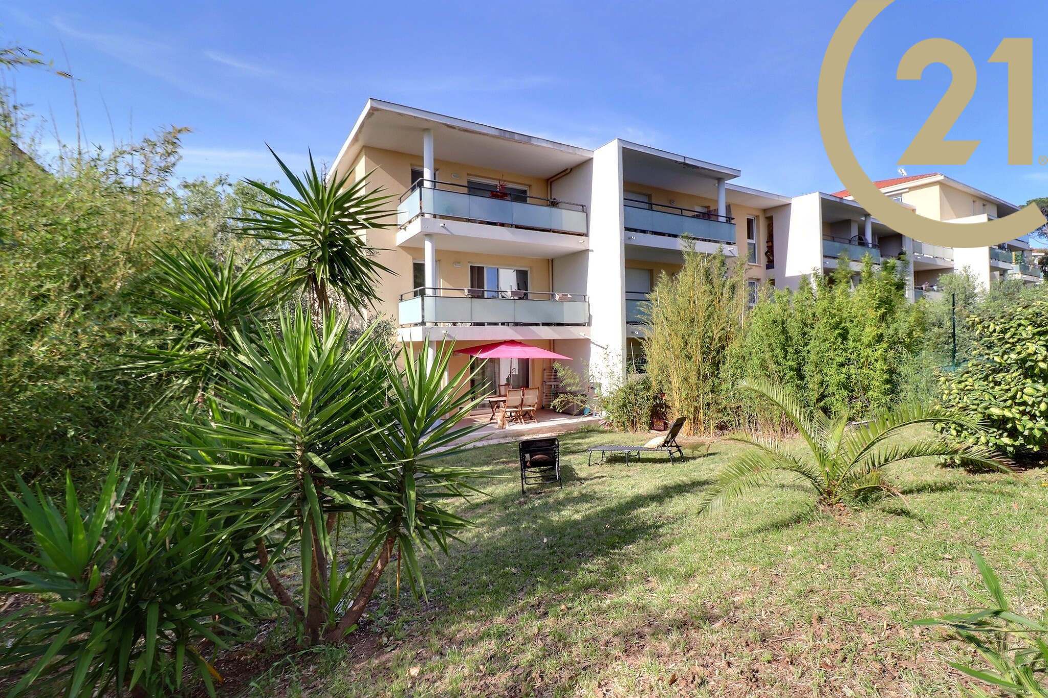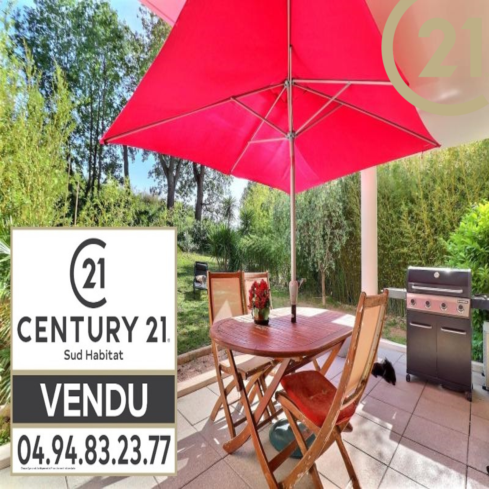 FREJUS PROCHE COMMERCE - Bel appartement 3 pièces situé en rez-de-jardin dans une résidence de standing récente. Cet appartement très soigné offre un hall d'entrée, une grande pièce de vie climatisée avec cuisine moderne entièrement équipée ouverte sur une large terrasse de 18m² exposée Sud, un coin nuit indépendant composé de deux chambres avec placards, une salle de bains, des WC séparés et un dégagement avec rangement. L'appartement possède un grand jardin arboré de 170 m² sans vis-à-vis. Un garage et un parking privatif complètent ce bien. La résidence bénéficie d'un environnement très calme à quelques minutes du centre-ville, des commerces et des accès autoroute.