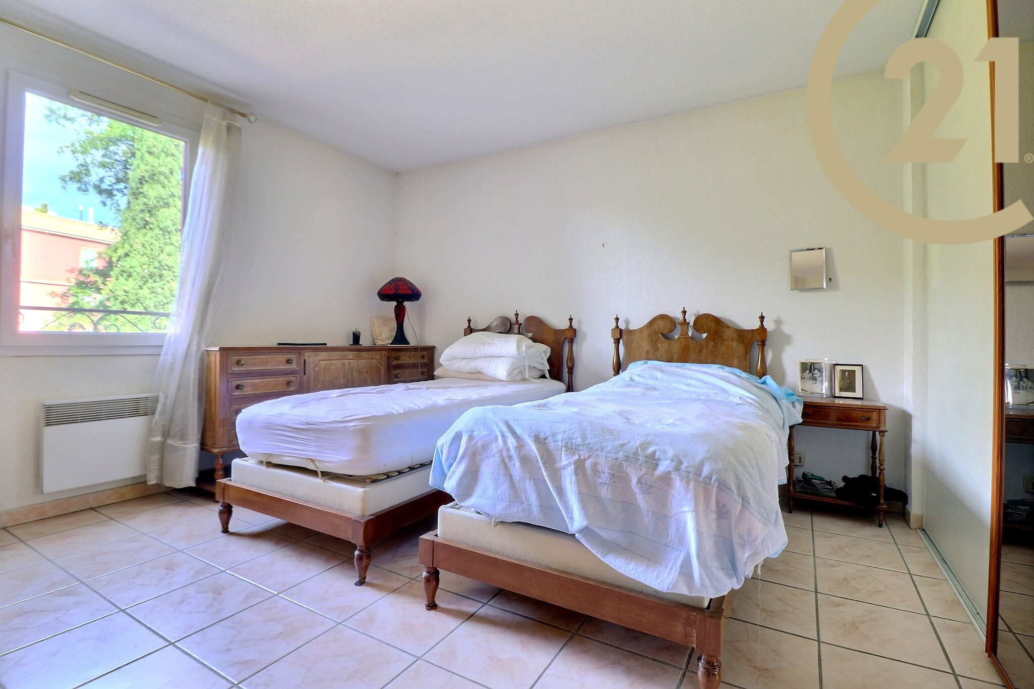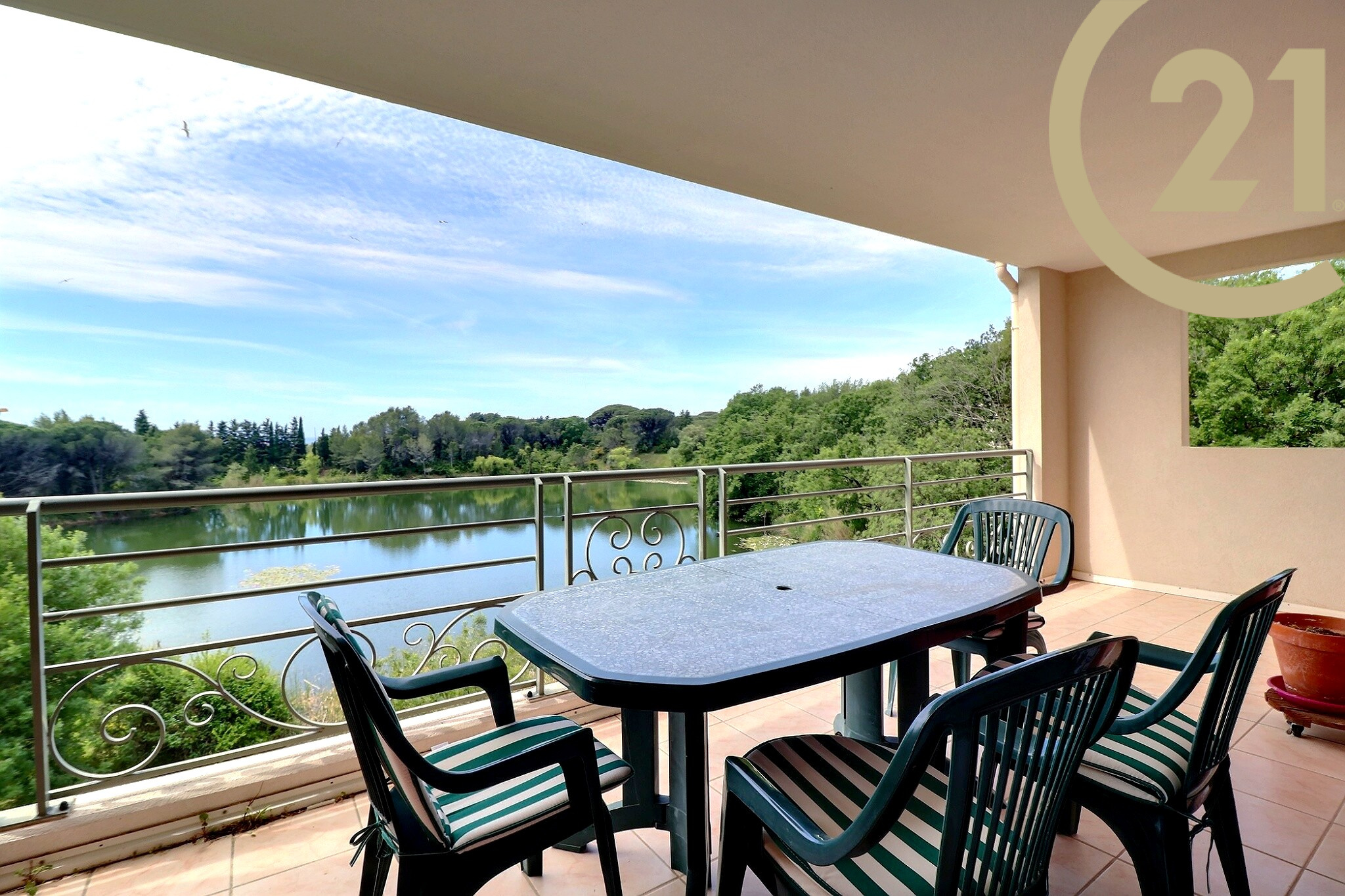 FREJUS - Cadre exceptionnel pour cet appartement 4 pièces de 104 m² situé dans une résidence de standing au coeur d'un espace boisé classé. Ce bel appartement traversant se compose d'une entrée, d'un spacieux et lumineux séjour ouvert sur une large terrasse de 25 m² offrant une splendide vue dégagée sur un lac, une cuisine indépendante aménagée et équipée, deux chambres avec placards aménagés, une salle de bains avec WC, une suite parentale avec salle d'eau et des toilettes indépendants avec lave-mains. Cet appartement est vendu avec un garage fermé et une place de parking. Résidence de haut standing venant d'être ravalée avec gardien et piscine. Magnifique cadre de verdure et calme absolu. Commerces à 5 minutes à pied. Charges annuelles : 2 957 €. Copropriété de 219 lots.