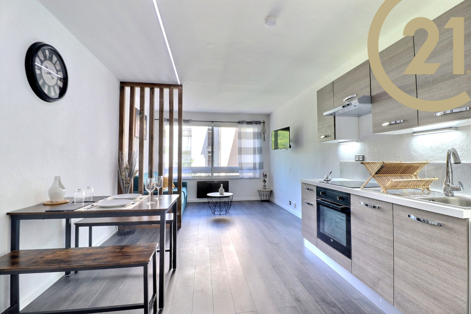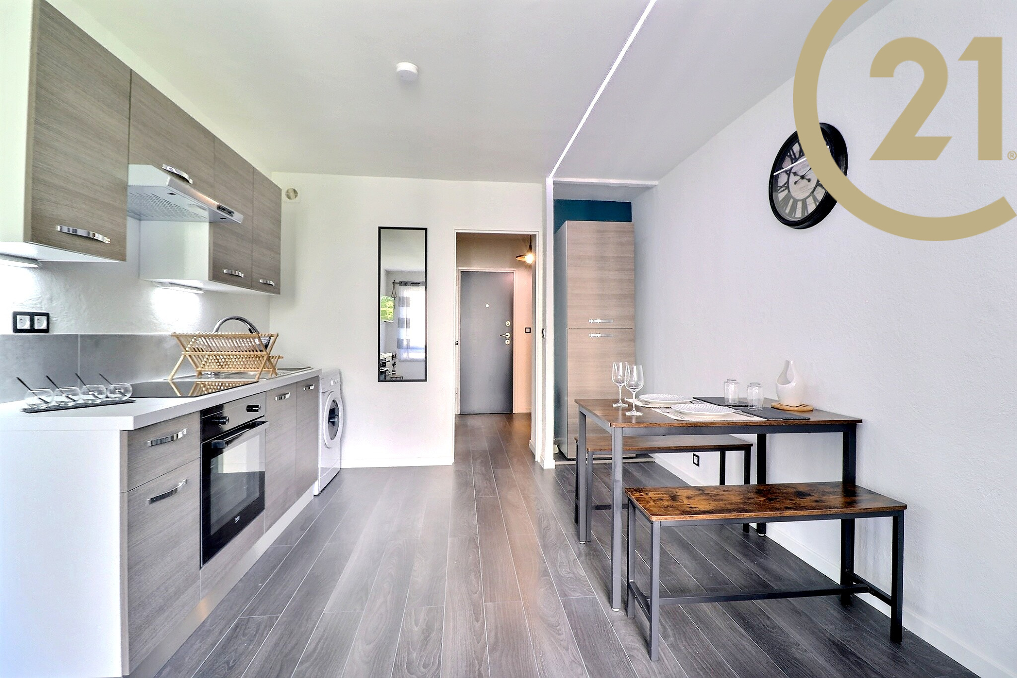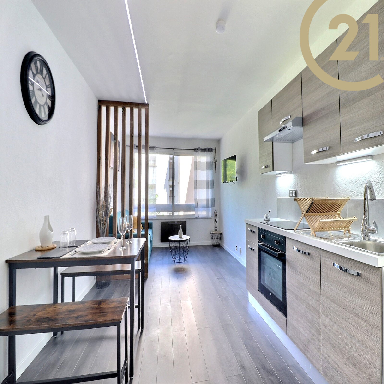 FREJUS, dans une résidence avec piscine et tennis proche du centre-ville et des commerces. Studio de 27 m² entièrement rénové avec goût en étage élevé avec ascenseur. Cet appartement se compose : d'une entrée avec dressing, d'une pièce à vivre avec une belle cuisine équipée, d'une salle d'eau et d'un wc. Appartement vendu meublé. Une cave et un parking extérieur complètent ce bien.