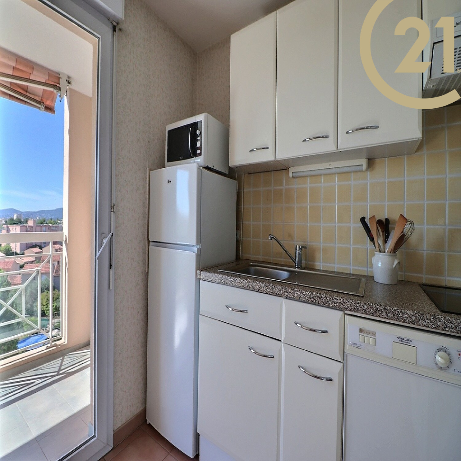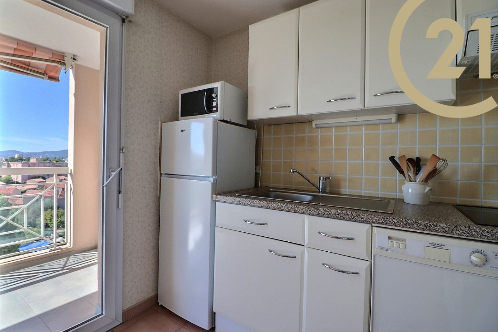 Il se compose d'une entrée avec placard, d'un lumineux séjour exposé SUD / OUEST offrant l'accès à une belle terrasse de 10 m², d'une cuisine semi ouverte, d'une salle de bains, d'une chambre avec placard et d'un WC indépendant.