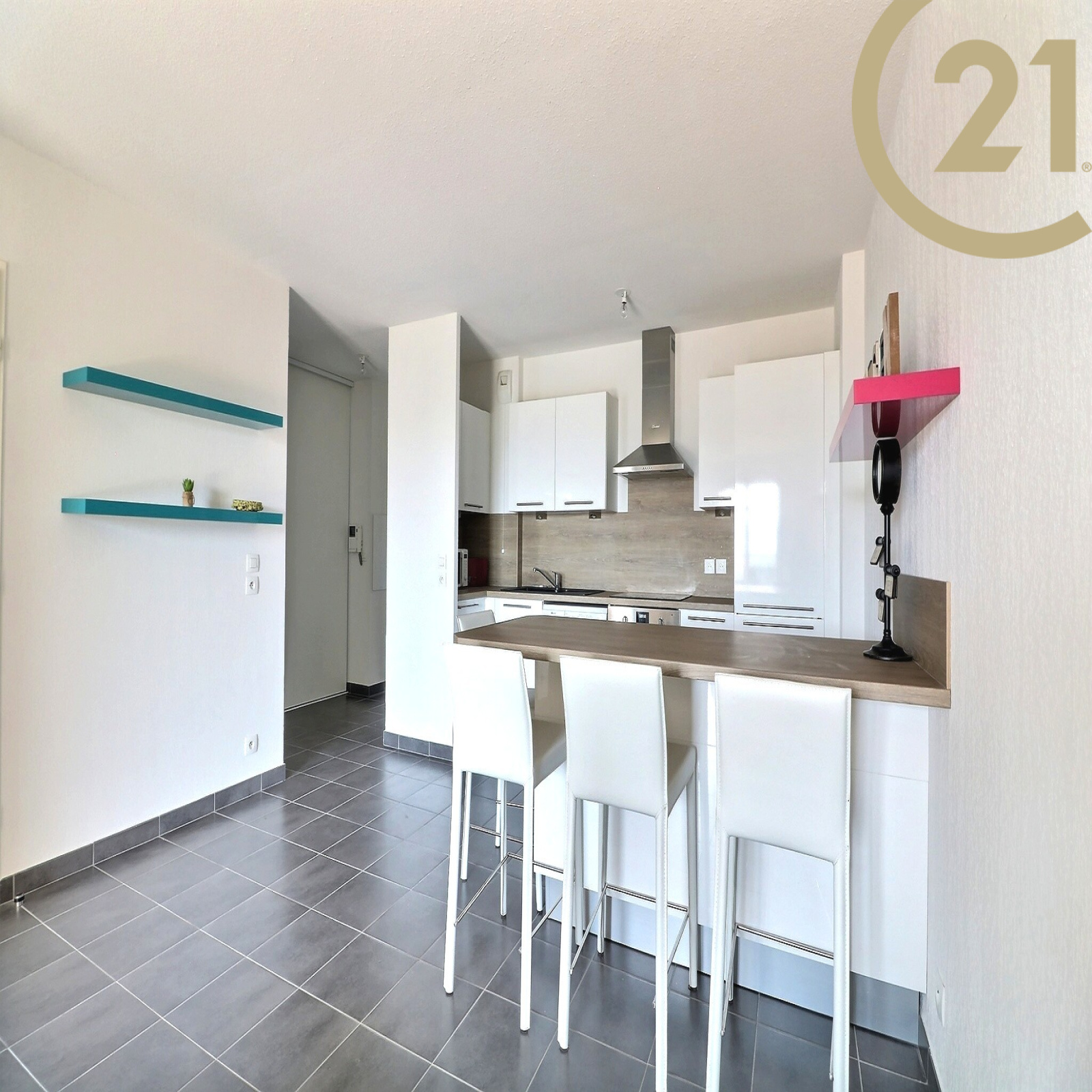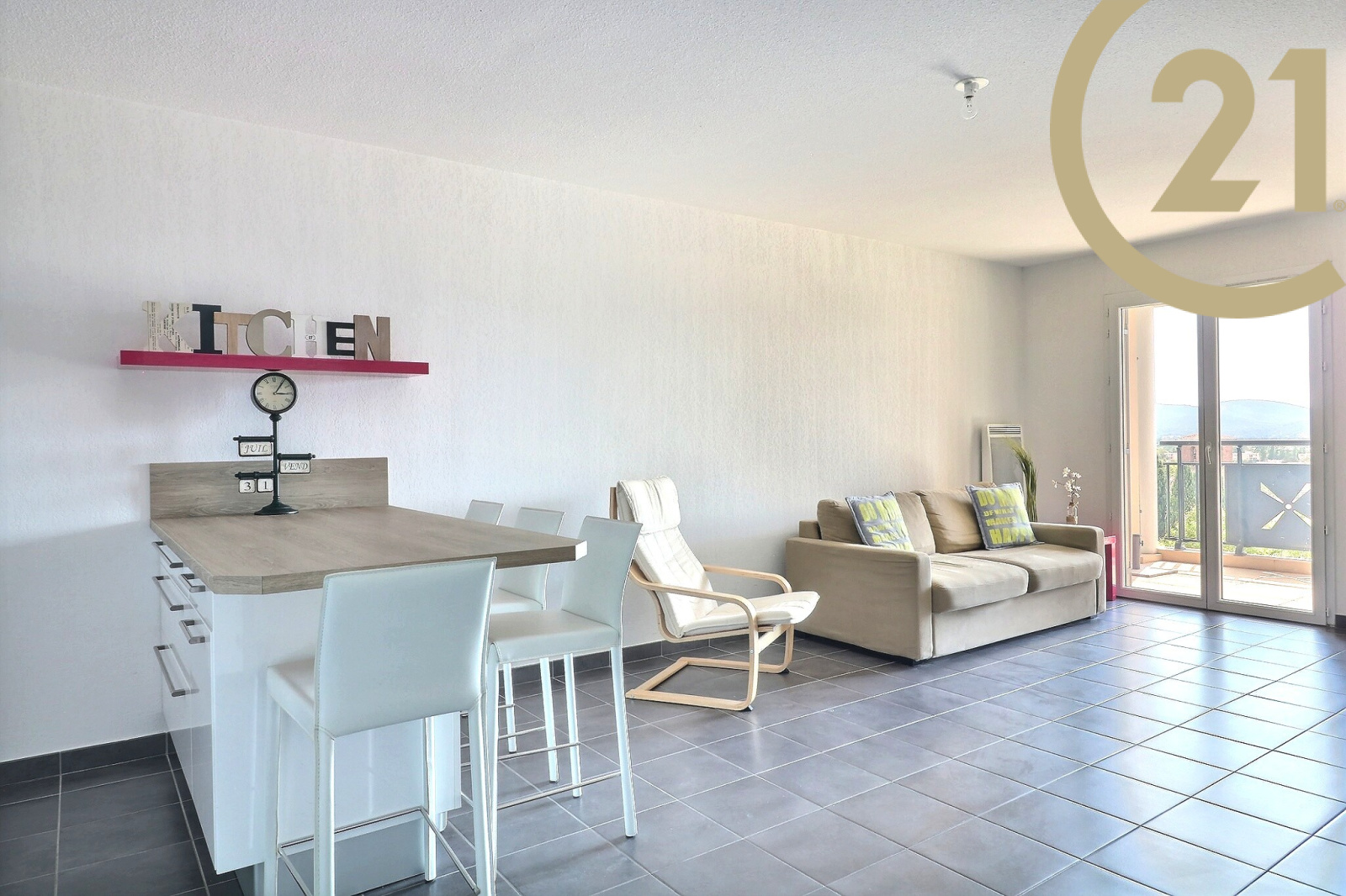 EXCLUSIVITE - FREJUS RESIDENCE RECENTE - VISITE VIRTUELLE DISPONIBLE SUR DEMANDE - Spacieux appartement 2 pièces de 50.37 m² situé dans une résidence récente et sécurisée à deux pas du centre et de tous les commerces. Cet appartement offre une entrée avec grand placard, une grande pièce de vie de 32 m² avec cuisine ouverte entièrement équipée dotée d'un bel îlot central avec rangements, une vaste chambre avec espace bureau et placard et une salle d'eau avec WC. Le séjour et la chambre bénéficient d'un accès direct sur une terrasse orientée Sud-Ouest jouissant d'une jolie vue dégagée sur le rocher de Roquebrune-sur-Argens et d'un aperçu mer. Vous apprécierez le caractère clés en mains de ce bien, sa vue dégagée, ainsi que sa proximité immédiate de toutes les commodités. Possibilité d'aquérir un garage en supplément et parking à proximité immédiate de l'appartement. Copropriété de lots. Charges courantes annuelles : 1133 €