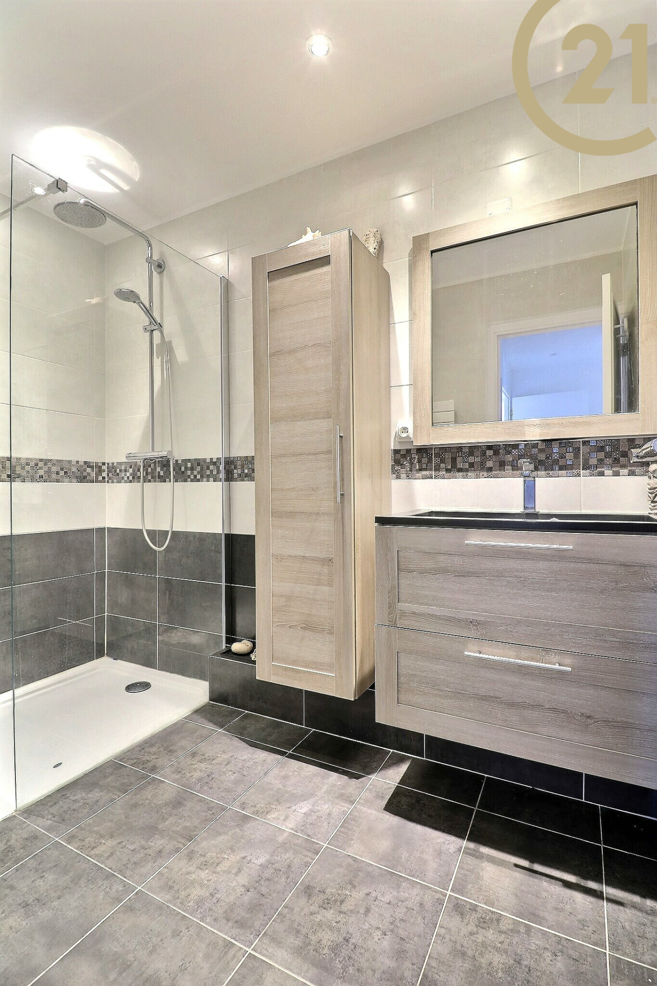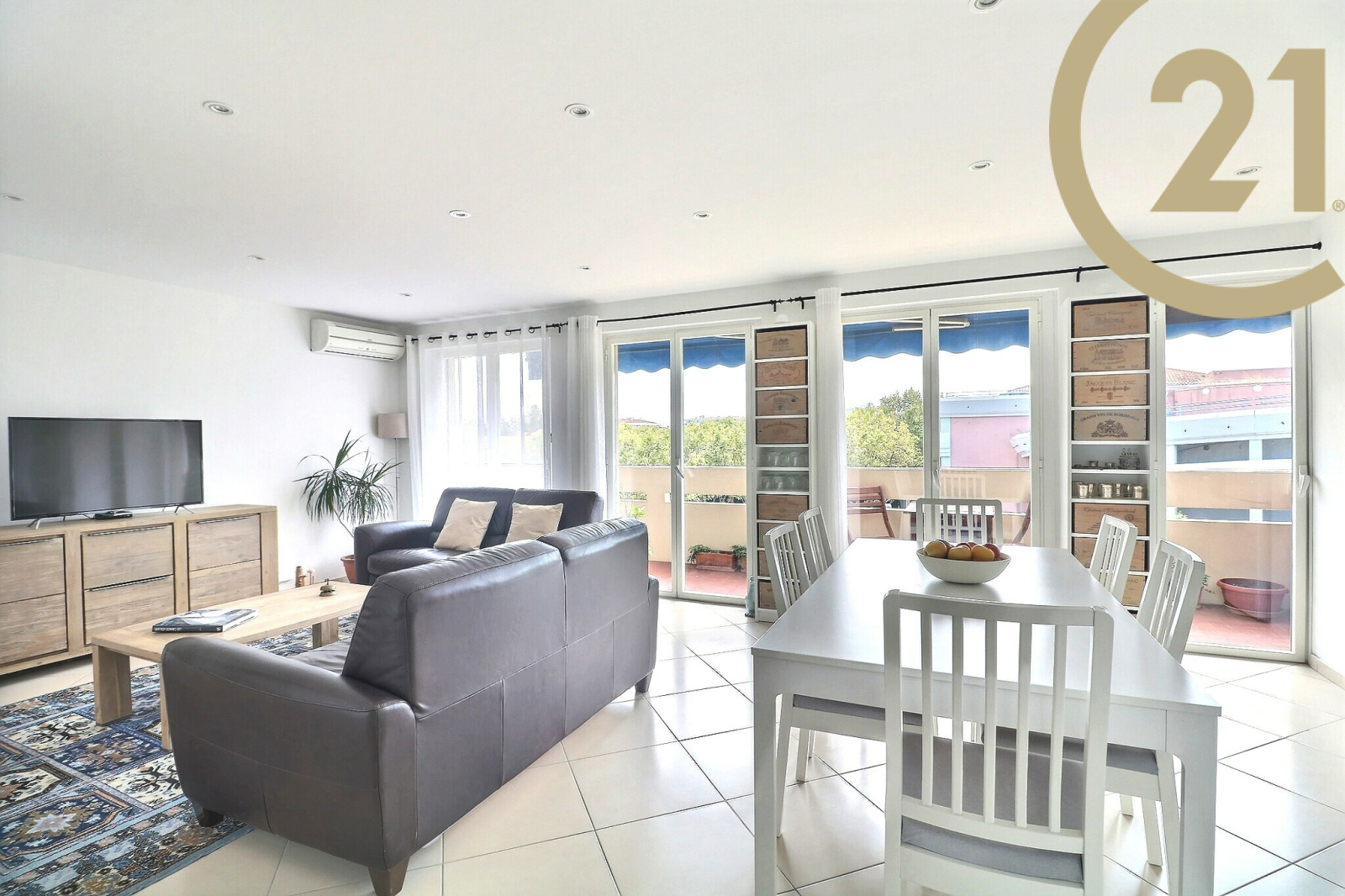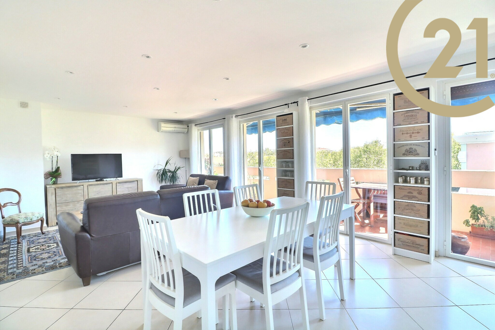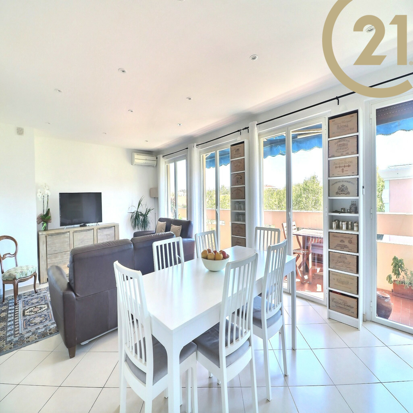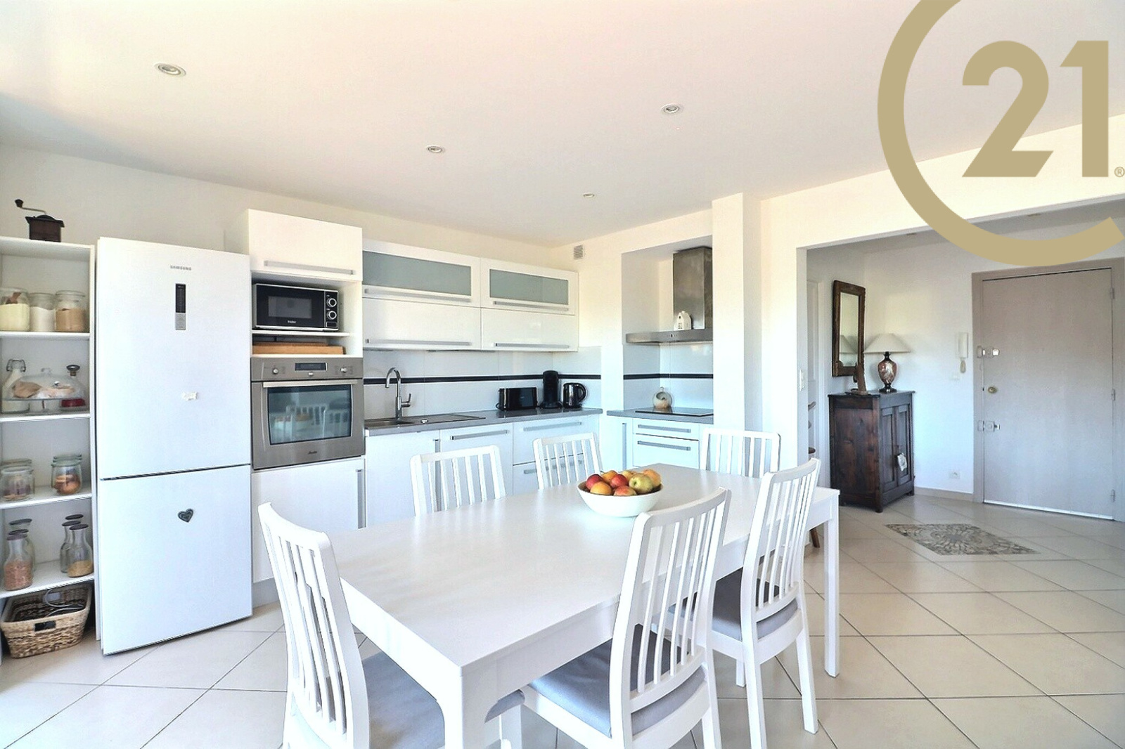 EXCLUSIVITE FREJUS PLAGE - DERNIER ETAGE ENTIEREMENT RENOVE - Spacieux appartement 3 pièces de 77.48 m² situé au dernier étage d'une résidence sécurisée avec ascenseur dans le quartier prisé de Port-Fréjus/Fréjus plage. Cet appartement 3 pièces entièrement rénové avec goût et parfaitement entretenu offre un hall d'entrée avec placard, un lumineux séjour avec cuisine ouverte équipée donnant sur une terrasse exposée Sud-Est, un coin buanderie/cellier, un dégagement avec placard, une chambre avec placard de 14,52 m² donnant sur la terrasse, une chambre avec placard de 10.87 m², une salle d'eau avec grande douche à l'italienne et des WC séparés. Prestations de qualité : double vitrage aluminium, climatisation réversible, volets roulants électriques. Une grande cave complète ce bien. Nombreuses places de stationnements dans la copropriété fermée et possibilité de louer un garage en supplément. Résidence ravalée récemment dotée d'un joli parc arboré. Situation géographique prisée : plages, commerces et port accessibles à pied en quelques minutes seulement. Copropriété de X lots. Charges annuelles :1519 € VISITE VIRTUELLE DISPONIBLE SUR DEMANDE